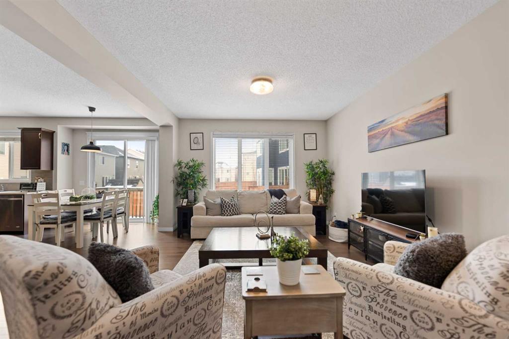 Welcome to this beautifully well-maintained front-garage home in the highly sought-after Cityscape community in NE Calgary. Situated on an extra-wide conventional lot, this impressive residence offers over 2,255 sq. ft. of thoughtfully designed living space, featuring 3 bedrooms, 2.5 bathrooms, and a spacious bonus room. Be sure to check out the 3D tour! Built in 2014, this home features 9-foot ceilings throughout, creating a bright,d open atmosphere. Recent upgrades include a brand-new roof and siding (2025), along with modern enhancements such as central air conditioning, smart home features, upgraded lighting, and ceiling fans. The chef-inspired kitchen is a true highlight, complete with maple cabinetry, quartz countertops, stainless steel appliances, a gas range with hood fan, an oversized upgraded refrigerator, a large island, stylish backsplash, and a generously sized walk-in pantry—perfect for both everyday living and entertaining. The main floor offers a spacious and inviting layout, ideal for gatherings, along with the added convenience of main-floor laundry. Upstairs, you’ll find three generously sized bedrooms, including a luxurious primary suite featuring dual closets and a spa-like 5-piece en-suite with double sinks, a soaker tub, and a separate shower. The upper level also includes a large bonus room with a cozy fireplace—perfect for relaxing or family time. Step outside to enjoy the expansive front balcony, ideal for unwinding or hosting guests. Both the front and backyard are professionally landscaped and fully fenced, offering privacy and excellent curb appeal. Conveniently located within walking distance to Cityscape Plaza, playgrounds, and transit, this home also provides quick access to major routes, including Stoney Trail and Deerfoot Trail, as well as nearby parks, shopping, and scenic walking paths. Move-in ready and beautifully upgraded, this exceptional home is a must-see. Book your private showing today!