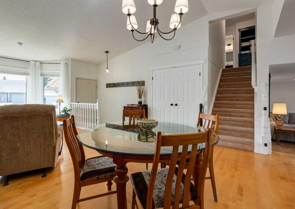 This home truly sets itself apart. Significantly upgraded, remodeled, and filled with wonderful tasteful details. Located on a Cul de sac nestled in the heart of family friendly Sundance, with lake privileges, 6 schools & quick access to Stoney Tr. It is the perfect family home! All Poly B Plumbing has been removed, enjoy new central air, a newer high efficiency furnace with UV filter, triple pane windows, a stucco exterior, newer fence, cedar deck with gas BBQ line, a low maintenance professionally landscaped front yard. The overhead garage door is insulated, the garage is insulated & drywalled, and the front driveway is extra long to welcome friends and family. Inside is a great floor plan with refinishable hardwood floors through out the main level, fresh paint & updated lighting. The front living room is flooded with natural light accentuated by the vaulted ceiling and is open to the generous dining space. The fully renovated kitchen is chic, functional and modern with loads of cabinets, pots & pan drawers, a center island with seating, quarts counter tops, and glass back splash all adorned by tasteful custom built in artisan cabinetry bringing character to an already great space. Cozy up to the fireplace as you step down to the large family room with space for the whole family. The Stately barn door slides to reveal a convenient main floor laundry room with awesome build in storage that discreetly leads to a 2 pc powder room. The interior garage entry with separate coat closet and access to the basement resides here too. Upstairs is a generous primary bedroom with a full wall closet complete with closet organizer and lovely renovated 4 pc Ensuite. Two additional bedrooms, a custom created linen closet adding a touch of flair and a 4 pc main bath complete this level. The finished basement is home to a large Rec/Great Room, a flex room currently built into a play area with the cutest playhouse! Carrying on, is a 4th bedroom and a large storage/utility area. The back yard has 2 rear entry doors, one off the kitchen opening to the raised, private deck, perfect for barbequing & the 2nd is off the Family room with stone steps down to the lush lawn. Sundance is more than a lake community it is a family friendly, convenient lifestyle boarding onto Fish Creek Park, surrounded by shopping, services, amenities and more. Come experience the Sundance Lifestyle.