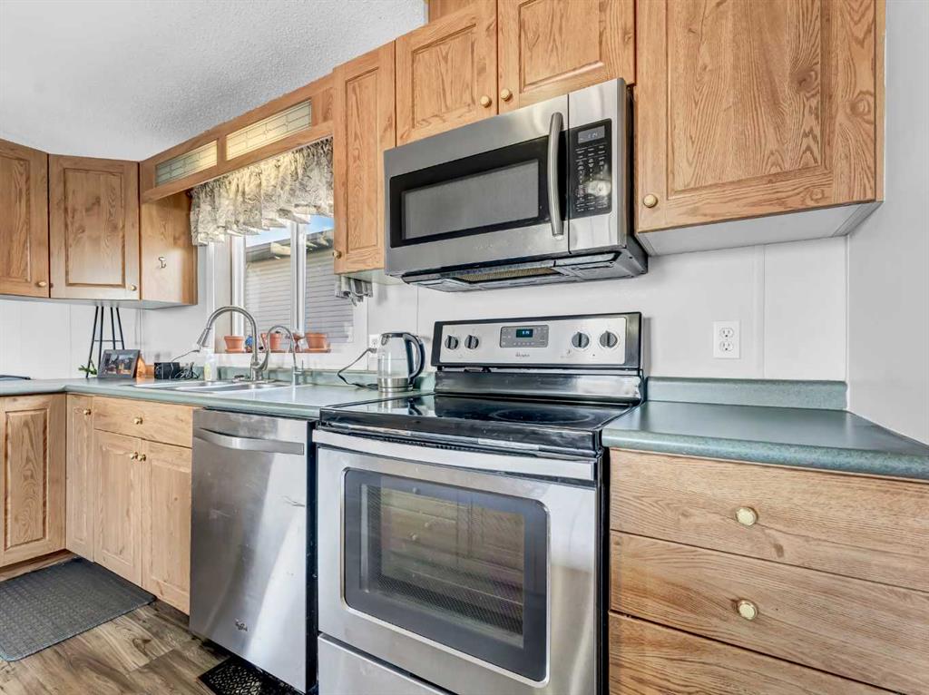 NO LOT FEES!!!! Welcome to 427 Main Street North — a fantastic opportunity to own your own land with this well-maintained mobile home situated on a spacious private lot. Offering 1,189 square feet of thoughtfully designed living space, this home features a modern open-concept layout with 3 bedrooms and 2 full bathrooms. The bright and functional kitchen is the heart of the home, complete with a beautiful island, abundant cabinet and counter space, a corner pantry, and a generous dining area perfect for gathering. At the front of the home, you’ll find a comfortable living room filled with natural light, along with the primary bedroom featuring a 4-piece ensuite for added privacy and convenience. Toward the back are two additional bedrooms, a second 4-piece bathroom, and a dedicated laundry area — ideal for families or guests. Step outside to enjoy the large yard, newly fenced for added privacy, offering plenty of space for kids, pets, gardening, or simply relaxing outdoors. Notable updates include a new roof (2019) and a new driveway (2020), providing peace of mind for years to come. Enjoy the ease of single-level living with the added benefit of owning your own lot. Whether you’re looking to downsize, simplify, or find an affordable family home, this property offers versatility and value in one complete package.