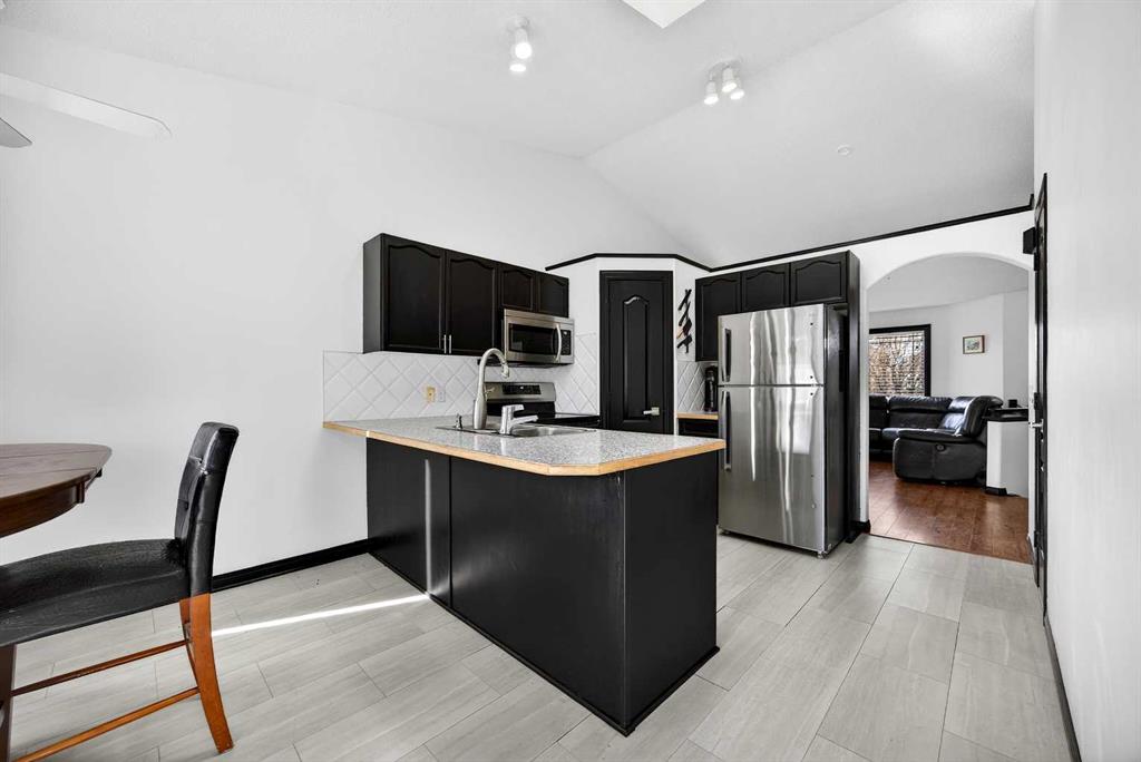 Welcome to this well maintained 5-bedroom, 3-bathroom home in the desirable community of Thorburn-Airdrie, ideally located close to parks/schools and walking paths. Inside, you'll be welcomed by a bright tiled foyer, vaulted ceilings with a skylight, and a spacious kitchen designed perfectly for family living and entertaining. The home features two cozy fireplaces, central air conditioning, elegant oak finishes, and beautiful ceramic tile accents throughout. This property showcases numerous updates, including a new furnace (2024), hot water tank (2018), roof (2016), updated flooring (2022), and rebuilt decks (2015) with refreshed fencing on both sides (2015). The south-facing backyard offers plenty of sunshine-ideal for summer gatherings-with a large deck, RV parking, and a handy yard shed. Combining modern upgrades, functionality, and charm, this wonderful property provides the perfect setting to create lasting family memories in one of Airdrie’s most sought-after neighborhoods.