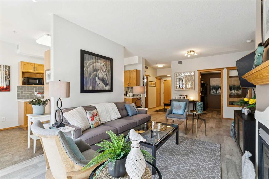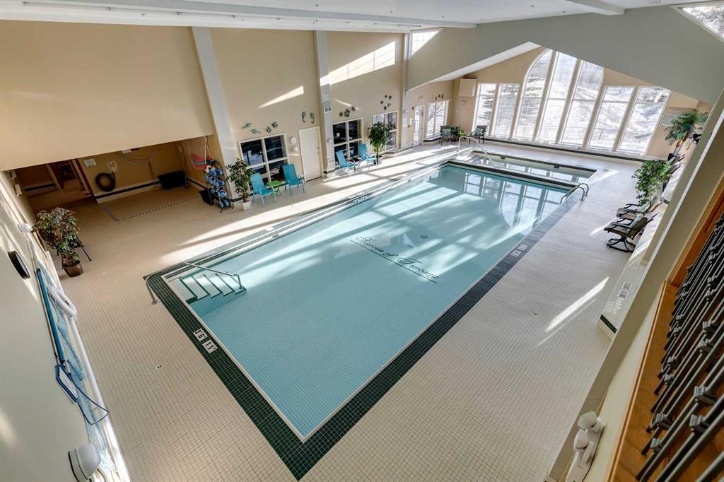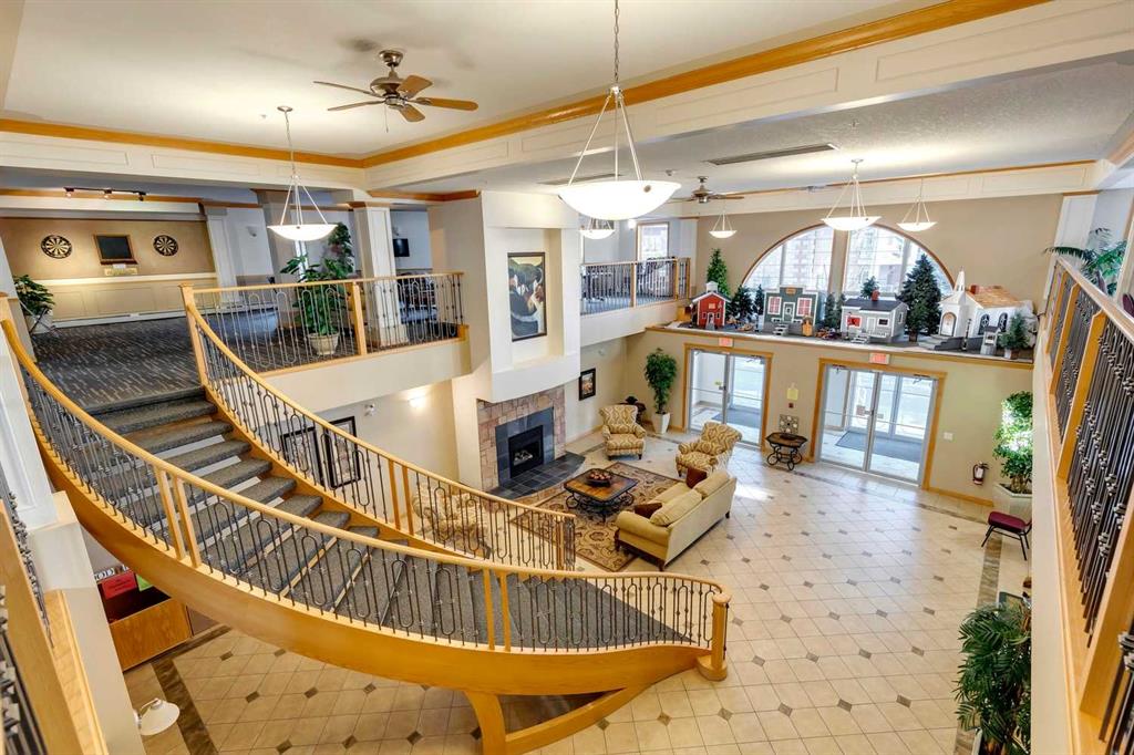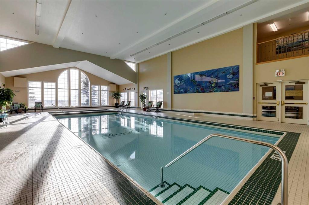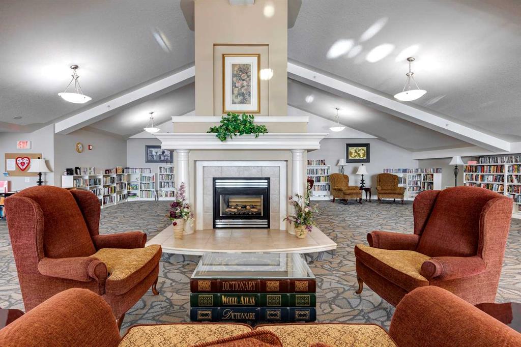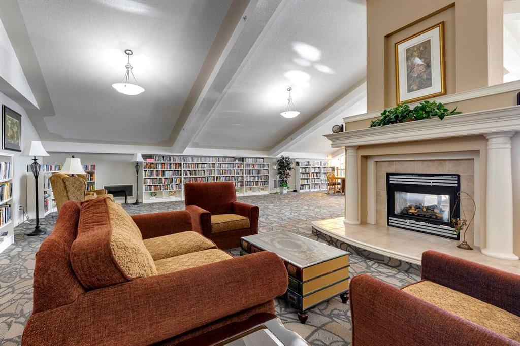 Welcome to this beautifully maintained 2 bedroom plus condo in the highly sought-after 40+ adult-living community of Sierras of Tuscany. Offering a perfect blend of comfort, space, and lifestyle. The spacious living area is warm and inviting, featuring a cozy gas fireplace—perfect for relaxing evenings. The classic kitchen is both functional and timeless, complete with quartz countertops and ample cabinetry, flowing seamlessly into a bright eating area filled with natural light. The large primary bedroom offers a peaceful retreat with a walk-in closet and private ensuite while a separate bedroom/den provides the perfect space for a home office or guest area. An additional 3-piece bathroom adds convenience for visitors. What truly sets this property apart is the exceptional range of amenities available within the complex. Residents enjoy access to an impressive indoor saltwater pool, hot tub, fitness facilities, bowling alley, movie theatre, ballroom, games room with pool tables, workshop, car wash, and more. Creative spaces like the arts & crafts room and community kitchen foster connection, while the library and quiet reading areas showcase stunning panoramic views of the Rocky Mountains. For visiting family and friends, well-appointed guest suites are also available. A rare opportunity to enjoy resort-style living in a vibrant and welcoming community.
