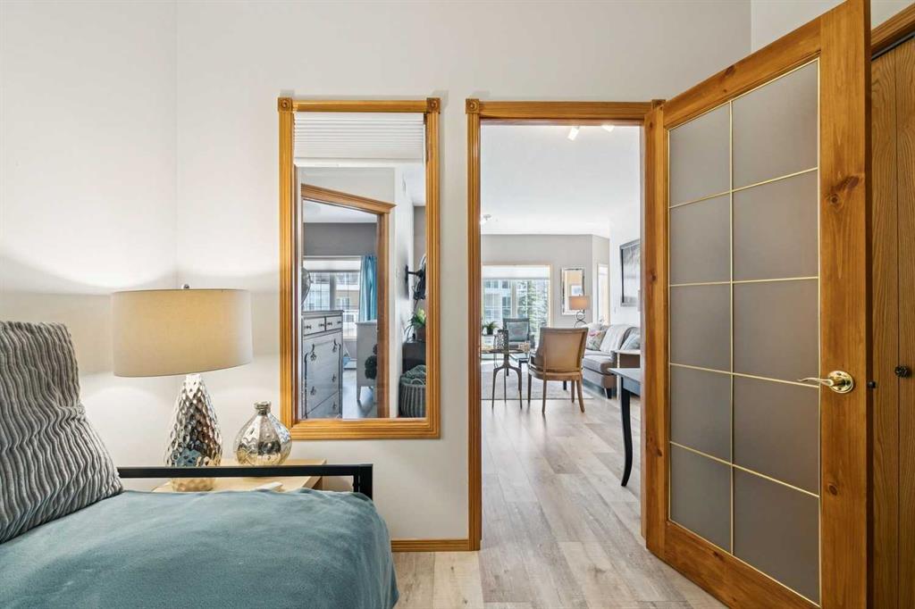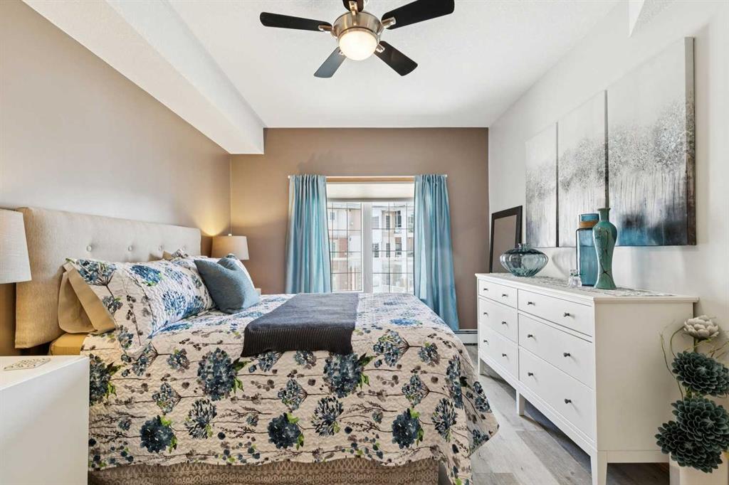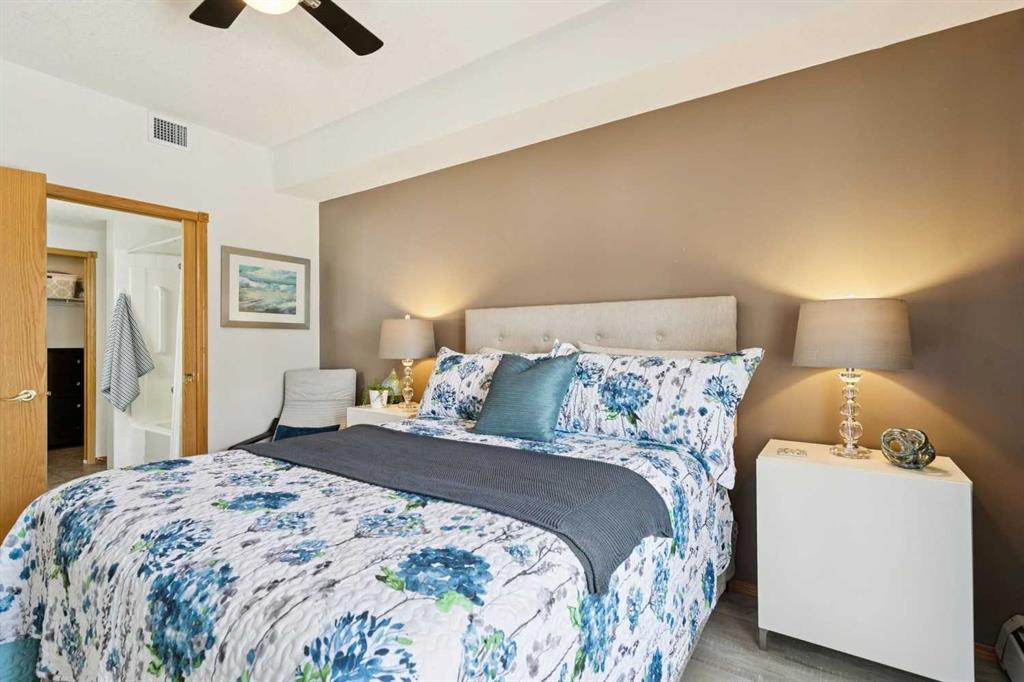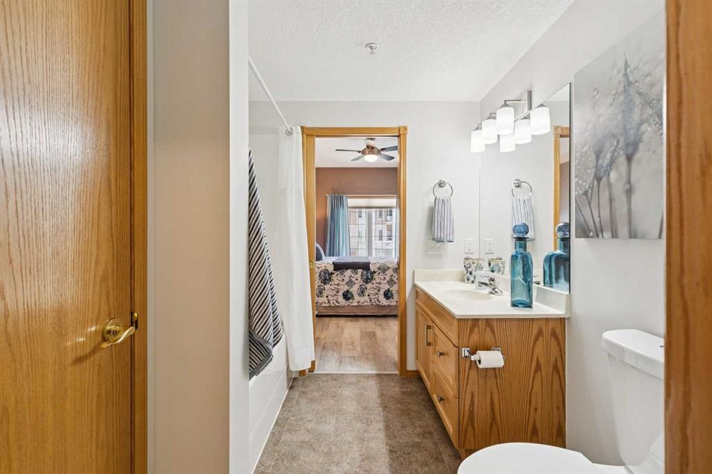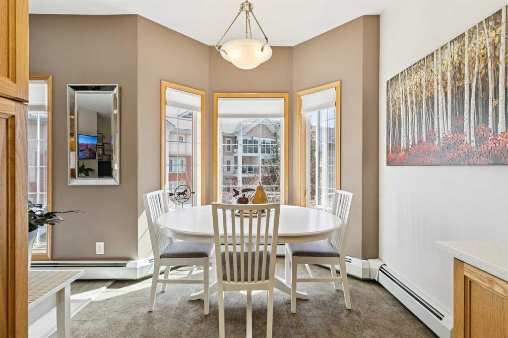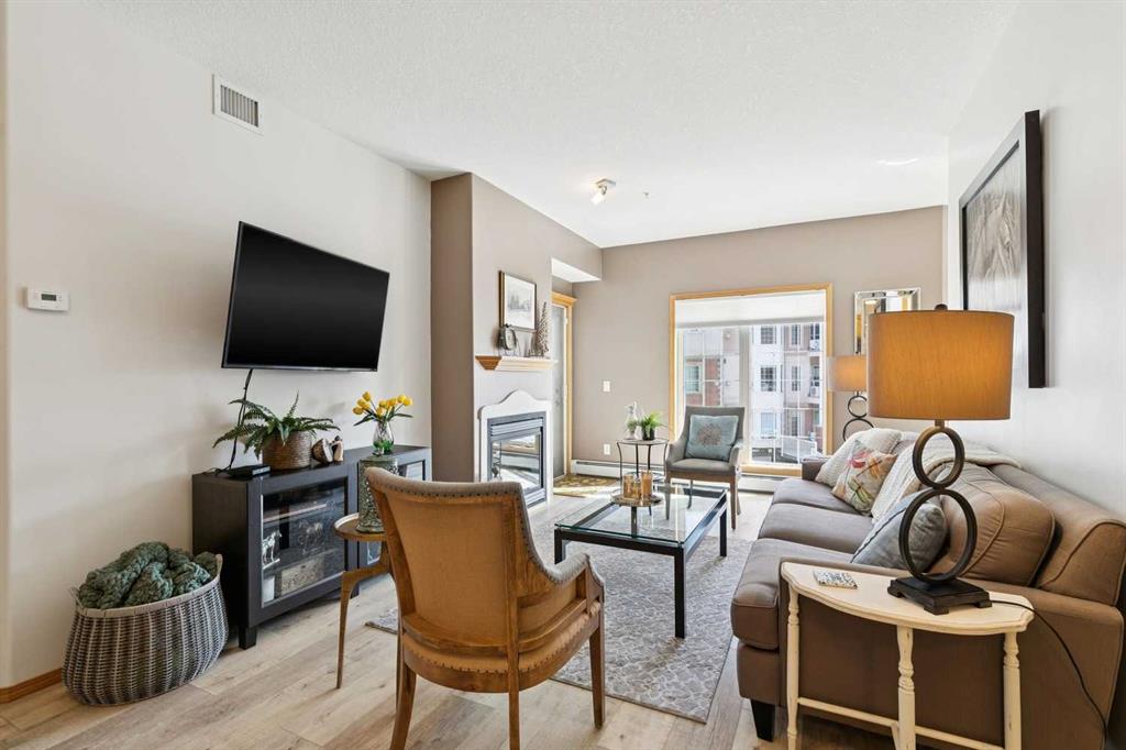 Welcome to this beautifully maintained 2 bedroom plus condo in the highly sought-after 40+ adult-living community of Sierras of Tuscany. Offering a perfect blend of comfort, space, and lifestyle. The spacious living area is warm and inviting, featuring a cozy gas fireplace—perfect for relaxing evenings. The classic kitchen is both functional and timeless, complete with quartz countertops and ample cabinetry, flowing seamlessly into a bright eating area filled with natural light. The large primary bedroom offers a peaceful retreat with a walk-in closet and private ensuite while a separate bedroom/den provides the perfect space for a home office or guest area. An additional 3-piece bathroom adds convenience for visitors. What truly sets this property apart is the exceptional range of amenities available within the complex. Residents enjoy access to an impressive indoor saltwater pool, hot tub, fitness facilities, bowling alley, movie theatre, ballroom, games room with pool tables, workshop, car wash, and more. Creative spaces like the arts & crafts room and community kitchen foster connection, while the library and quiet reading areas showcase stunning panoramic views of the Rocky Mountains. For visiting family and friends, well-appointed guest suites are also available. A rare opportunity to enjoy resort-style living in a vibrant and welcoming community.
