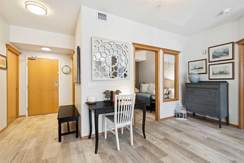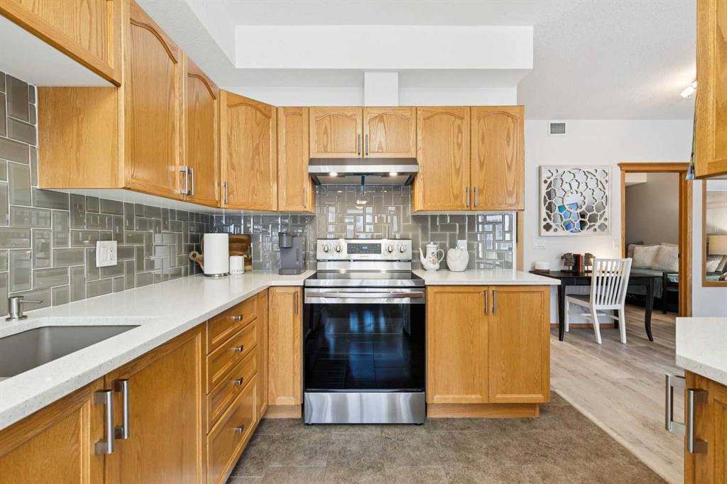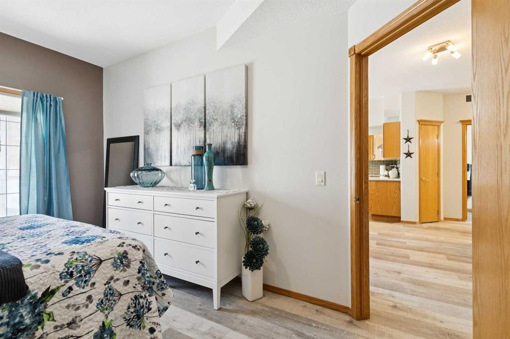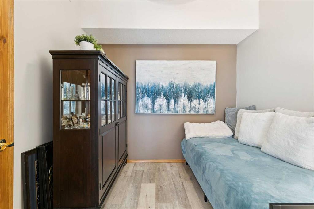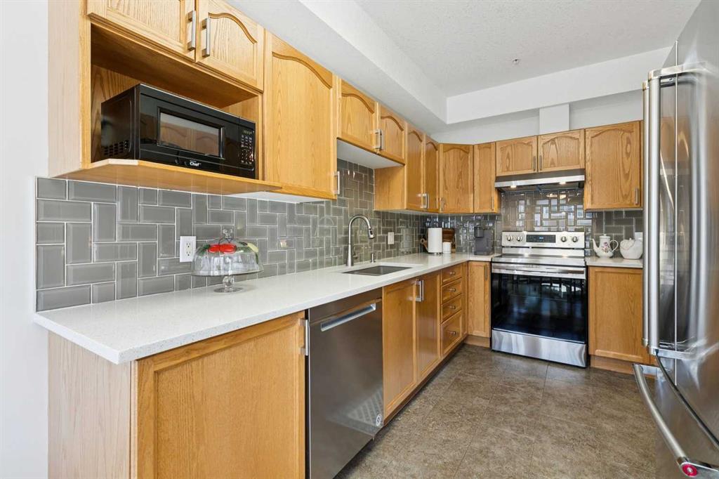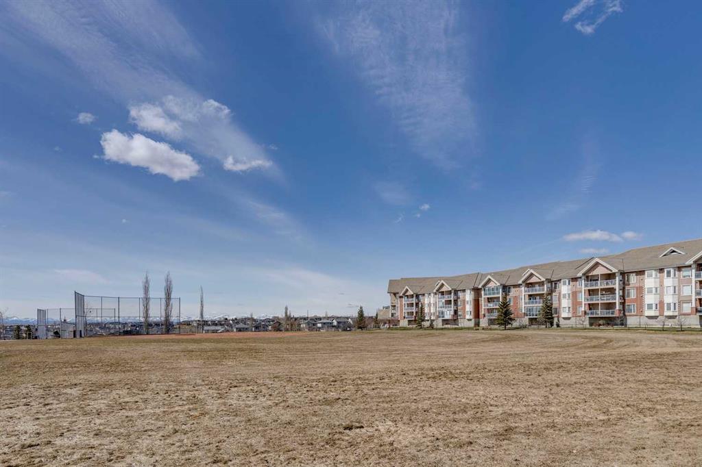 Welcome to this beautifully maintained 2 bedroom plus condo in the highly sought-after 40+ adult-living community of Sierras of Tuscany. Offering a perfect blend of comfort, space, and lifestyle. The spacious living area is warm and inviting, featuring a cozy gas fireplace—perfect for relaxing evenings. The classic kitchen is both functional and timeless, complete with quartz countertops and ample cabinetry, flowing seamlessly into a bright eating area filled with natural light. The large primary bedroom offers a peaceful retreat with a walk-in closet and private ensuite while a separate bedroom/den provides the perfect space for a home office or guest area. An additional 3-piece bathroom adds convenience for visitors. What truly sets this property apart is the exceptional range of amenities available within the complex. Residents enjoy access to an impressive indoor saltwater pool, hot tub, fitness facilities, bowling alley, movie theatre, ballroom, games room with pool tables, workshop, car wash, and more. Creative spaces like the arts & crafts room and community kitchen foster connection, while the library and quiet reading areas showcase stunning panoramic views of the Rocky Mountains. For visiting family and friends, well-appointed guest suites are also available. A rare opportunity to enjoy resort-style living in a vibrant and welcoming community.