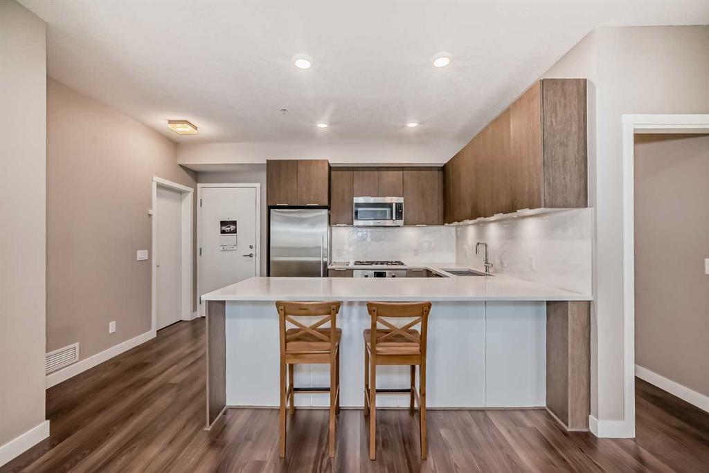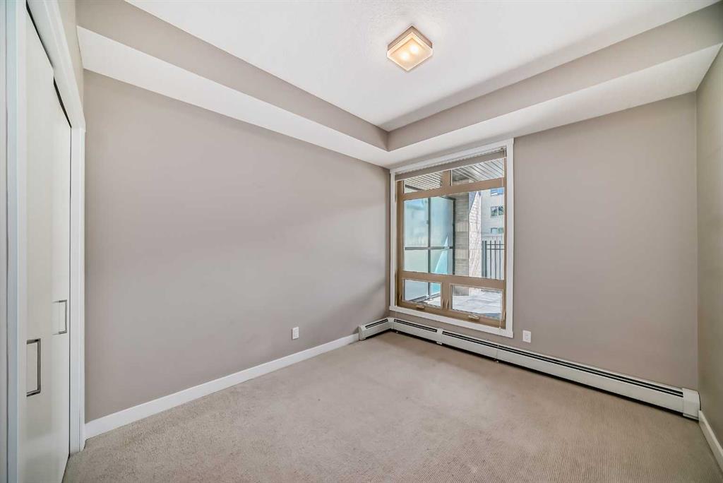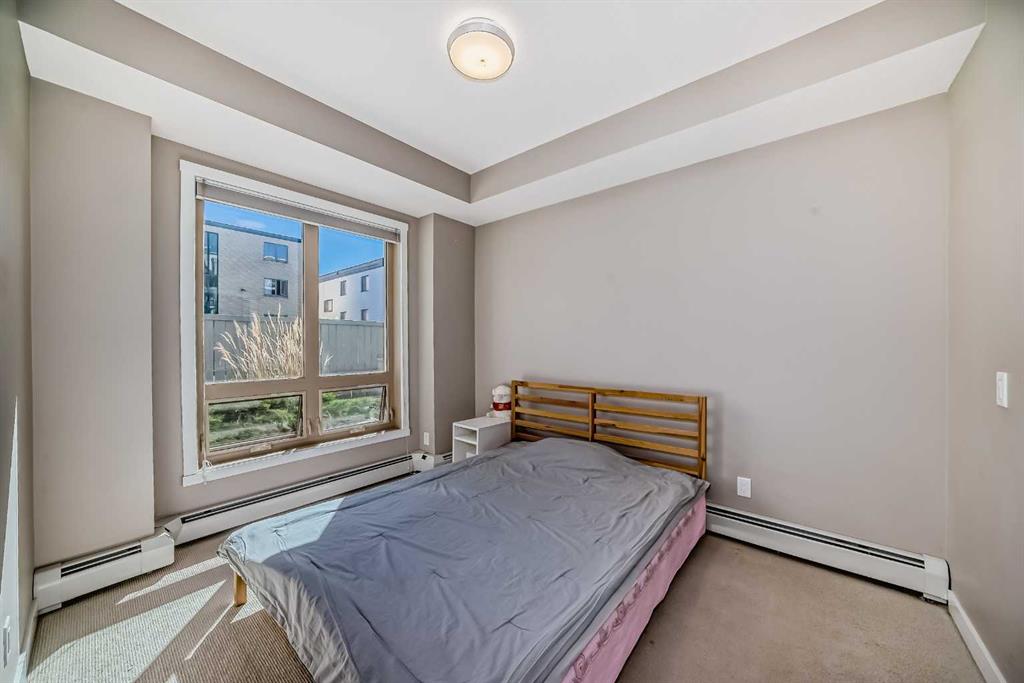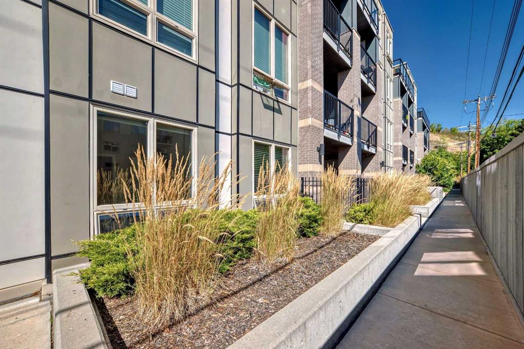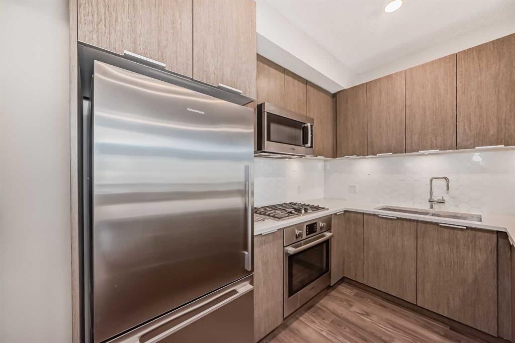 Discover urban living in the vibrant Sunnyside neighborhood with this stunning south-facing unit. Upon entering the secured building, you're greeted by an impressive green living wall that creates a welcoming atmosphere. This spacious 2-bedroom + den unit is on the main floor, offering modern features throughout. The kitchen boasts sleek stainless steel appliances, ample counter space, modern cabinetry, quartz countertops, a gas stovetop, and a built-in oven, all set against beautiful laminate flooring. The living room is bright and inviting, with a large window that fills the space with natural light. Near the entrance, a spacious laundry room provides additional storage. The den is perfect for a home office, ideal for remote work. The unit includes a 4-piece bath near the secondary bedroom, and the master bedroom offers a walk-through closet leading to a 3-piece ensuite with a large shower and tiled floors. A titled tandem parking stall in the heated underground garage is also included. Located within a 5-minute walk to LRT stations, Safeway, and the trendy Kensington area with its cafes and restaurants, this unit provides easy access to the Bow River pathways for walking or biking with beautiful downtown views. SAIT is just two blocks away, and the University of Calgary is a short drive. The building amenities, including a car wash, workshop, storage rooms, and secure bike storage, ensure every need is met. Don’t miss this opportunity for luxury, convenience, and a fantastic lifestyle in a highly desirable location. Call for a viewing today!