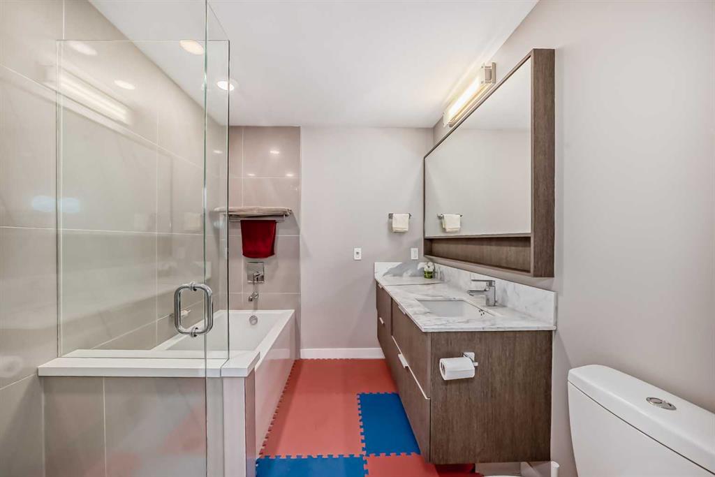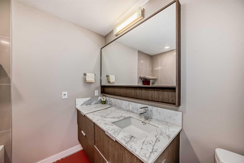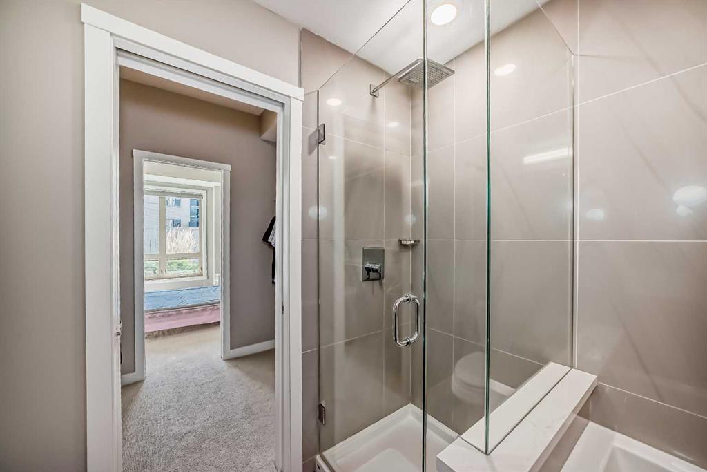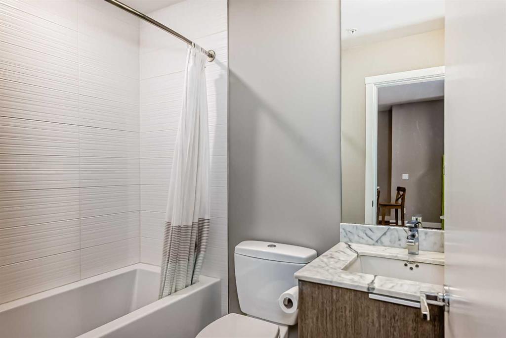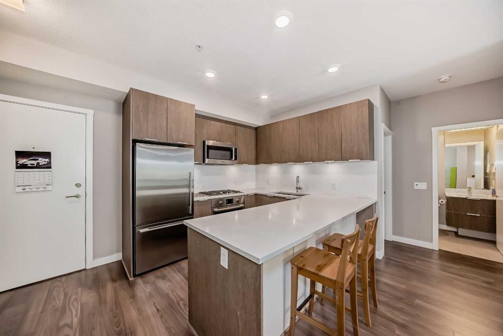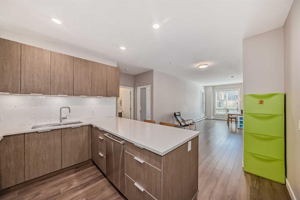 Discover urban living in the vibrant Sunnyside neighborhood with this stunning south-facing unit. Upon entering the secured building, you're greeted by an impressive green living wall that creates a welcoming atmosphere. This spacious 2-bedroom + den unit is on the main floor, offering modern features throughout. The kitchen boasts sleek stainless steel appliances, ample counter space, modern cabinetry, quartz countertops, a gas stovetop, and a built-in oven, all set against beautiful laminate flooring. The living room is bright and inviting, with a large window that fills the space with natural light. Near the entrance, a spacious laundry room provides additional storage. The den is perfect for a home office, ideal for remote work. The unit includes a 4-piece bath near the secondary bedroom, and the master bedroom offers a walk-through closet leading to a 3-piece ensuite with a large shower and tiled floors. A titled tandem parking stall in the heated underground garage is also included. Located within a 5-minute walk to LRT stations, Safeway, and the trendy Kensington area with its cafes and restaurants, this unit provides easy access to the Bow River pathways for walking or biking with beautiful downtown views. SAIT is just two blocks away, and the University of Calgary is a short drive. The building amenities, including a car wash, workshop, storage rooms, and secure bike storage, ensure every need is met. Don’t miss this opportunity for luxury, convenience, and a fantastic lifestyle in a highly desirable location. Call for a viewing today!