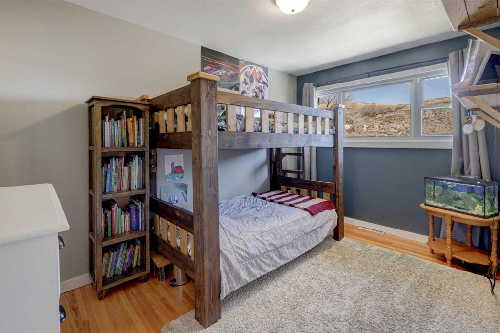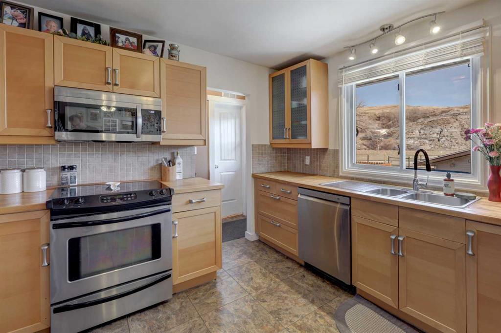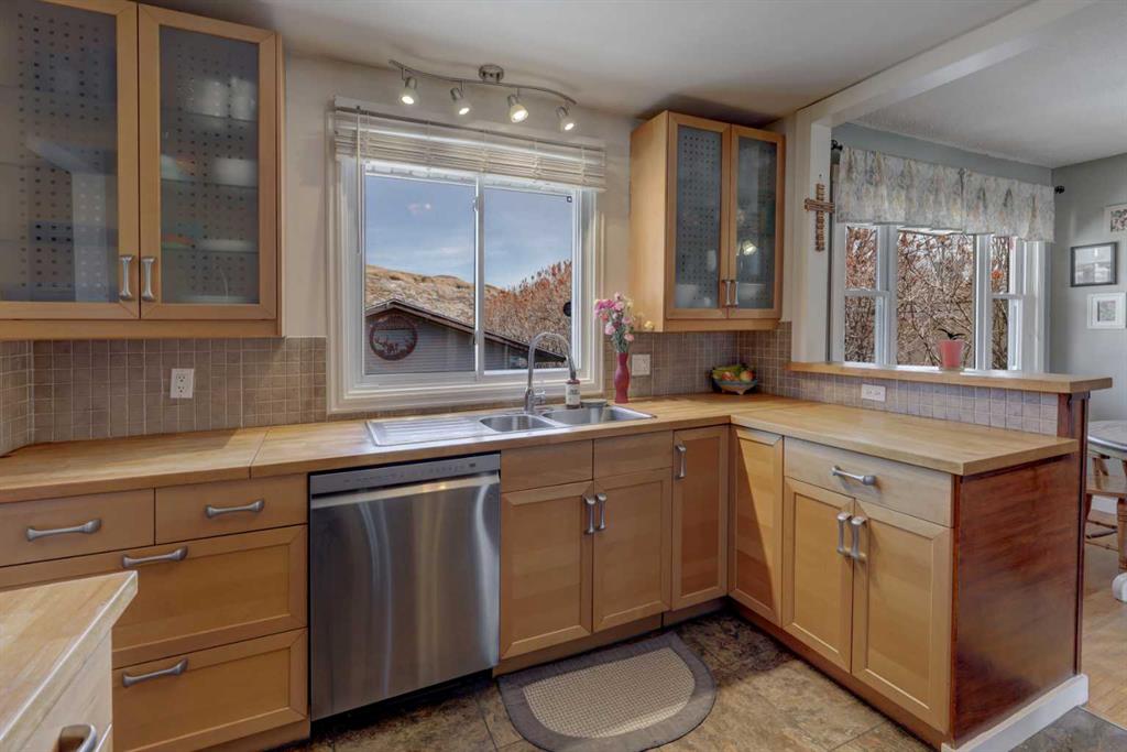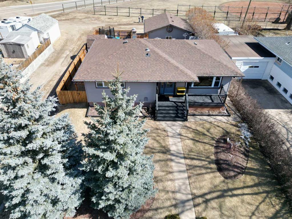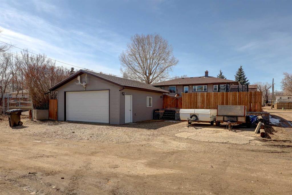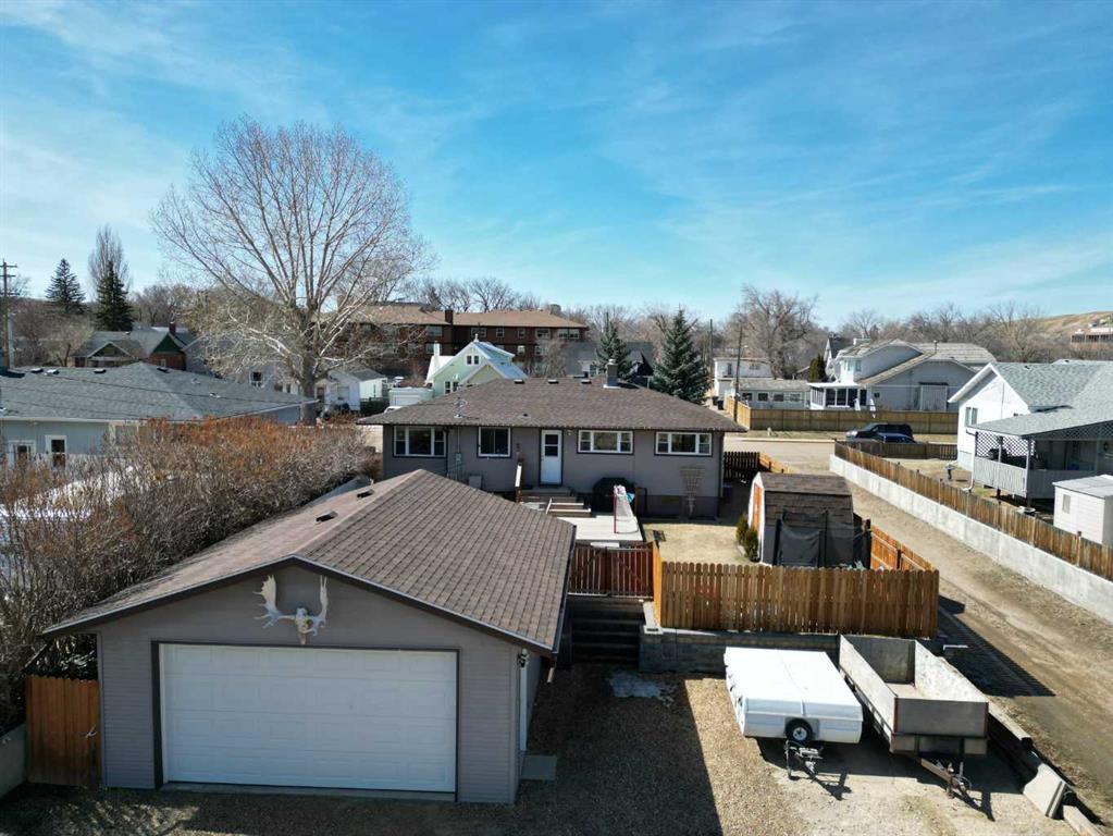This charming 1,135 sq ft bungalow has been lovingly maintained and is ready for its next owners. Ideally located in the heart of downtown, you’ll enjoy easy access to shopping, the Badlands Community Facility, scenic walking and biking trails, the skate park, and the Aquaplex. From the moment you arrive, the home’s great curb appeal and inviting front porch set the tone—perfect for relaxing and watching the world go by. Inside, you’ll find beautiful original hardwood floors in excellent condition, along with three comfortable bedrooms. The primary bedroom features its own full ensuite. The updated kitchen is both stylish and functional, complete with butcher block countertops and ample cabinet space. Downstairs, the finished basement offers even more living space, including a large family room, laundry area, a two-piece bathroom, and a versatile space that could easily be converted into a fourth bedroom. Outside, the fully fenced yard provides privacy and room to enjoy, while the detached heated double garage—with subpanel and 220V power—adds convenience and functionality. There is also additional parking available at the back. Key updates include a hot water tank (2 years old), house shingles (2016), garage shingles (2024), newer appliances, and a washer and dryer (2 years old). The electrical system has been updated, and sewer lines to the street have been replaced. Central air conditioning completes the package for year-round comfort. Don’t miss your chance—this move-in-ready home won’t last long