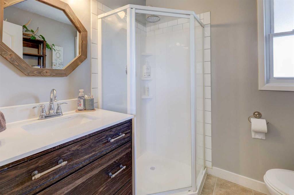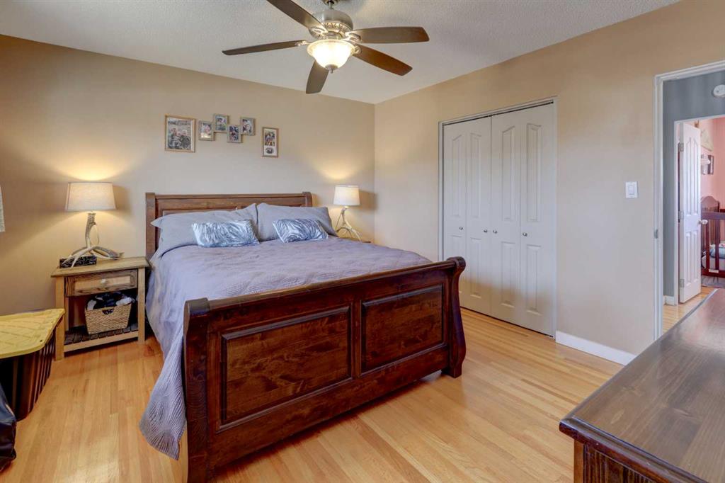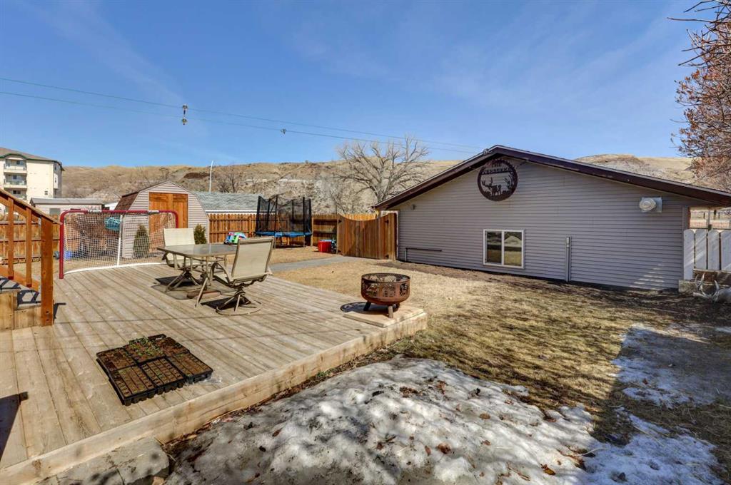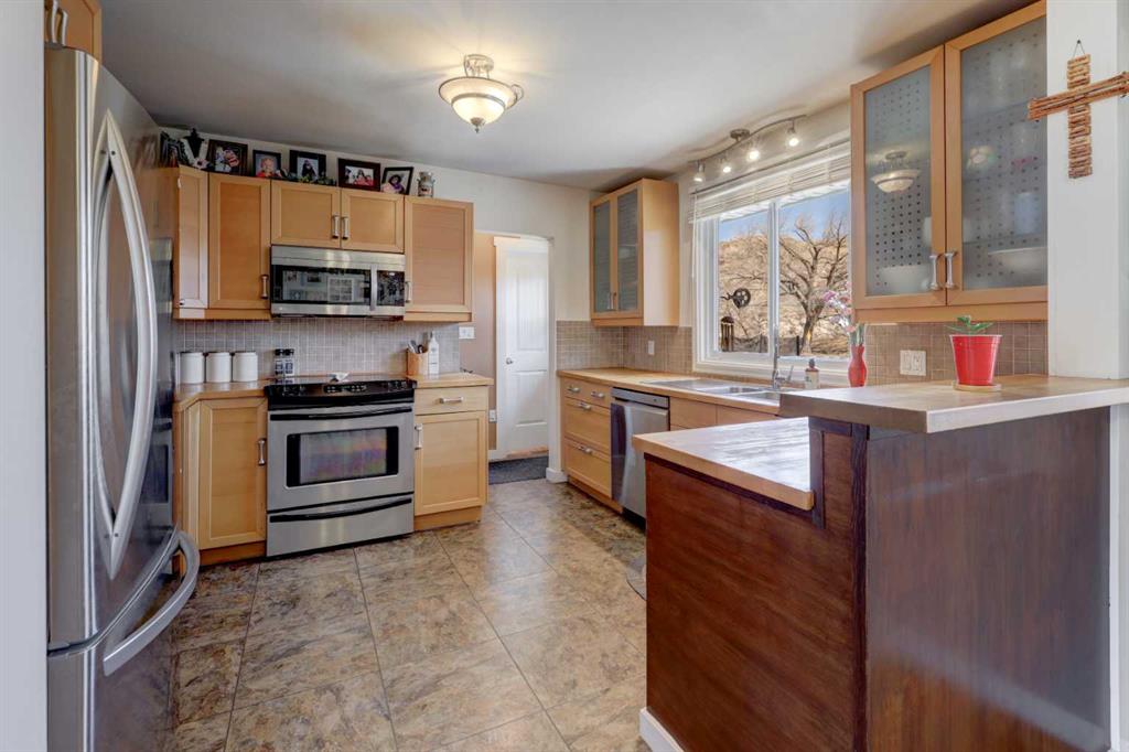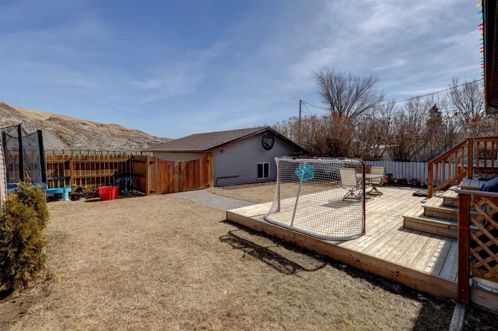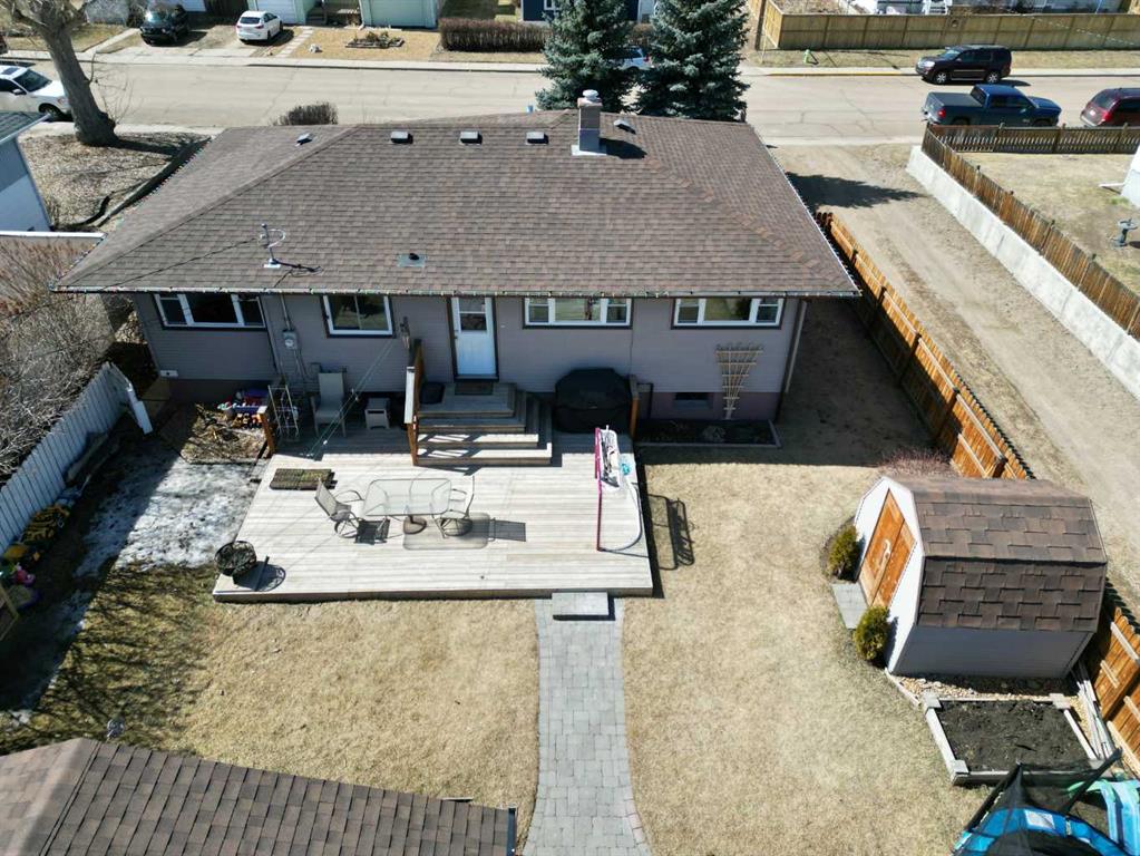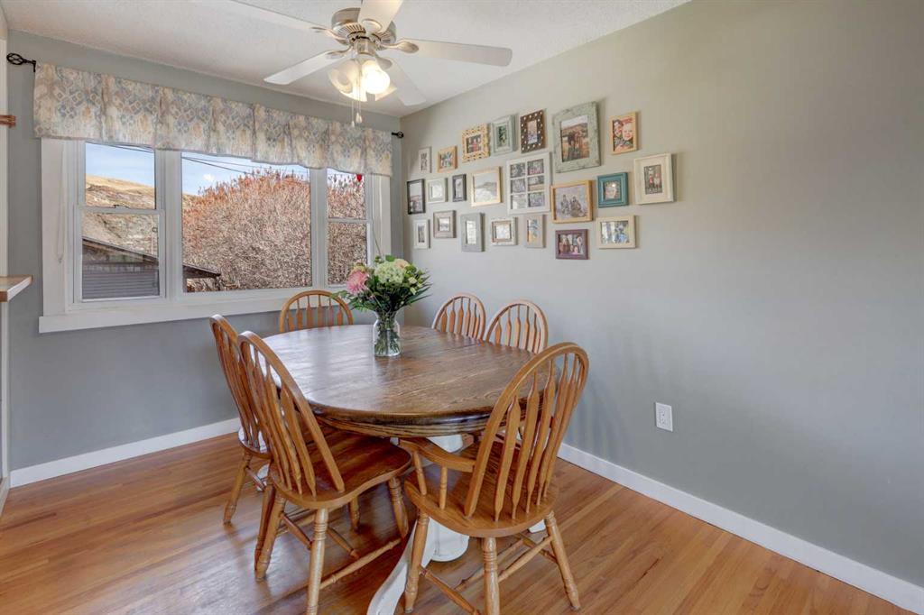 This charming 1,135 sq ft bungalow has been lovingly maintained and is ready for its next owners. Ideally located in the heart of downtown, you’ll enjoy easy access to shopping, the Badlands Community Facility, scenic walking and biking trails, the skate park, and the Aquaplex. From the moment you arrive, the home’s great curb appeal and inviting front porch set the tone—perfect for relaxing and watching the world go by. Inside, you’ll find beautiful original hardwood floors in excellent condition, along with three comfortable bedrooms. The primary bedroom features its own full ensuite. The updated kitchen is both stylish and functional, complete with butcher block countertops and ample cabinet space. Downstairs, the finished basement offers even more living space, including a large family room, laundry area, a two-piece bathroom, and a versatile space that could easily be converted into a fourth bedroom. Outside, the fully fenced yard provides privacy and room to enjoy, while the detached heated double garage—with subpanel and 220V power—adds convenience and functionality. There is also additional parking available at the back. Key updates include a hot water tank (2 years old), house shingles (2016), garage shingles (2024), newer appliances, and a washer and dryer (2 years old). The electrical system has been updated, and sewer lines to the street have been replaced. Central air conditioning completes the package for year-round comfort. Don’t miss your chance—this move-in-ready home won’t last long