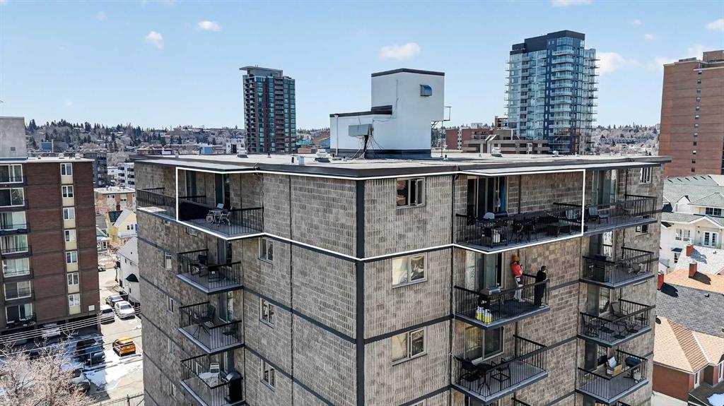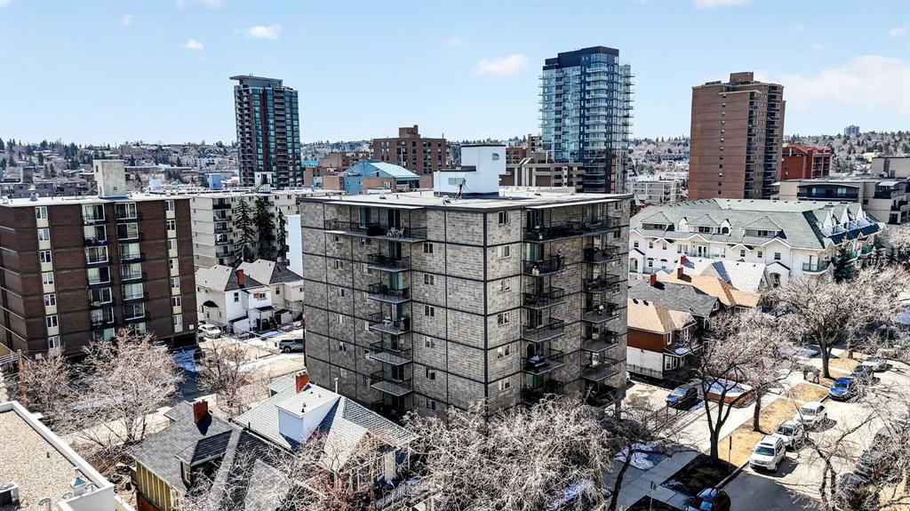 Top-floor Penthouse living with big City of Calgary views. This 2 bedroom, 2 full-bath condo at #802, 1213 13 Avenue SW in the Manor House building sits on the 8th floor and offers a functional, comfortable layout that flows naturally from room to room with over 1,138 sq.ft. You’re welcomed by a well-planned kitchen with stainless steel appliances, including Samsung refrigerator and electric stove, Bosch dishwasher, and Panasonic microwave, opening to the main living area and dining area. The primary bedroom includes a 4-piece ensuite, while a second full 4-piece bathroom is centrally located for guests or a roommate. Two generous balconies extend your living space outdoors, capturing wide North and East views of Calgary’s skyline and city lights. Only four units share this top floor, adding a sense of privacy. Laundry is flexible: there is a washer hookup in the upstairs closet if you prefer in-suite laundry, or continue to use the FREE shared washer and dryer (one set per floor). Condo fees are a major plus, covering all utilities (electricity, heat, water, sewer, trash, plumbing) a rarity now a days along with building caretaker, common area upkeep, snow removal, landscaping, professional management, and reserve fund contributions. This unit comes with a assigned parking stall and assigned storage locker. You’re close to restaurants on 17th Avenue, shopping, and public transit routs. Book your private showing today and experience this well kept unit for yourself.