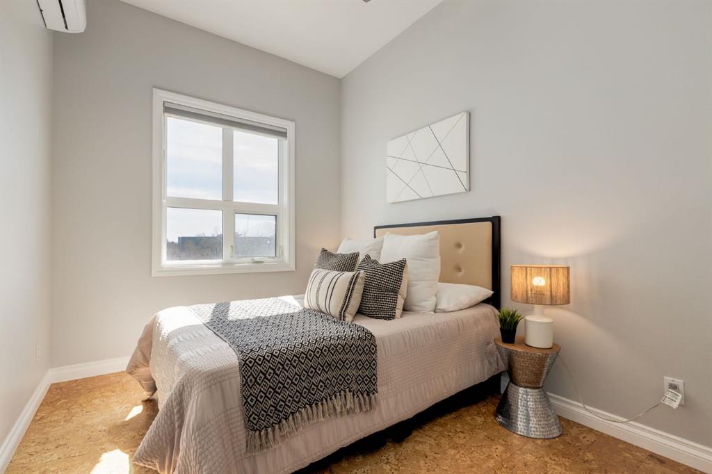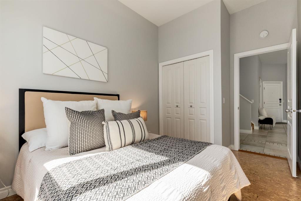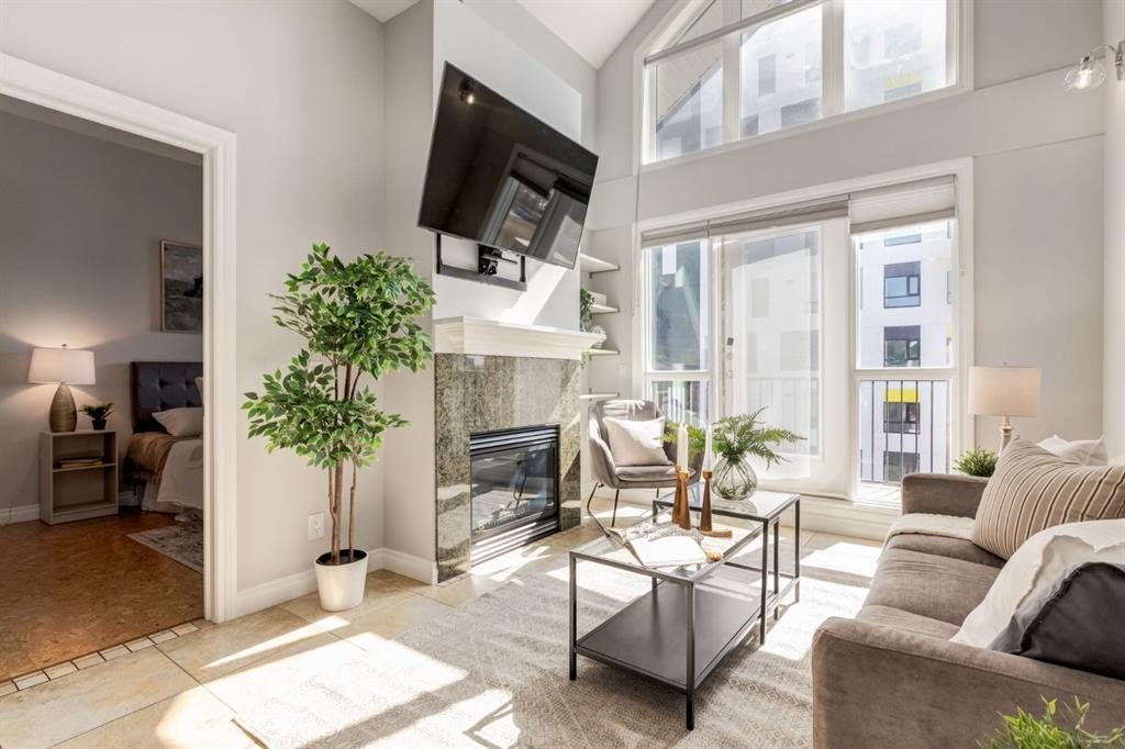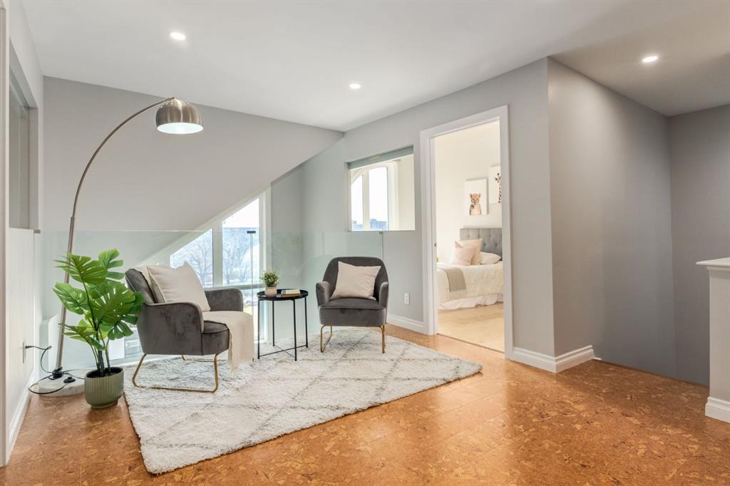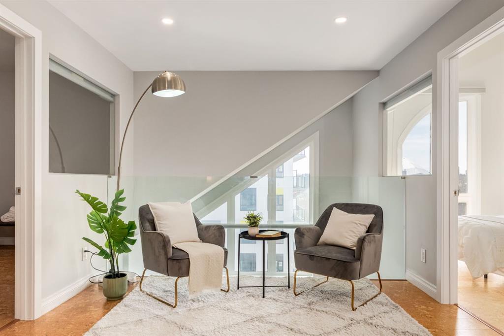 This spectacular, one of a kind four-bedroom penthouse loft offers unparalleled luxury lifestyle in trendy Mission, offers 4 bedrooms, 1,791sqft of space, the feel of a large two-storey home, and an unbelievably low condo fee. This crown jewel, top floor home showcases soaring 19ft vaulted ceilings, three full bathrooms, air conditioning, is flooded with natural light through enormous south facing windows and has the character and charm that is hard to find in today’s cookie-cutter world. Located just steps from the Elbow River, Stampede Park, MNP Center, transit, and all the amenities downtown and 17th Ave have to offer, this unique home is an unforgettable masterpiece. As you enter, you are greeted by a sprawling front entryway with a large coat closet, and room for bench seating. The entryway leads to your expansive, open-concept living space that showcases massive south facing windows, and boasts 10-foot ceilings with a 19ft vault over the living room. The stylish kitchen features granite countertops, bar seating, stainless steel appliances, and timeless white cabinetry. Just off the kitchen, your dining space flows perfectly with room to host family and friends. Your eye will be naturally drawn to your impressive living room with a striking gas fireplace with an elegant tile surround and classic, white mantle. The living room is drenched with natural light through vast windows that reach up to the vaulted ceiling. Step outside onto your south facing balcony that comes complete with natural gas and provides views of the river valley and Stampede Park. The main floor showcases your sprawling primary suite with vaulted ceilings, room for king-sized furniture and a designated seating nook. The primary bedroom has two large walk-in closets, and an enormous ensuite bathroom that features a large soaker tub and stand-up shower. The main floor also has a large second bedroom with warm cork flooring and is completed by a 4-piece bathroom with granite countertops, and laundry. Upstairs has been completely re-imagined and renovated in 2019, providing a one-of-a-kind layout, and extra square footage. The upper level is dripping with elegance and includes two additional large bedrooms, and a quaint sitting area overlooking the Elbow River. The upper-level features warm cork flooring, and a bonus space that is perfect for crafts, playing, work, or as a secondary media space. The upper level also boasts a sprawling kitchenette that provides can be used as a bar space, a secondary kitchen, or for your creative business endeavours. The upper level is finished by a beautiful 4-piece bathroom with dual vanities,and a sophisticated stand-up shower with elegant niche and stunning white tile. This masterfully designed home has the space and feel to provide an incredible home for your family while still enjoying the benefits of inner-city living. Featuring A/C throughout, a separate storage unit, and the feel of a detached home, this stunning penthouse is a one-of-a-kind opportunity.