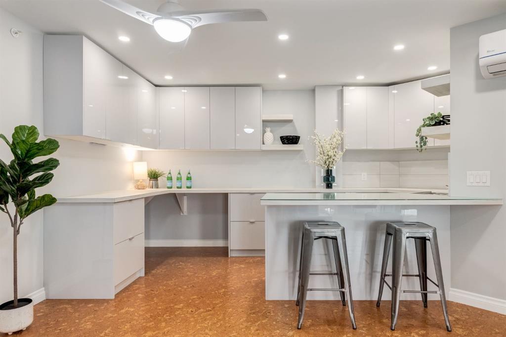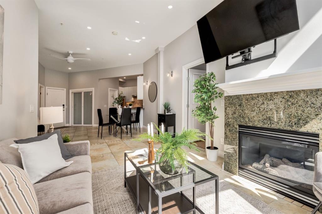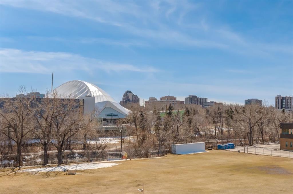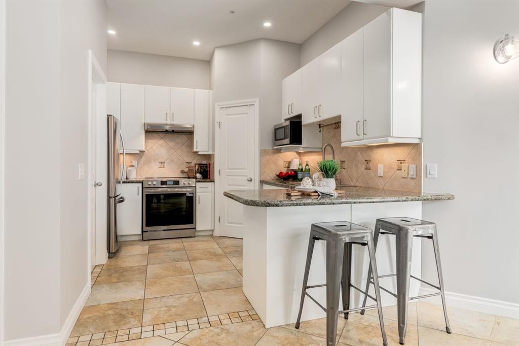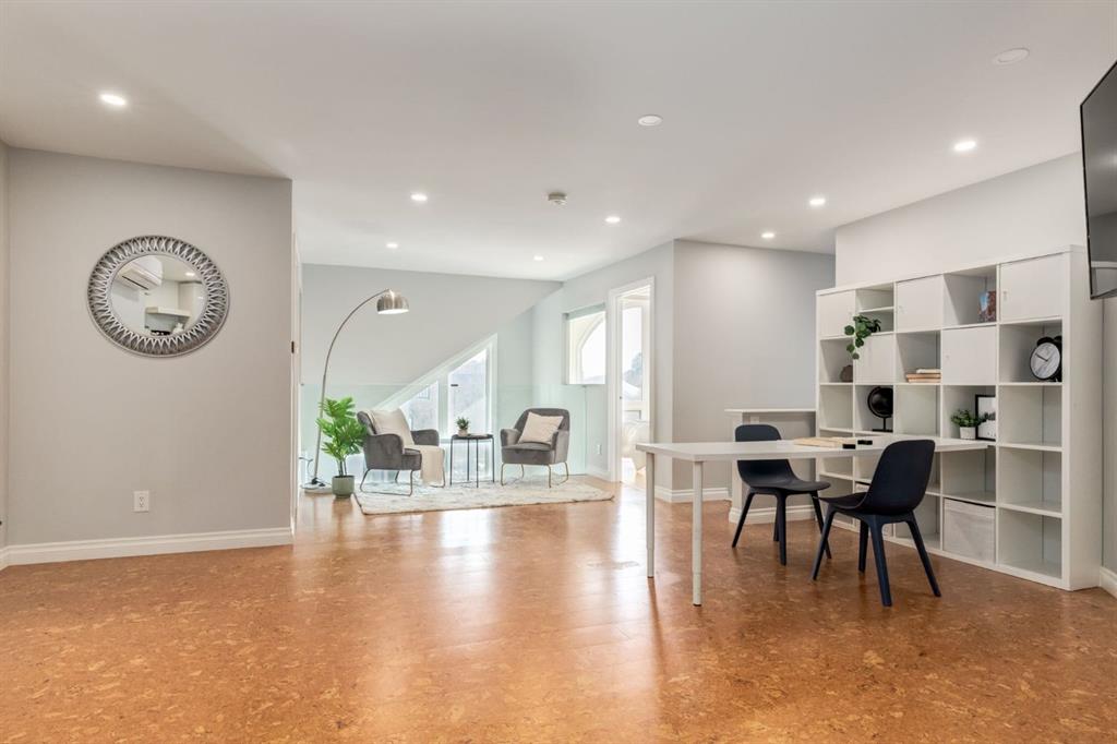 This spectacular, one of a kind four-bedroom penthouse loft offers unparalleled luxury lifestyle in trendy Mission, offers 4 bedrooms, 1,791sqft of space, the feel of a large two-storey home, and an unbelievably low condo fee. This crown jewel, top floor home showcases soaring 19ft vaulted ceilings, three full bathrooms, air conditioning, is flooded with natural light through enormous south facing windows and has the character and charm that is hard to find in today’s cookie-cutter world. Located just steps from the Elbow River, Stampede Park, MNP Center, transit, and all the amenities downtown and 17th Ave have to offer, this unique home is an unforgettable masterpiece. As you enter, you are greeted by a sprawling front entryway with a large coat closet, and room for bench seating. The entryway leads to your expansive, open-concept living space that showcases massive south facing windows, and boasts 10-foot ceilings with a 19ft vault over the living room. The stylish kitchen features granite countertops, bar seating, stainless steel appliances, and timeless white cabinetry. Just off the kitchen, your dining space flows perfectly with room to host family and friends. Your eye will be naturally drawn to your impressive living room with a striking gas fireplace with an elegant tile surround and classic, white mantle. The living room is drenched with natural light through vast windows that reach up to the vaulted ceiling. Step outside onto your south facing balcony that comes complete with natural gas and provides views of the river valley and Stampede Park. The main floor showcases your sprawling primary suite with vaulted ceilings, room for king-sized furniture and a designated seating nook. The primary bedroom has two large walk-in closets, and an enormous ensuite bathroom that features a large soaker tub and stand-up shower. The main floor also has a large second bedroom with warm cork flooring and is completed by a 4-piece bathroom with granite countertops, and laundry. Upstairs has been completely re-imagined and renovated in 2019, providing a one-of-a-kind layout, and extra square footage. The upper level is dripping with elegance and includes two additional large bedrooms, and a quaint sitting area overlooking the Elbow River. The upper-level features warm cork flooring, and a bonus space that is perfect for crafts, playing, work, or as a secondary media space. The upper level also boasts a sprawling kitchenette that provides can be used as a bar space, a secondary kitchen, or for your creative business endeavours. The upper level is finished by a beautiful 4-piece bathroom with dual vanities,and a sophisticated stand-up shower with elegant niche and stunning white tile. This masterfully designed home has the space and feel to provide an incredible home for your family while still enjoying the benefits of inner-city living. Featuring A/C throughout, a separate storage unit, and the feel of a detached home, this stunning penthouse is a one-of-a-kind opportunity.