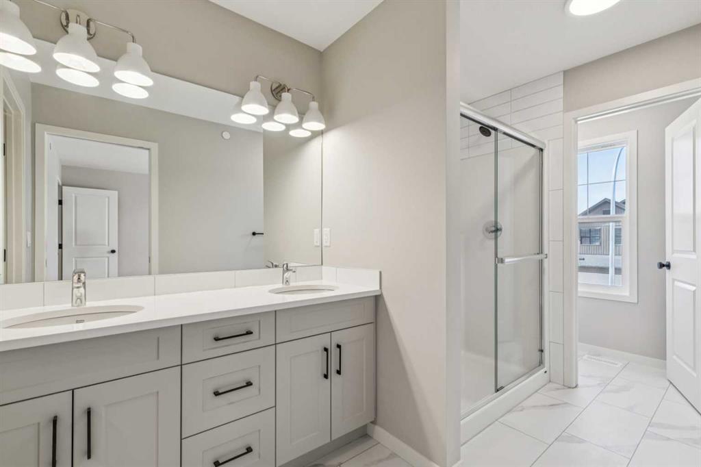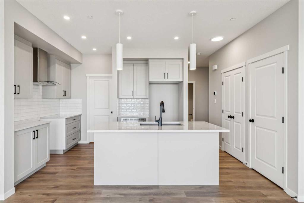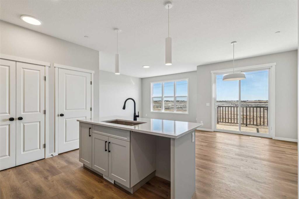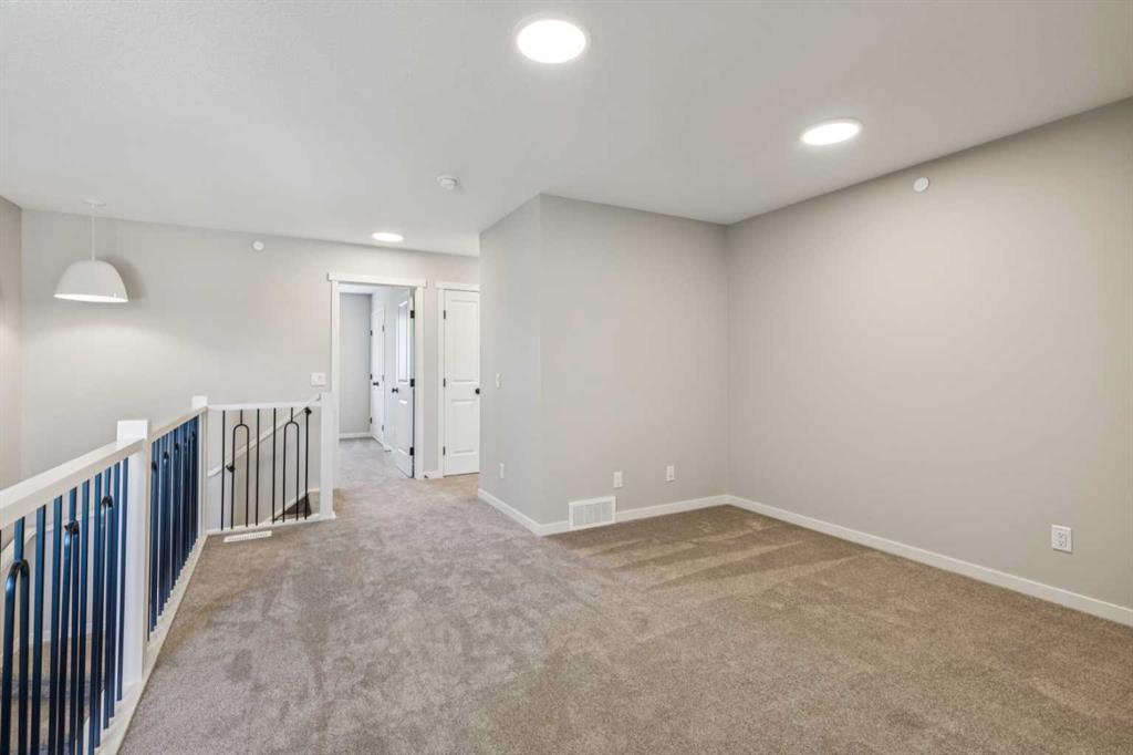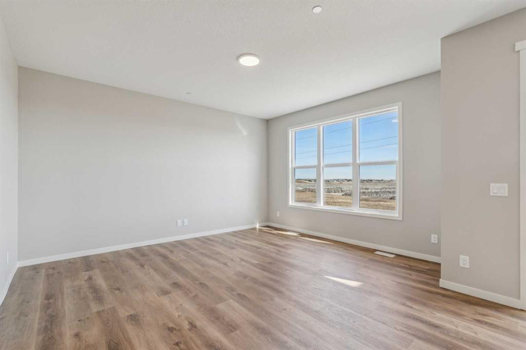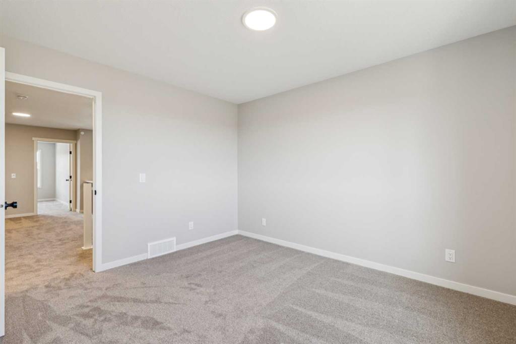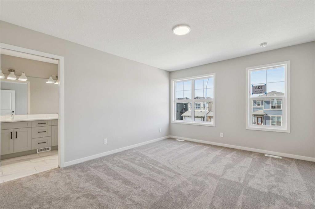 Welcome to the Carisa at 338 Hotchkiss Manor SE. Perfectly positioned on a desirable walkout lot, offering both functionality and future potential. This thoughtfully designed home delivers exceptional value with a layout tailored for modern living, all at an attainable price point. The main floor features a convenient pocket office—ideal for working from home—alongside an open-concept kitchen equipped with stainless steel appliances, a chimney hood fan, built-in microwave, quartz countertops, and an additional bank of drawers for extra storage. Luxury vinyl plank flooring flows throughout, complemented by stylish finishes like painted spindle railings and well-placed pot lights. Upstairs, enjoy the convenience of a dedicated laundry closet, a versatile entertainment room, and a spacious primary retreat complete with a dual-sink ensuite. The home also includes a 9’ foundation, secondary entrance, and a 3-piece basement rough-in—providing flexibility for future development. Step outside to a 10’ x 9’-6” walkout deck with a built-in gas line for your BBQ, perfect for entertaining or relaxing evenings. A stairwell window enhances natural light throughout the home. Combining smart design, quality finishes, and incredible potential, this is a home that truly checks all the boxes. Enjoy the added benefit of a natural wetland feature right at your doorstep, bringing serene views and a connection to nature just steps from home. Community Highlights includes, prime access to Deerfoot Trail, Stoney Trail, and Macleod Trail, Minutes from shopping, dining, and everyday amenities, Over 51 acres of parks, pathways, and wetlands for year-round recreation First-time buyers may be eligible for a GST rebate—speak to your Realtor or sales representative to learn more.