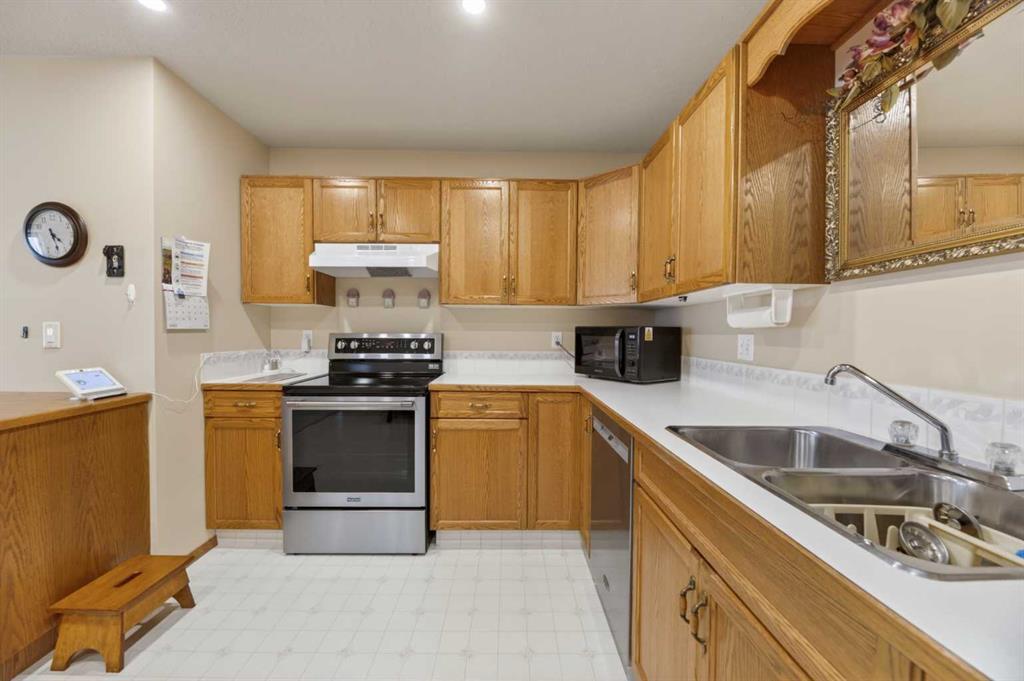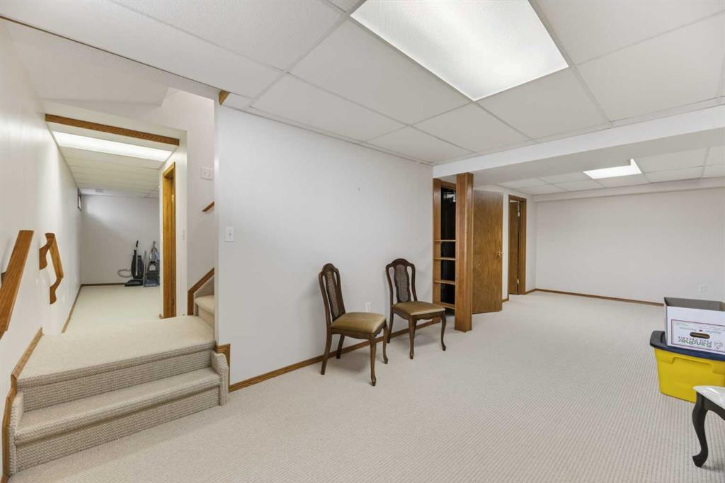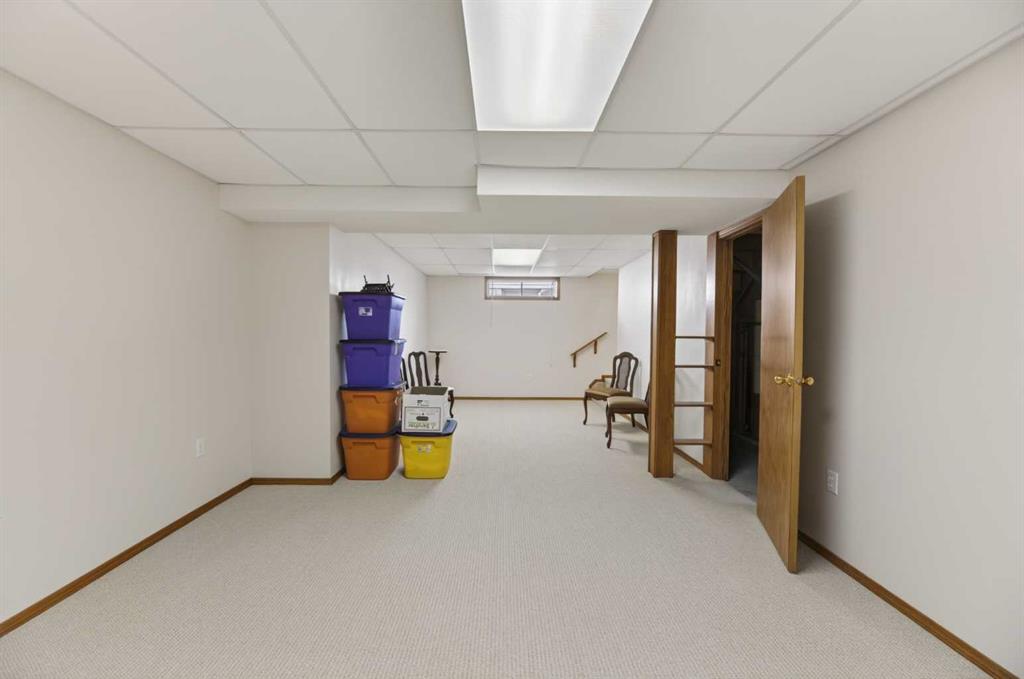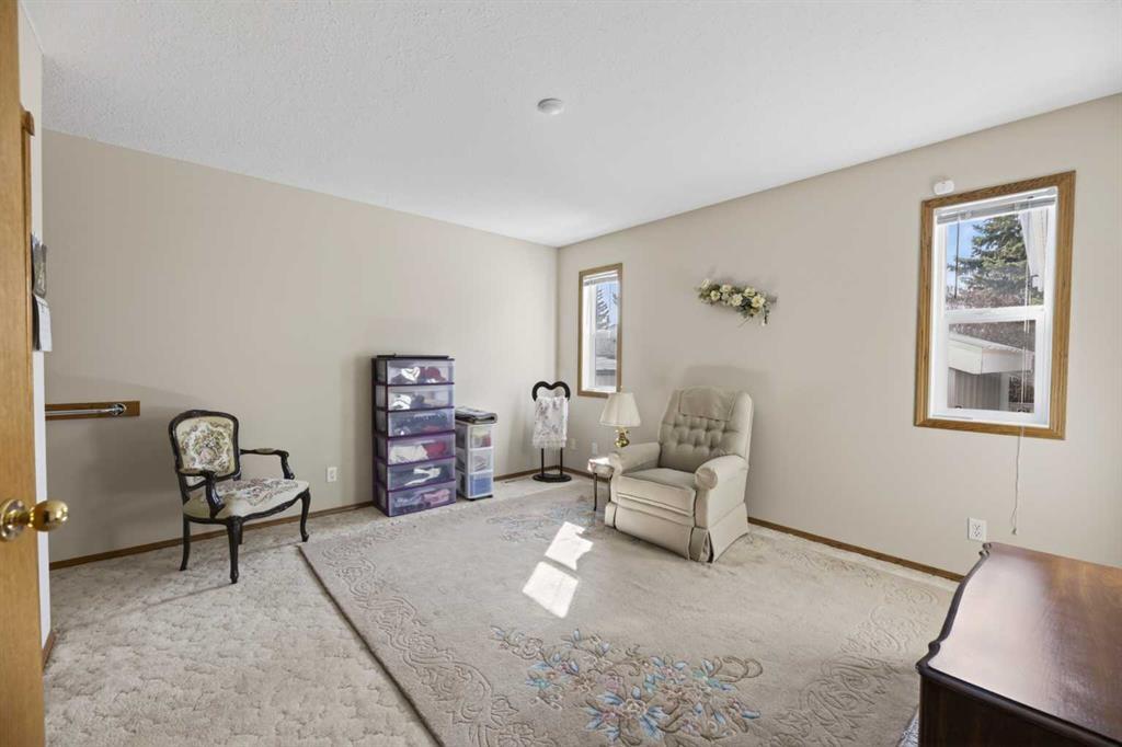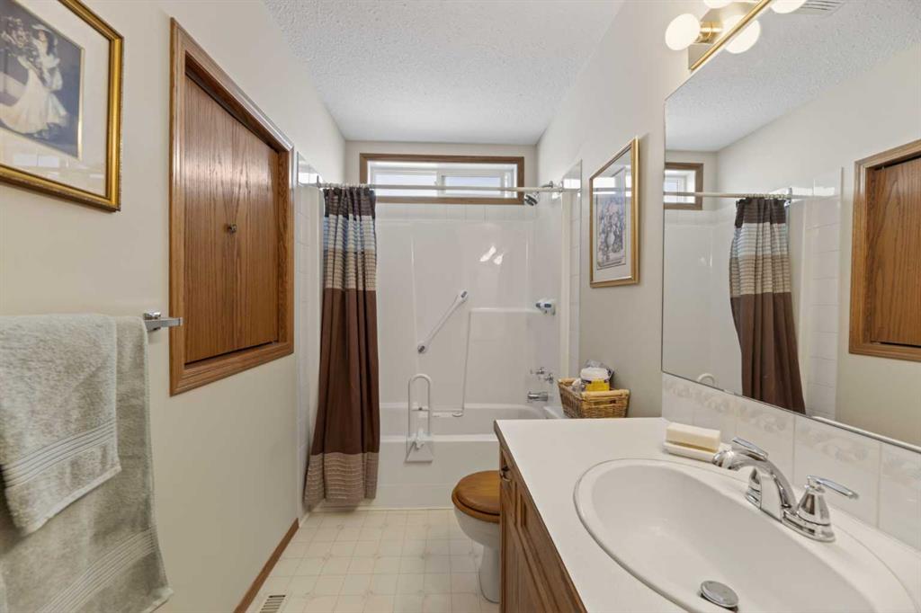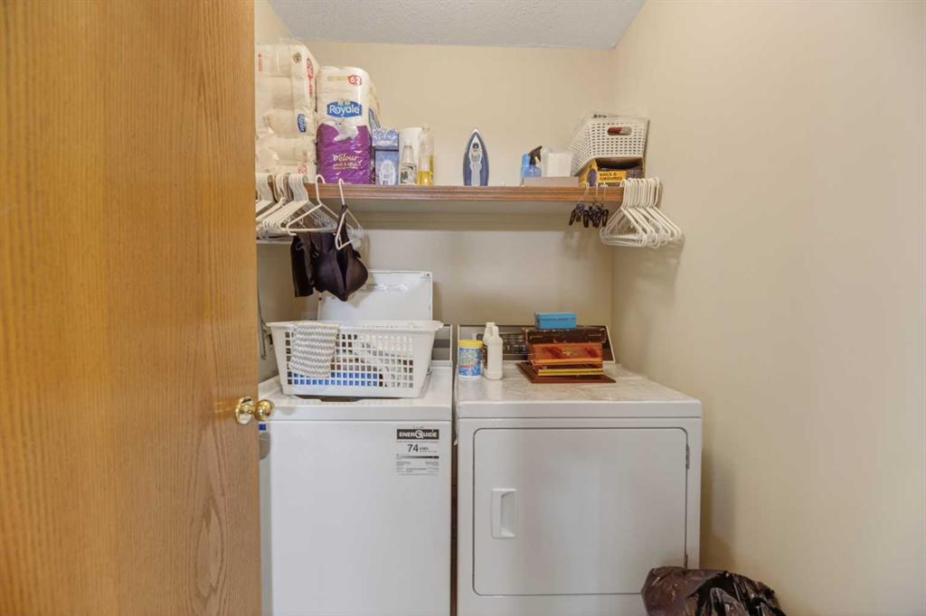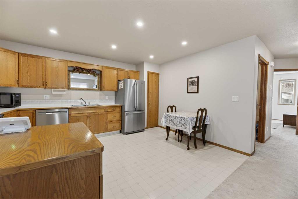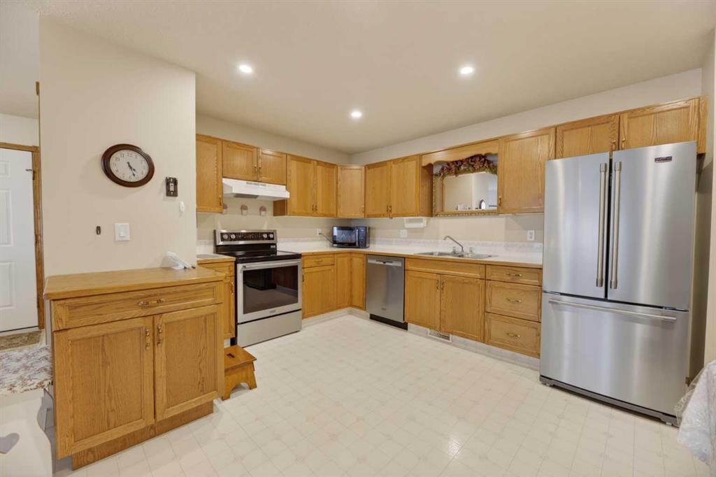 Welcome to this immaculate 50+ half duplex, ideally located in a quiet cul-de-sac and backing onto walking paths—perfect for those seeking a peaceful, low-maintenance lifestyle. This well-cared-for home offers 2 bedrooms on the main floor, including one with direct access to a covered, west facing enclosed 13'2 x 9'10 deck—an ideal space to enjoy your morning coffee or unwind in the evenings. The kitchen has lots of oak cabinets and space for a small table or a moveable island, a combination dining/livingroom with 2 large bay windows, 4-piece main bathroom, and a convenient 2-piece ensuite. Main floor laundry adds to the ease of everyday living, and a door off the front entrance provides direct access to the attached single garage. The fully developed basement expands your living space with plenty of storage space, a 3-piece bathroom and two versatile areas—perfect for a family room, hobby space, or accommodating guests. Upgrades include newer main floor windows, hot water tank (2020), stove and dishwasher (2022), refrigerator, furnace thermostat, and smoke/CO detectors (2023), washer and dryer, garage door, and garage door opener (2024), and sump pump (2025). A truly move-in ready home—this one shows beautifully and is a must-see!