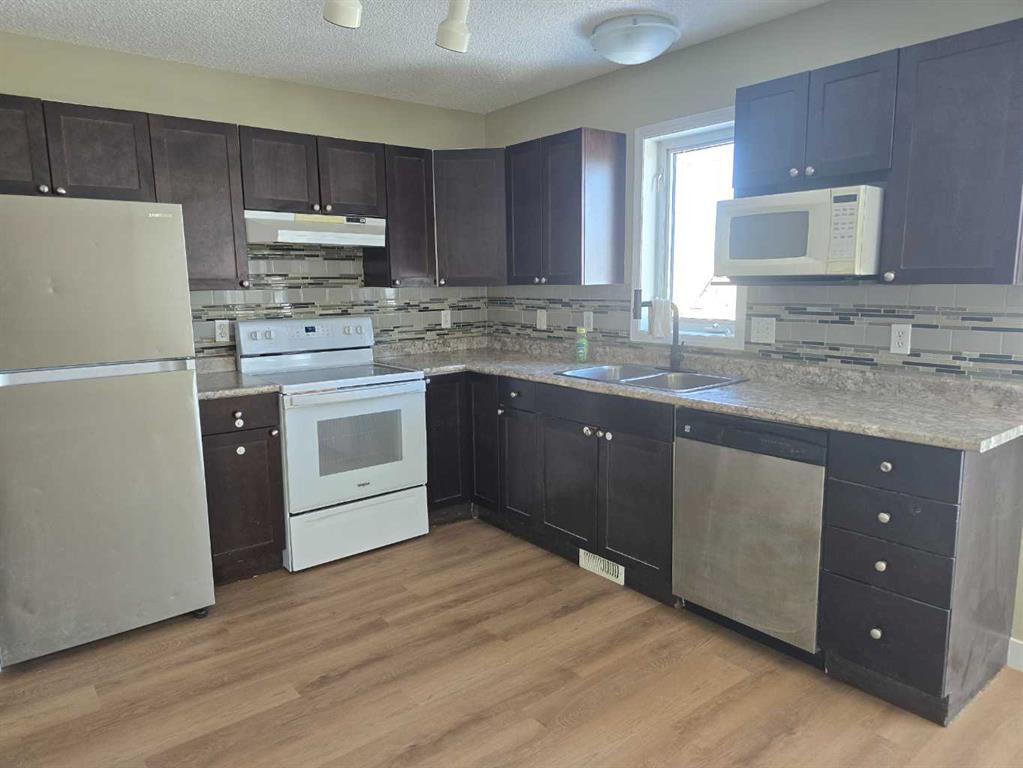PRICED TO SELL – NO CONDO FEES! This 1,714 sq. ft. two-story duplex in the desirable Thickwood area represents an exceptional opportunity for a first-time homebuyer or investor looking for a move-in-ready property. Recently updated with fresh paint throughout and brand-new flooring across the main level, this home is clean, modern, and ready for its new owners. For ultimate peace of mind, the furnace was replaced in 2025 and remains under warranty, ensuring reliable comfort for years to come. The bright, open-concept main floor features a cozy fireplace, a functional kitchen and dining area, and direct access to both a back deck and an attached single garage. The upper level is thoughtfully designed with a primary suite featuring a private ensuite and a massive walk-in closet, along with two additional bedrooms and a full bathroom. Adding even more value is the fully developed basement, which comes complete with a kitchenette, an extra bedroom, a bathroom, and a second laundry area—ideal for guests, extended family, or potential rental income. Situated on a prime corner lot, the property offers extra yard space and privacy while being steps away from Tim Hortons, grocery stores, schools, shopping, and major bus routes. With no condo fees and an unbeatable location, 100 Sirius Avenue offers a perfect blend of comfort and investment potential. Schedule your private viewing today!