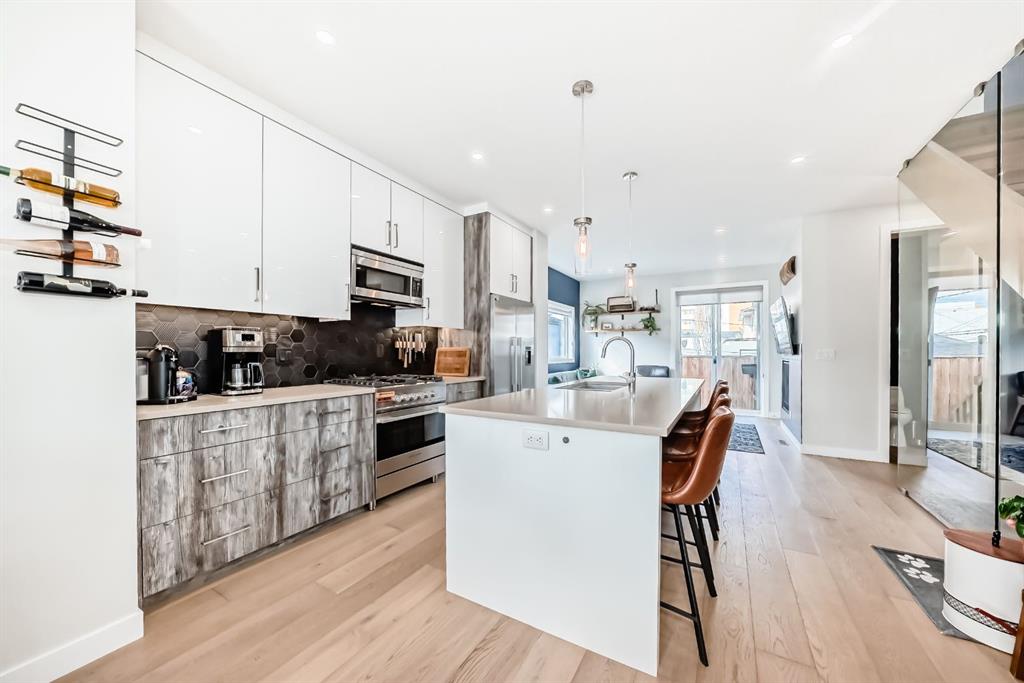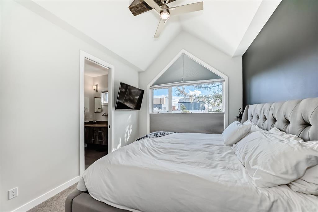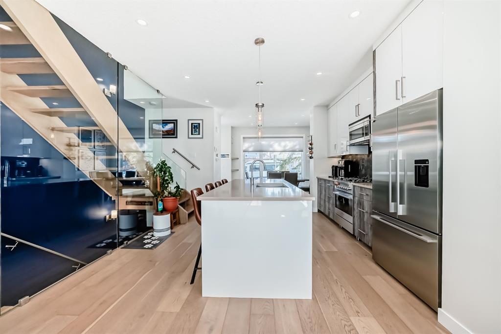 Welcome to elevated inner-city living in the highly sought-after community of Windsor Park. This stunning luxury townhouse offers 1,836 sq ft of beautifully designed living space, blending upscale finishes with functionality. Featuring 3 spacious bedrooms and 3.5 bathrooms, this home is perfect for families or professionals alike. Each full bathroom is equipped with in-floor heating, bringing an added touch of everyday comfort. The chef-inspired kitchen is outfitted with premium Fisher & Paykel appliances, sleek cabinetry, and a layout ideal for entertaining. The stunning glass wall is a true highlight The primary retreat is a true standout, showcasing vaulted ceilings that create an airy, luxurious feel. A large walk-in closet, and large ensuite bathroom featuring a double vanity and IN-FLOOR HEAT. Downstairs, the fully finished basement expands your living space with a stylish wet bar, additional bedroom, full bathroom (with in-floor heat!), storage, and a cozy lounge area—perfect for guests, relaxing evenings at home, or entertaining! Enjoy the convenience of air conditioning, a private patio complete with a natural gas line for your BBQ, and easy access just steps from your garage. With low condo fees and a pet-friendly policy, this property offers both comfort and flexibility. Ideally located just minutes from downtown and Chinook Mall. Walking distance to parks & playgrounds, Brittania Plaza, Stanley Park & dog parks. Come see this immaculate property yourself & experience all that Windsor Park has to offer!