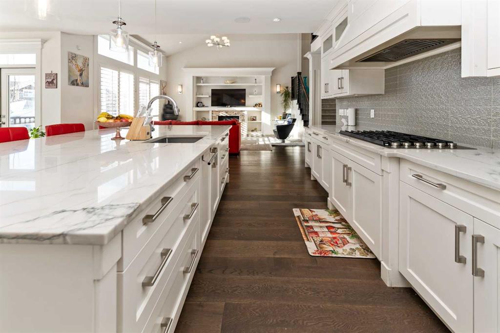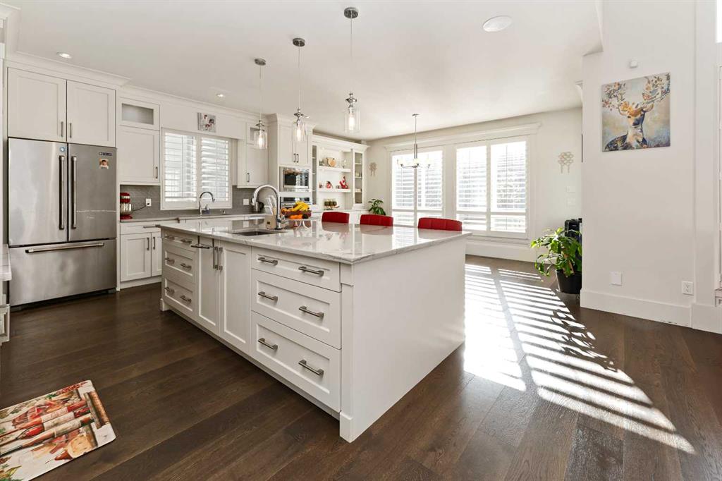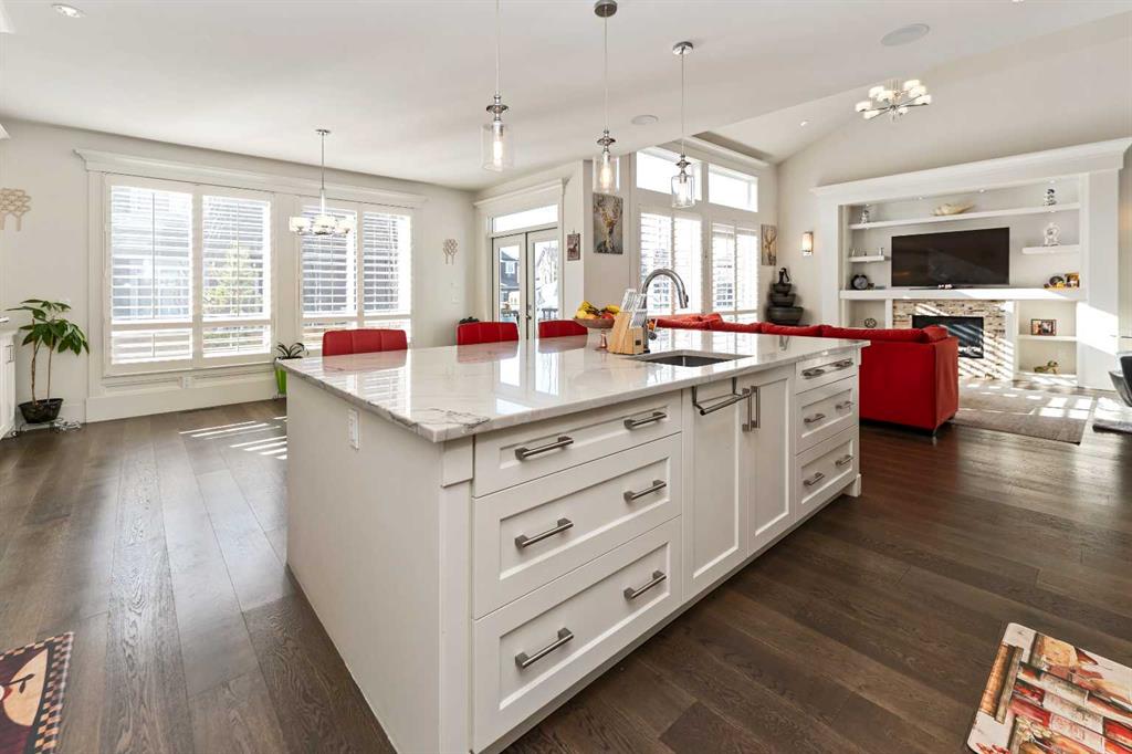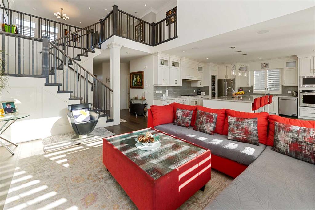 Experience the pinnacle of suburban luxury at 129 Kinniburgh Gardens, a masterfully crafted residence by Sun Star Homes situated on a premium corner lot in Chestermere. This sprawling 2-storey home offers an abundance of sophisticated living space, highlighted by an open-to-above family room, high-end California blinds, and custom woodwork that flows seamlessly from the main-floor office to the massive dining area with its built-in wine rack. The gourmet chef’s kitchen is a showstopper with quartz countertops and a walk-through pantry, while the upper level serves as a private sanctuary featuring a vaulted master suite and a versatile bonus room with integrated ceiling speakers. Beyond the four spacious upstairs bedrooms, the fully finished 2 Bedroom Ill-Legal Basement Suite adds incredible value with a second kitchen, a large rec room, and two additional bedrooms—perfect for rental and will be your mortgage helper . Complete with a west-facing backyard, custom metal fencing, and professional landscaping, this home offers an unparalleled lifestyle just minutes from Chestermere Lake, top-tier schools, and local amenities. This is a rare opportunity to own a home where every detail has been thoughtfully curated for a life of comfort and prestige.