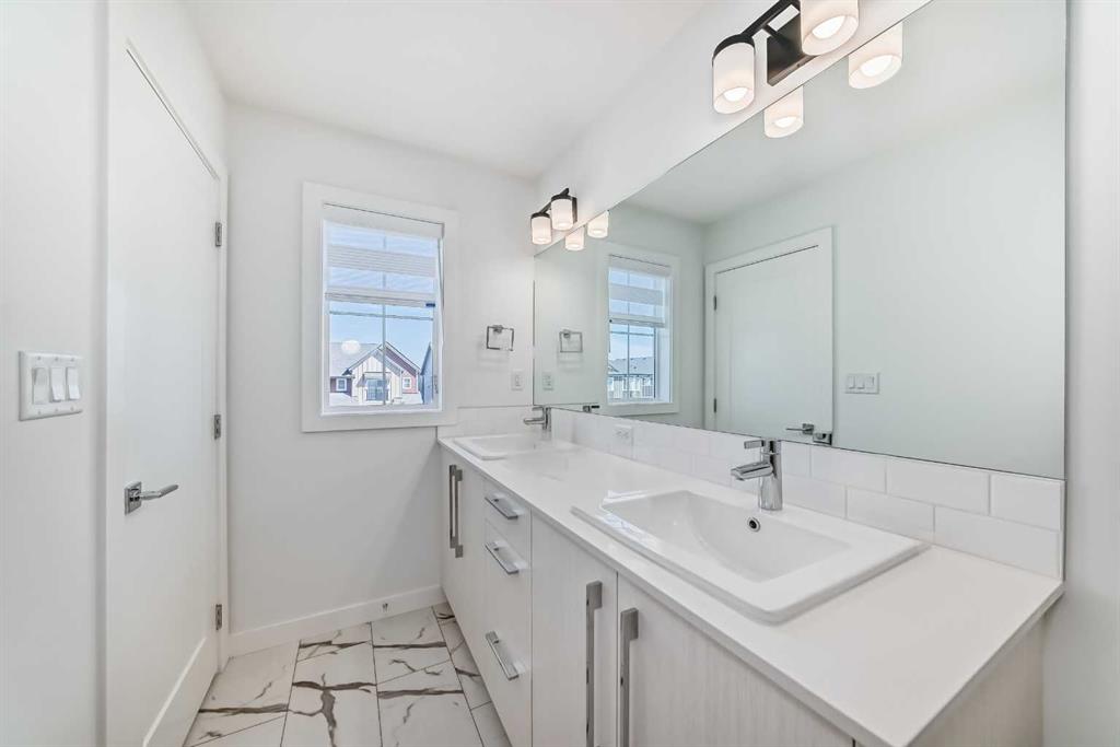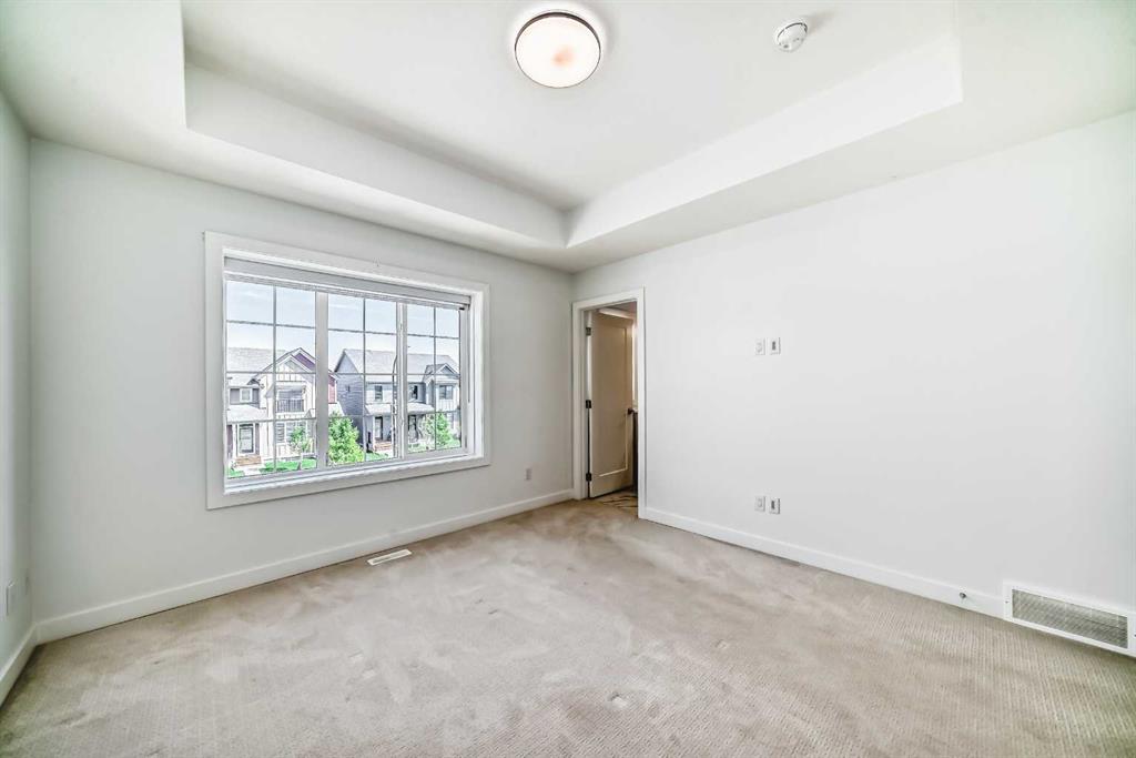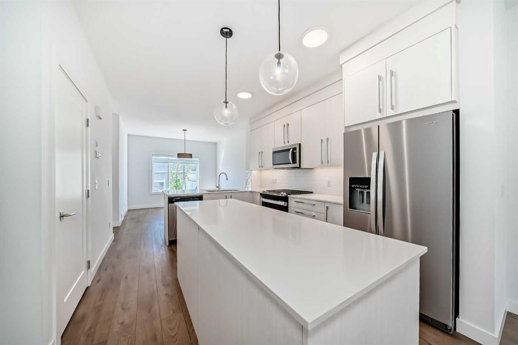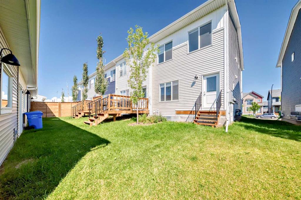 END UNIT | NO CONDO FEES | DOUBLE GARAGE! Stunning TRUMAN-built 3 bed, 2.5 bath townhouse in the vibrant SE community of Rangeview. This end unit offers an open-concept main floor with a bright chef’s kitchen featuring full-height cabinetry, quartz countertops, stainless steel appliances (gas range), pantry, and a large island—perfect for entertaining. Upstairs includes a spacious primary suite with walk-in closet and 4-piece ensuite, plus two additional bedrooms, full bath, and dedicated laundry closet with washer and dryer providing ample space for families and guests. The unfinished basement presents endless potential for customization— recreation space, or extra storage! Enjoy a double garage, side entrance, and modern finishes throughout. Situated just steps from Rangeview’s playgrounds and greenspaces, and within minutes of the South Health Campus, Seton YMCA, schools, churches, and shopping in Seton and Mahogany. With quick access to both Stoney Trail and Deerfoot Trail, commuting is easy. Modern living meets everyday convenience—book your showing today!