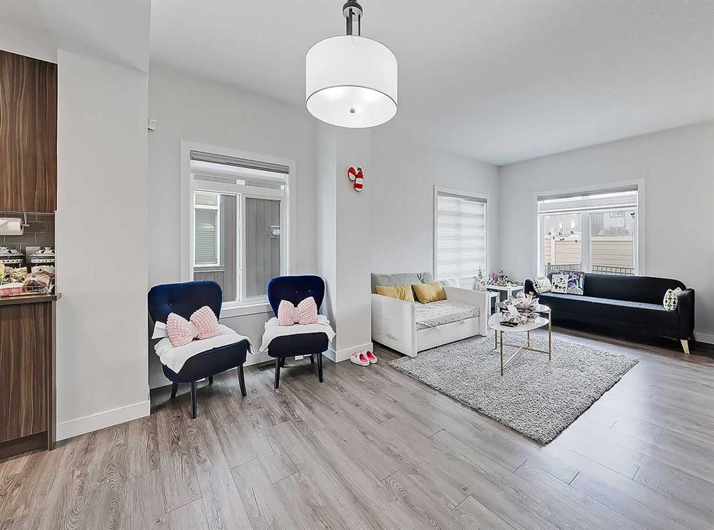 Nestled in the heart of Sage Hill, this stunning 3 BEDROOM END UNIT (the only 3 bedroom currently for sale in this complex) offers a perfect blend of luxury, comfort, and contemporary design with low condo fees! Greeting you on the main level are 9ft high ceilings, creating an immediate sense of spaciousness and airiness. Beautiful vinyl plank flooring graces the main floor, providing both durability and aesthetic appeal. Extra natural light from the side windows graces ever spot of this home - a feature only an unit can have. The large kitchen boasts a spacious island complete with breakfast bar seating. Stainless steel appliances add a touch of sophistication while the pantry and extensive cabinetry provide ample storage space. A subway tile backsplash and quartz countertops add a contemporary flair to the space. The open concept design seamlessly connects the eating nook to both the kitchen and the living room, fostering a sense of togetherness and making it an ideal space for shared moments with family and friends. Large windows flood the living room with natural light, creating an inviting atmosphere that complements the contemporary design elements. Completing this main level is a convenient 2pc powder room! Ascending to the upper level, the primary is complete 3-piece ensuite with a standalone shower, and walk in closet. The other 2 bedrooms are nicely sized. All bedrooms feature big windows, allowing an abundance of natural light to fill the space and create a warm and welcoming ambiance. Upper-level laundry and a linen closet add a practical touch. The parking is a proper SIDE BY SIDE DOUBLE GARAGE, equipped with additional storage space, ensures that practicality and functionality are seamlessly integrated into the design. The parking pad in addition to the garage allows for three vehicles to be comfortably stored at the residence. Outside a large concrete patio allows for maximum use of outdoor space - without the cost of maintenance! Here you'll find a convenient built-in gas line for the BBQ. Everything you'd want in a home without the extra maintenance is here. This property is ready to be wrapped up in a nice bow for the next family to enjoy!