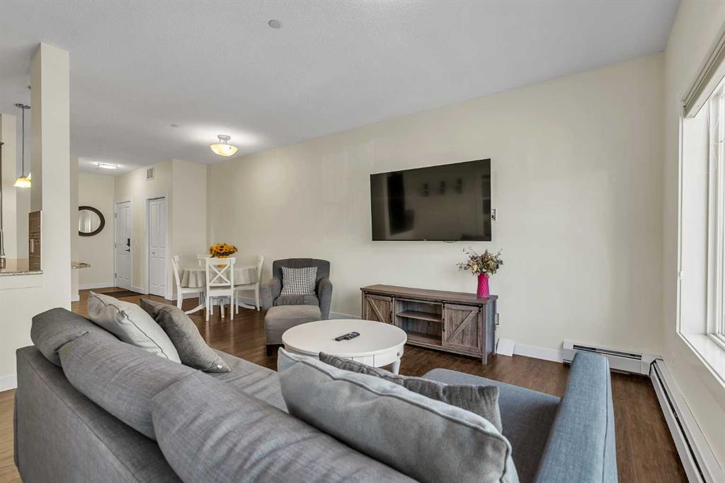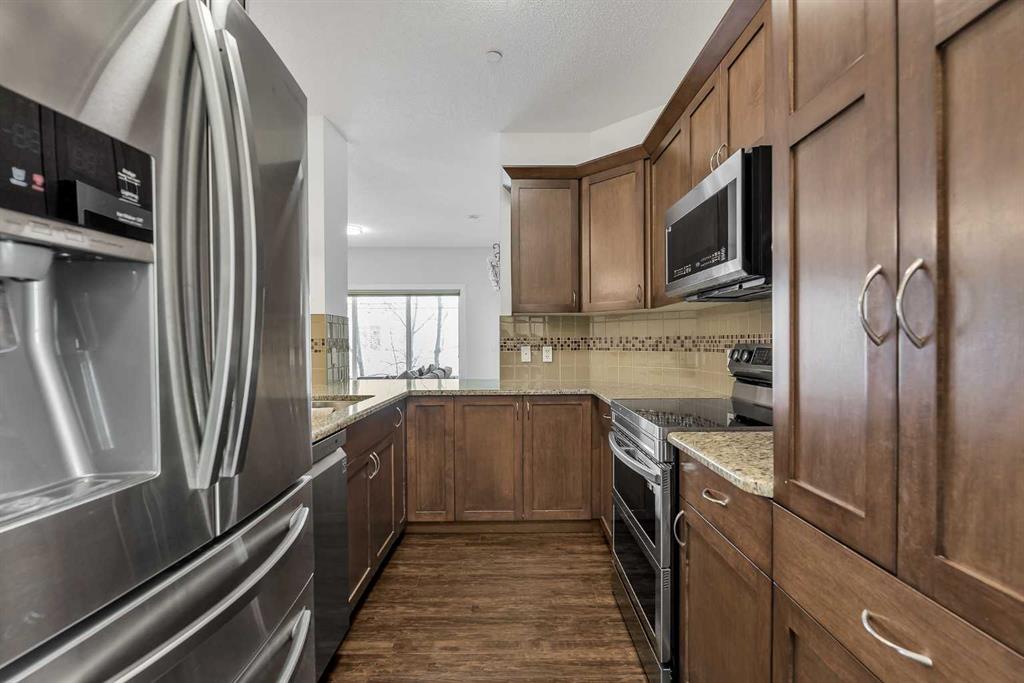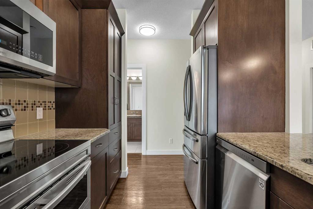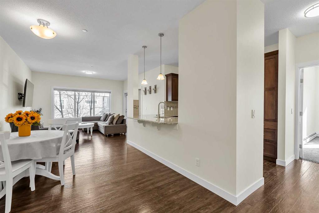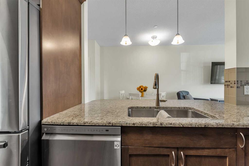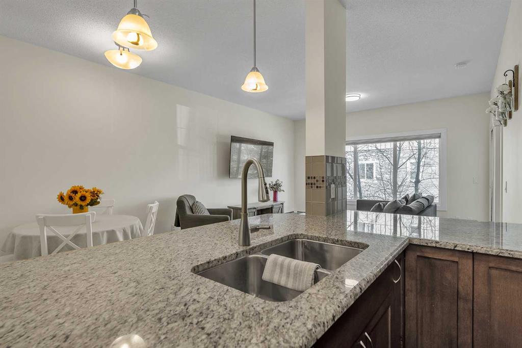 Welcome to this STUNNING CORNER UNIT offering exceptional natural light, making it one of the BRIGHTEST HOMES IN THE BUILDING. This beautifully maintained 2 BEDROOM, 2 BATHROOM condo is in PRISTINE, MOVE-IN READY CONDITION and truly stands out the moment you walk in. The open and spacious layout features HIGH CEILINGS, large windows, and a warm, inviting feel throughout. The kitchen is finished with GRANITE COUNTERTOPS, modern cabinetry, and a sleek STAINLESS STEEL APPLIANCE PACKAGE, all complemented by updated fixtures and thoughtful touches across the home. Recent upgrades, including FRESH PAINT, newer carpet with quality underlay, and updated bathrooms, make this unit feel ULTRA CLEAN AND WELL CARED FOR. Step outside to your OVERSIZED SOUTHEAST-FACING BALCONY, surrounded by mature trees that provide both PRIVACY AND A PEACEFUL SETTING. One of the standout features is the convenience of TWO PARKING STALLS (ONE TITLED, ONE ASSIGNED), both located close to the building entrance. This unit also offers one of the QUICKEST ACCESS ROUTES to those stalls, making daily living easy and efficient, NO NEED TO WAIT FOR THE ELEVATOR. Additional highlights include IN-SUITE LAUNDRY, quality window coverings, and a SEPARATE STORAGE LOCKER in the building. Located within walking distance to PARKS, PATHWAYS, SHOPPING, RESTAURANTS, AND PUBLIC TRANSIT, and close to schools and all amenities, this is an ideal home in a HIGHLY DESIRABLE COMMUNITY. If you’re tired of seeing properties that look great online but disappoint in person, this is the one that truly delivers. COME SEE IT FOR YOURSELF. Check out the virtual tour now, this one won’t last long.