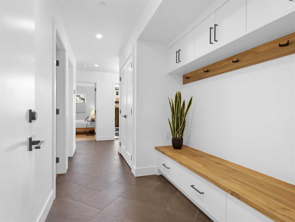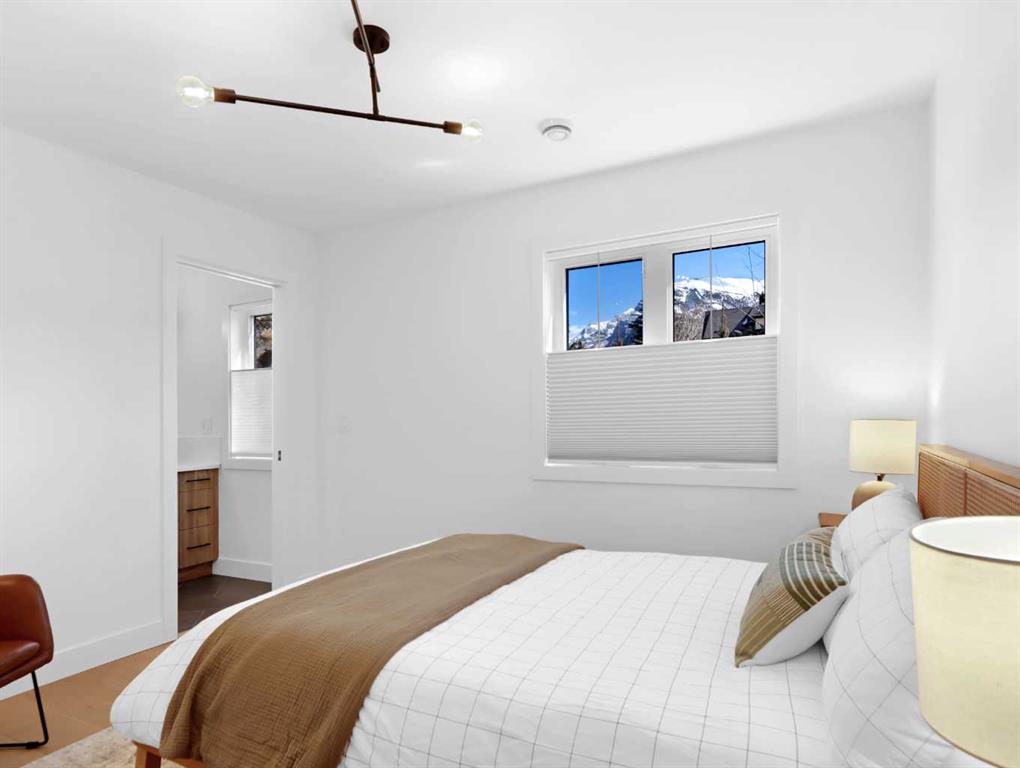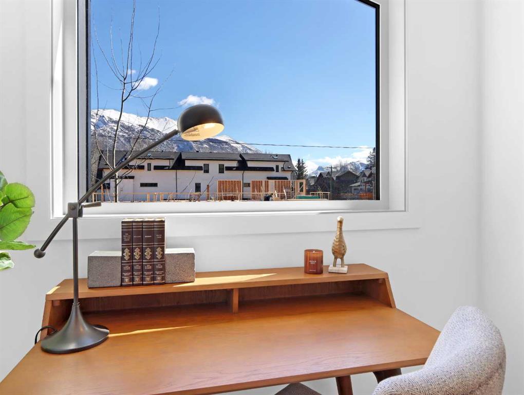 This stunning, never lived in 2,461 sq ft half duplex is a rare offering that blends luxury craftsmanship, thoughtful design, and breathtaking mountain views into one exceptional home. With 3 bedrooms, 4 baths, and an uncompromising level of finish throughout, this residence is purpose built for both elevated entertaining and peaceful everyday living. The main level welcomes you with an impressive open concept living space anchored by soaring vaulted ceilings and a dramatic wall of windows that frame the surrounding peaks. A true chef’s kitchen stands at the heart of the home, featuring premium appliances including two counter depth fridges and freezers, dual dishwashers, a sprawling island with custom organizers, and an abundance of workspace and storage. The dining area is designed for hosting, complemented by a warm, inviting electric fireplace and seamless access to the large view deck—perfect for morning coffee, evening cocktails, or simply soaking in the scenery. Also on the main level is a bright office nook with mountain views, a generous walk in pantry, and a stylish 2 piece powder room. Upstairs, the private primary retreat offers a serene escape with a spa inspired 5 piece ensuite, heated tile floors, and a spacious walk in closet complete with its own laundry. Every detail has been considered to maximize comfort and convenience. The ground level features a spacious and welcoming entry foyer leading to a well designed mud/gear room with built in cubbies and bench seating—ideal for mountain living. This level also includes a second laundry area with sink, two additional bedrooms (one with its own 3 piece ensuite), a separate 4 piece bath, and access to the epoxy finished double garage, all fully heated with in floor heat. The home’s mechanical systems are equally impressive, offering high efficiency performance with three independent thermostats—one for each floor—ensuring personalized comfort throughout. Additional highlights include: • Under tile heating in the primary ensuite • Rough in for EV charger • Low maintenance landscaping and exterior • No condo fees or bylaws • Exceptional natural light from oversized windows • Easy access to Canmore’s river pathways and a short walk to Main Street This home delivers the perfect blend of luxury, functionality, and low maintenance mountain living. Every finish, fixture, and design choice reflects quality and attention to detail. A truly exceptional opportunity in one of Canmore’s most desirable locations.