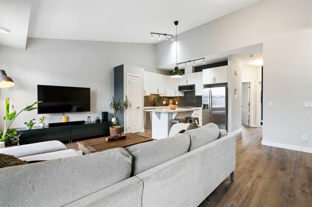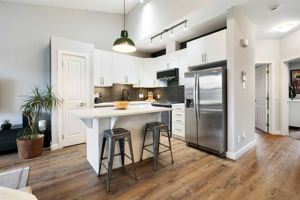 Welcome Home to The Link at Evanston! This well-maintained 2 bedroom townhome is perfect for first time buyers, empty nesters and students or anyone looking for the convenience of low maintenance living. The main living area is open concept with vaulted ceilings and light pallet making it bright and airy. The well-appointed kitchen comes complete with quartz counters, gas stove, pantry, and a nice sized island with breakfast bar. Off the living room is a balcony with BBQ gas line that overlooks the community courtyard. The additional outside storage closet is perfect for seasonal items. The primary bedroom has a nice sized walk-in closet. A 2nd bedroom and 4pc bath with in-suite laundry finishes off this functional home. There is a single attached garage with room for storage and an additional storage alcove on the lower level. Steps to Transit with 2 direct routes to the Northern Pointe Transit Terminal. Walking distance to the amenities of Evanston Towne Centre & the Shops of Carrington Centres. The area offers plenty of walking path, parks and skatepark. Easy access to Stoney Tr Ring Rd and 14 St NW.