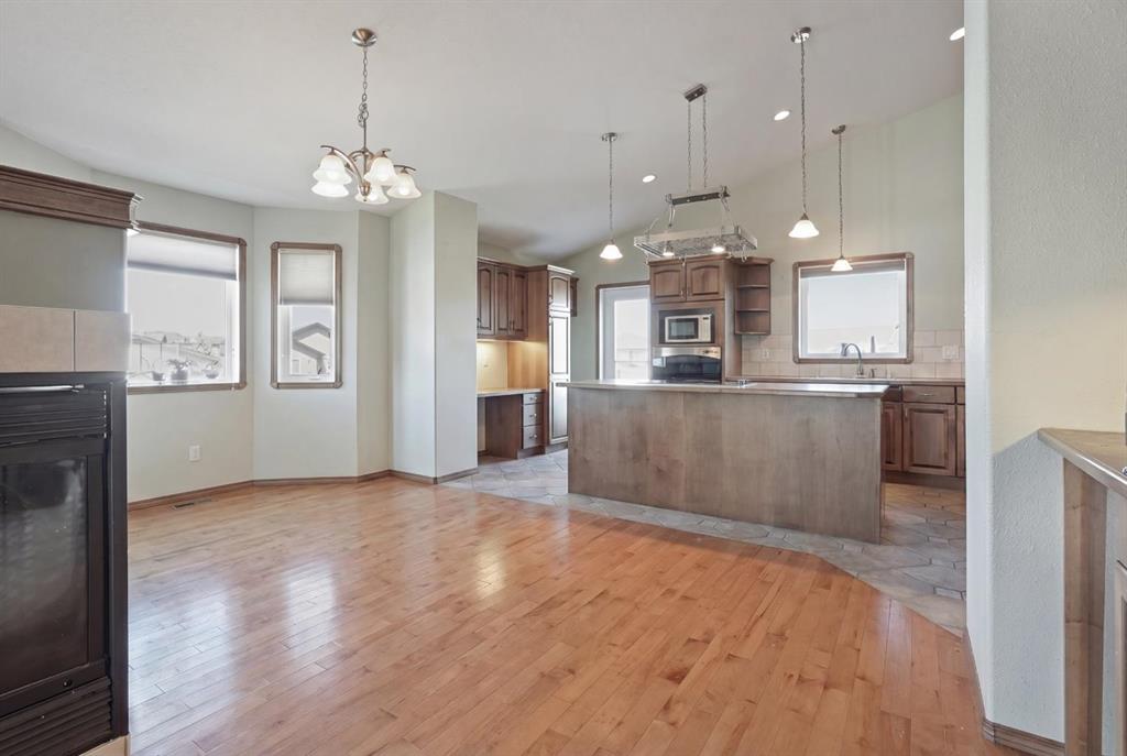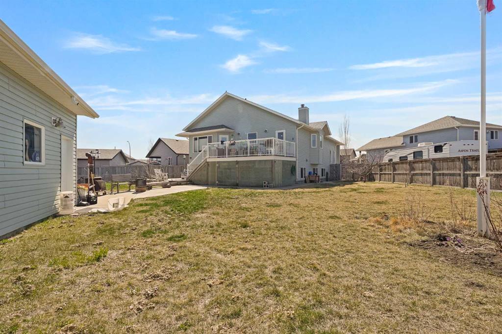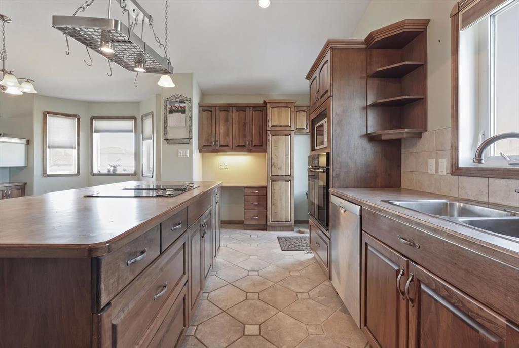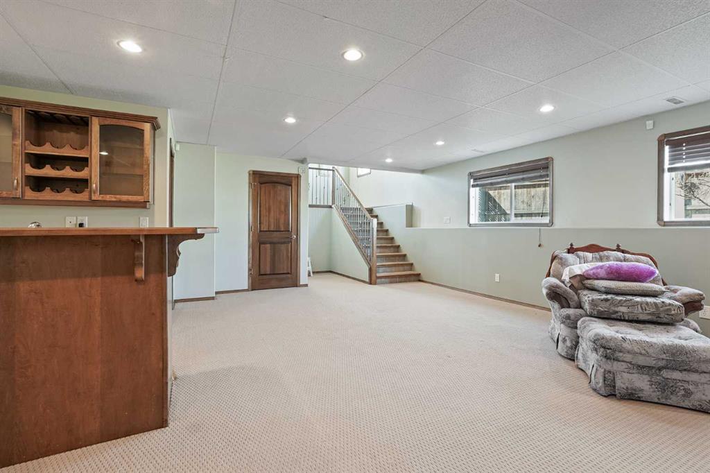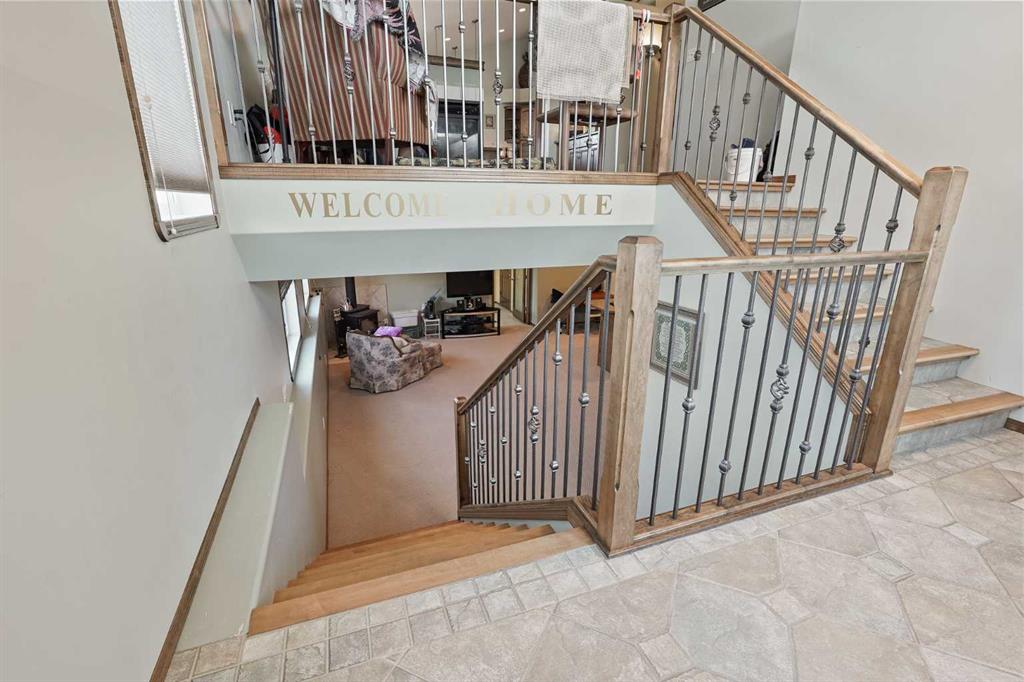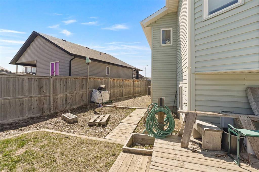 The one that checks every box — space, upgrades, and a shop you won’t find anywhere else. This beautifully designed 4-bedroom, 2.5-bath bi-level offers an impressive main floor with soaring 10+ ft ceilings, rich maple hardwood floors, and a warm, inviting living room complete with a gas fireplace and custom built-in bookshelves. The kitchen is both functional and stylish, featuring tile flooring, maple cabinetry, and seamless flow into the dining area, perfect for everyday living and entertaining. Step out onto the elevated deck and take in the view of your diamond-shaped lot, the largest yard in the neighbourhood, with the added bonus of an elementary school just one street over. The primary suite is a true retreat, offering private deck access, a walk-in closet, and a 4-piece ensuite. A spacious laundry room with sink, ample cabinetry, and direct access to the attached double garage adds everyday convenience. Downstairs, the bright and fully developed lower level features large windows, a generous family room with wet bar, and three additional bedrooms—ideal for family, guests, or a home office setup. With a separate entrance to the attached garage from the lower level, this layout offers flexibility and function. Outside is where this property truly shines. Enjoy the two-tiered deck with wiring ready for a hot tub, abundant storage underneath, and RV parking. And for those needing space for hobbies, toys, or a home-based business, the 30'x40' heated detached shop with two overhead doors is a rare and valuable find. Additional features include a tankless water heater, solid wood hemlock doors and thoughtful upgrades throughout. This is more than a home—it’s a lifestyle opportunity with space to live, work, and play.