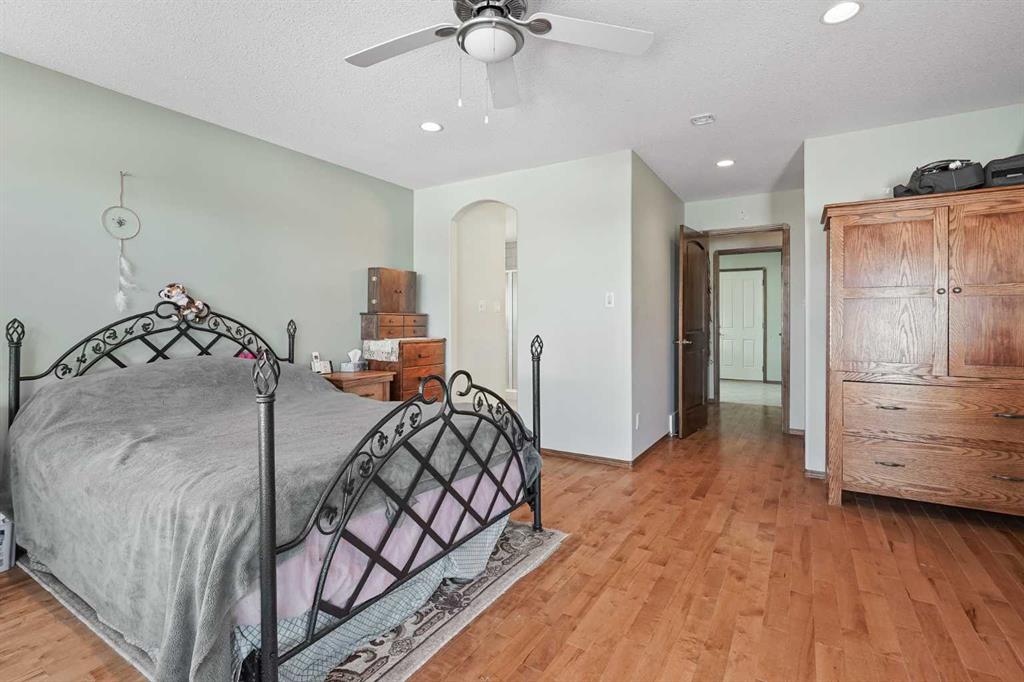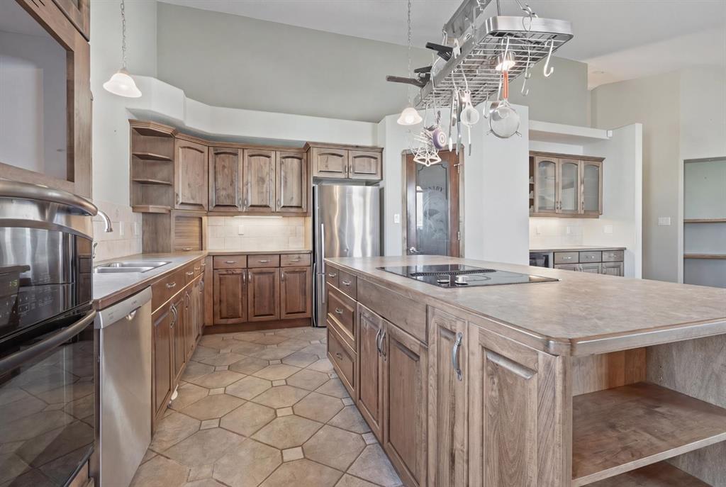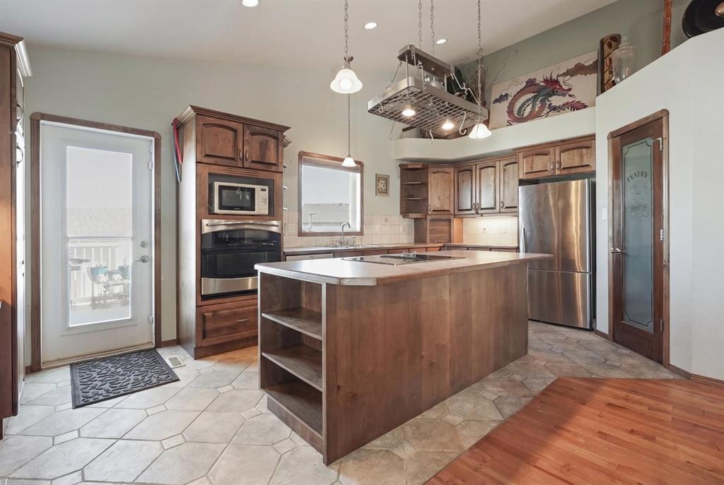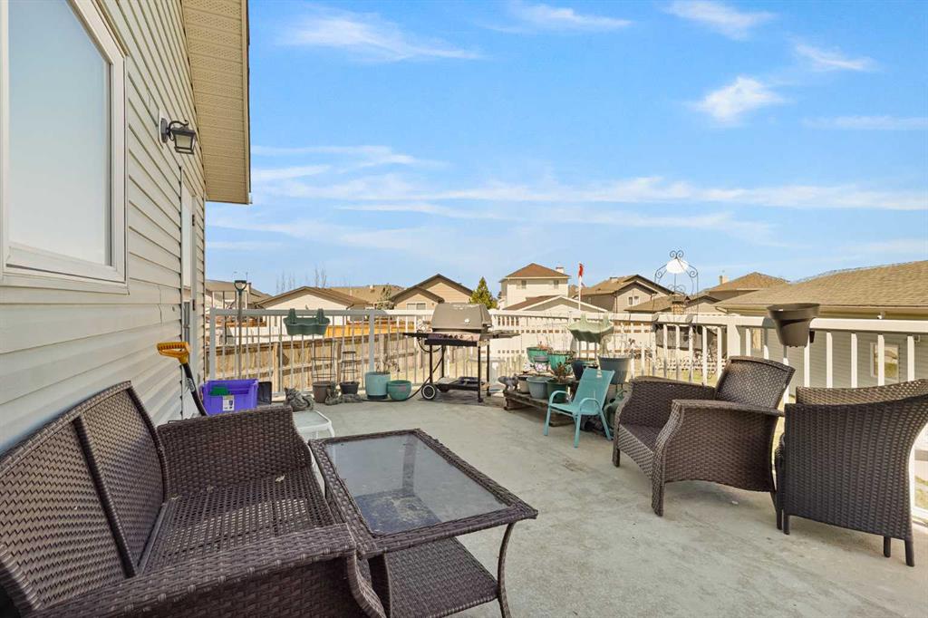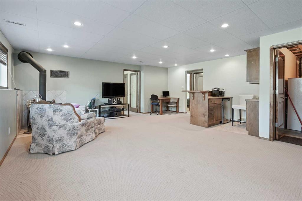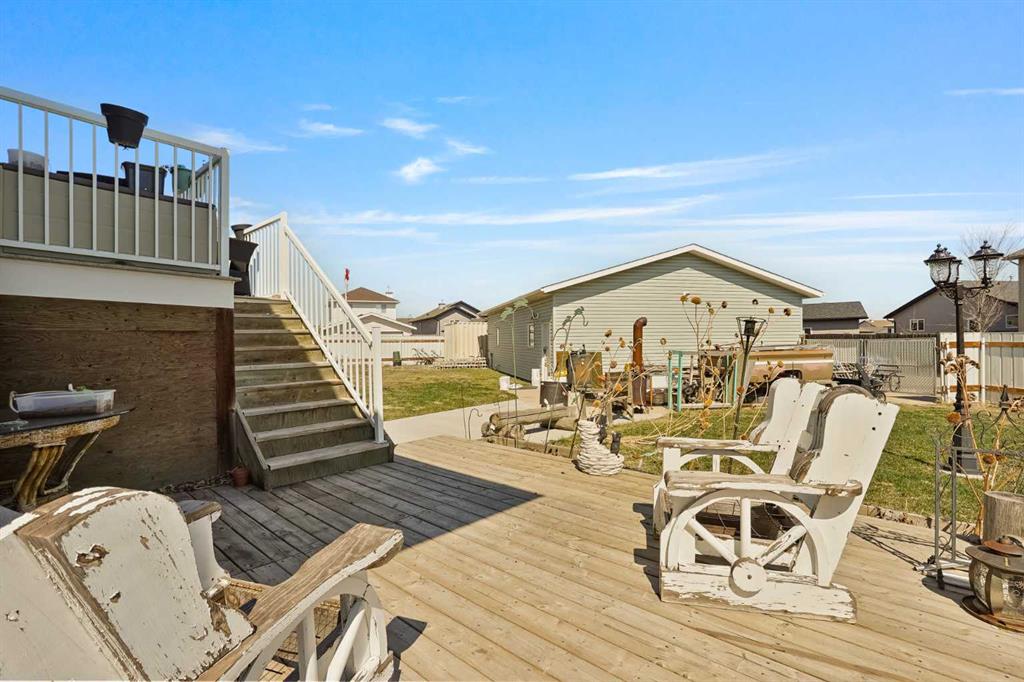 The one that checks every box — space, upgrades, and a shop you won’t find anywhere else. This beautifully designed 4-bedroom, 2.5-bath bi-level offers an impressive main floor with soaring 10+ ft ceilings, rich maple hardwood floors, and a warm, inviting living room complete with a gas fireplace and custom built-in bookshelves. The kitchen is both functional and stylish, featuring tile flooring, maple cabinetry, and seamless flow into the dining area, perfect for everyday living and entertaining. Step out onto the elevated deck and take in the view of your diamond-shaped lot, the largest yard in the neighbourhood, with the added bonus of an elementary school just one street over. The primary suite is a true retreat, offering private deck access, a walk-in closet, and a 4-piece ensuite. A spacious laundry room with sink, ample cabinetry, and direct access to the attached double garage adds everyday convenience. Downstairs, the bright and fully developed lower level features large windows, a generous family room with wet bar, and three additional bedrooms—ideal for family, guests, or a home office setup. With a separate entrance to the attached garage from the lower level, this layout offers flexibility and function. Outside is where this property truly shines. Enjoy the two-tiered deck with wiring ready for a hot tub, abundant storage underneath, and RV parking. And for those needing space for hobbies, toys, or a home-based business, the 30'x40' heated detached shop with two overhead doors is a rare and valuable find. Additional features include a tankless water heater, solid wood hemlock doors and thoughtful upgrades throughout. This is more than a home—it’s a lifestyle opportunity with space to live, work, and play.