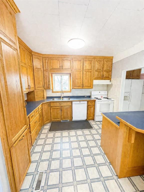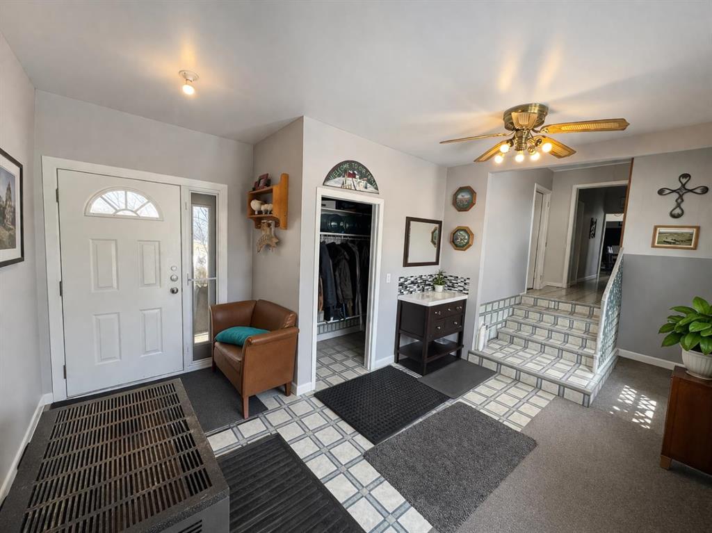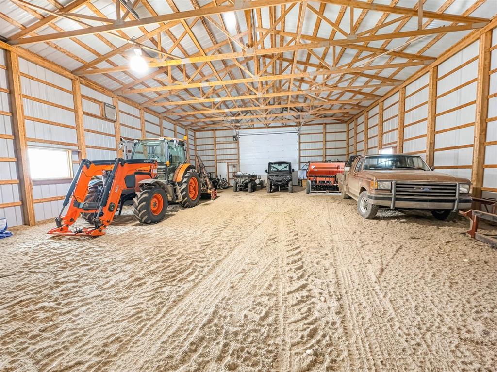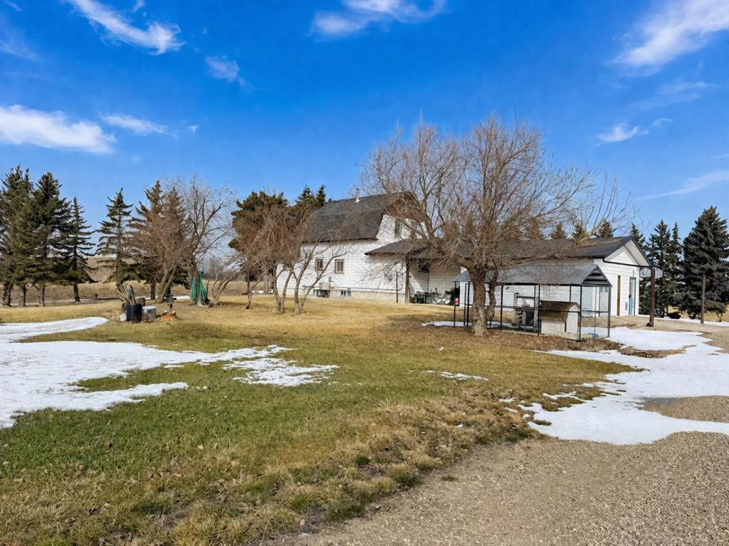 Check out this ranch-style home set on 10.08 acres, just minutes on pavement north of Chauvin, Alberta! Offering an abundance of natural light and privacy, this property is perfectly suited for growing families, hobby farmers, outdoor enthusiasts, or small business owners requiring shop and yard space. Both the main and upper floors feature 9-foot ceilings, creating an open and airy feel throughout. The main floor offers a full 4-piece bathroom, along with an updated kitchen complete with an eat-up peninsula and a spacious pantry room for all your storage needs. Just off the kitchen, you’ll find a convenient nook—ideal for a home office or study space. The primary bedroom is located on the main floor and includes a 2-piece ensuite. A functional mudroom with additional storage connects the entryway to the attached single-car garage. Upstairs, you’ll find four additional bedrooms, offering flexibility for growing families, larger room configurations, or additional office space. The partially framed 880 sq. ft. basement includes rough-ins for a future bathroom, ample storage, and excellent potential for development into a rec room, family area, or additional bedrooms. A new septic system was installed in the fall of 2025, adding peace of mind for years to come. Outside, the property continues to impress with a 20x40 heated shop and a 40x60 cold storage shop with power, plus gas run to the building for future heating if desired. RV hookups are conveniently located by both the home and the shop. The yard is beautifully landscaped with mature trees , 3 apple trees and features a large garden space—perfect for those looking to embrace country living. With central air conditioning and a well-designed layout, this property offers the perfect blend of rural charm, functionality, and modern comfort within a close proximity to town!