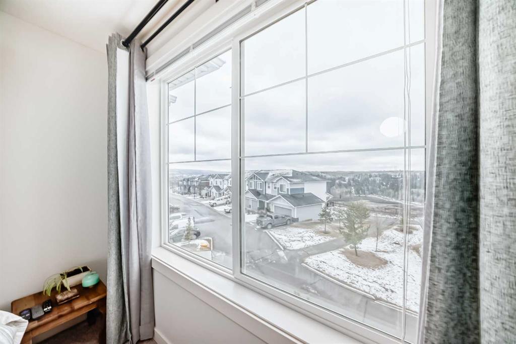 Visit REALTOR® website for additional information. Ravine Living at Its Finest! Sun-Filled Home with Park Views, Upgrades & Bonus Flex Space. Move in ready! Welcome to Jumping Pound Ridge, one of Cochrane’s most sought-after communities, where nature and modern living come together beautifully. Perfectly positioned just steps from the Bow River pathway system, this exceptional home offers breathtaking ravine and park views that truly set it apart.From the moment you step inside, you’ll appreciate the bright, sun-filled open-concept design, thoughtfully laid out for both comfort and style. The main living space flows seamlessly, featuring a contemporary kitchen with quartz countertops, custom cabinetry, a central island with undermount sink, and direct access through sliding patio doors to your fully fenced and landscaped yard—perfect for relaxing or entertaining. Upstairs, the spacious primary bedroom showcases sweeping south-facing views over the ravine and park, creating a peaceful retreat you’ll love waking up to. Two generously sized bedrooms, convenient upper-floor laundry (washer and dryer included), and a beautifully designed layout make everyday living effortless. A brand-new Murphy bed adds flexibility and function, ideal for guests or a home office setup, while new exclusive lighting and a stylish ceiling fan elevate the home’s modern appeal. The main floor guest bathroom adds extra convenience, eliminating the need to run upstairs. Downstairs, the oversized single garage offers more than just parking—an additional 10’ x 15’ bonus space provides endless possibilities for a workshop, hobby room, or home office, and is already wired for 220V. With low condo fees and a well-managed complex, this home checks all the boxes—style, functionality, and an unbeatable location surrounded by nature. This is more than a home—it’s a lifestyle..
