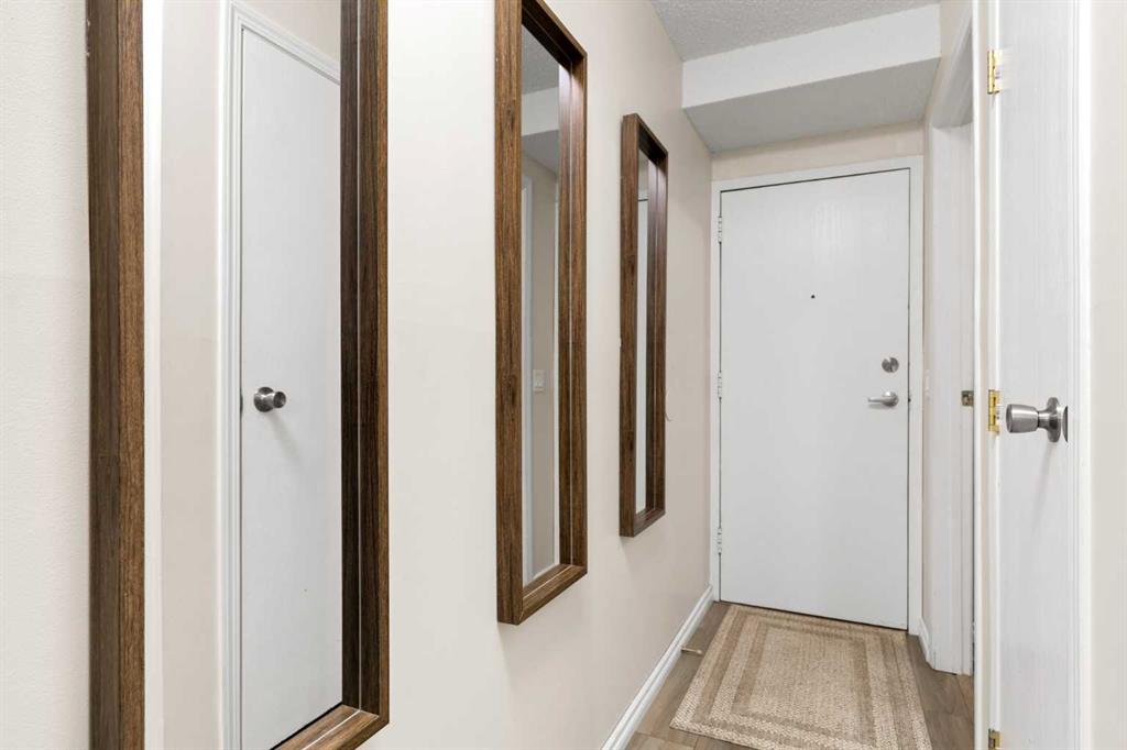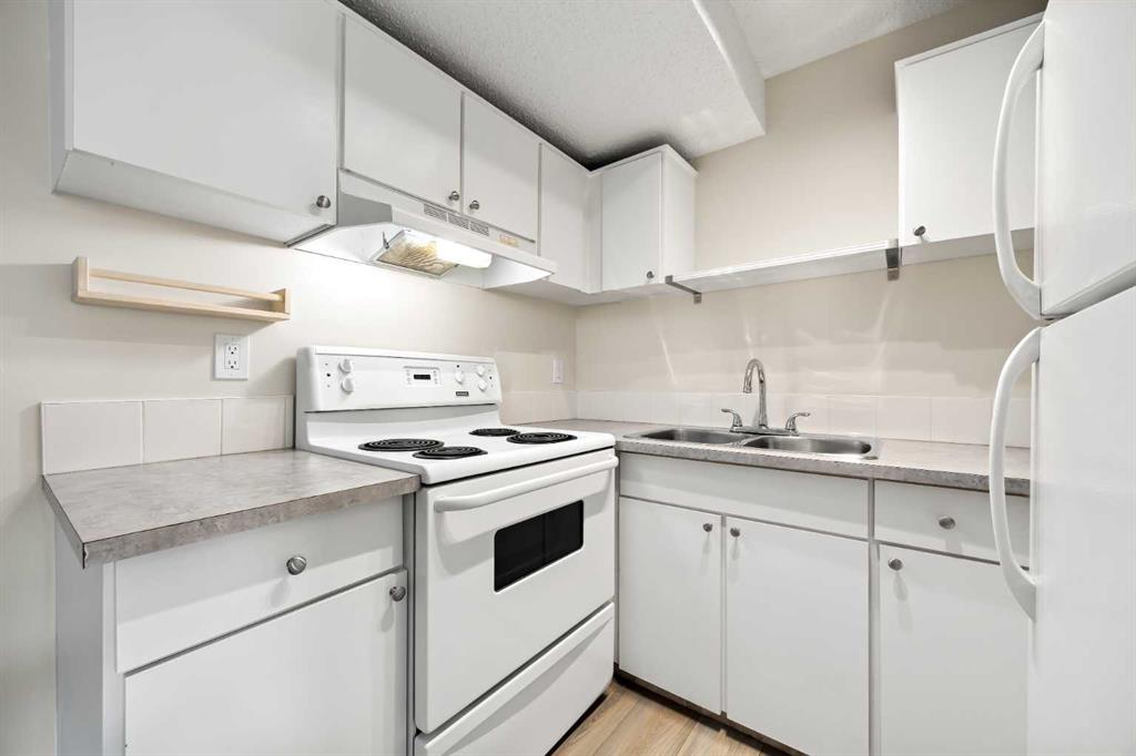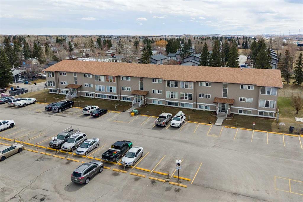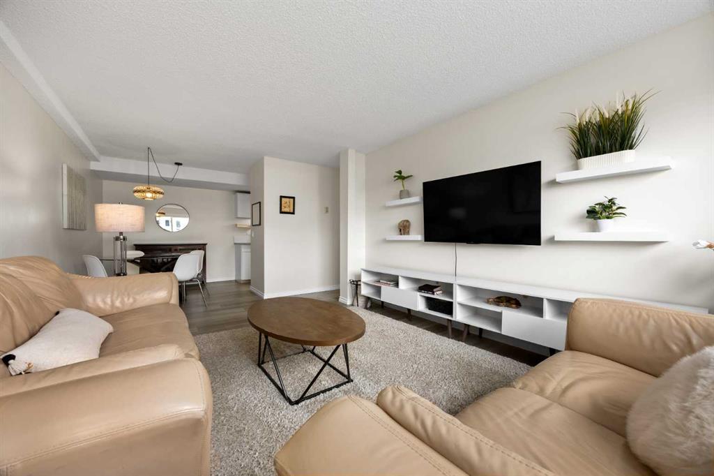 This updated 1-bedroom plus den, 1-bathroom apartment at 101 Big Hill Way offers a move-in-ready opportunity for homeowners or investors. The unit was refreshed in 2023 with new laminate flooring, lighting, fresh paint, and updated kitchen countertops and backsplash. The functional layout features a dedicated dining area, a flex/office/storage space at the entry, and a spacious primary bedroom that easily accommodates king-sized furniture. Enjoy natural cooling year-round thanks to the north-facing position. This pet-friendly home includes a parking stall directly outside the main door and ample visitor parking. Located in Big Springs, you are steps from walking paths and green spaces, and within 5 minutes of Genesis Place recreation centre, No Frills, local cafes, and the West Airdrie overpass. Schools, including Bert Church High and R.J. Hawkey Elementary, are within easy walking distance.