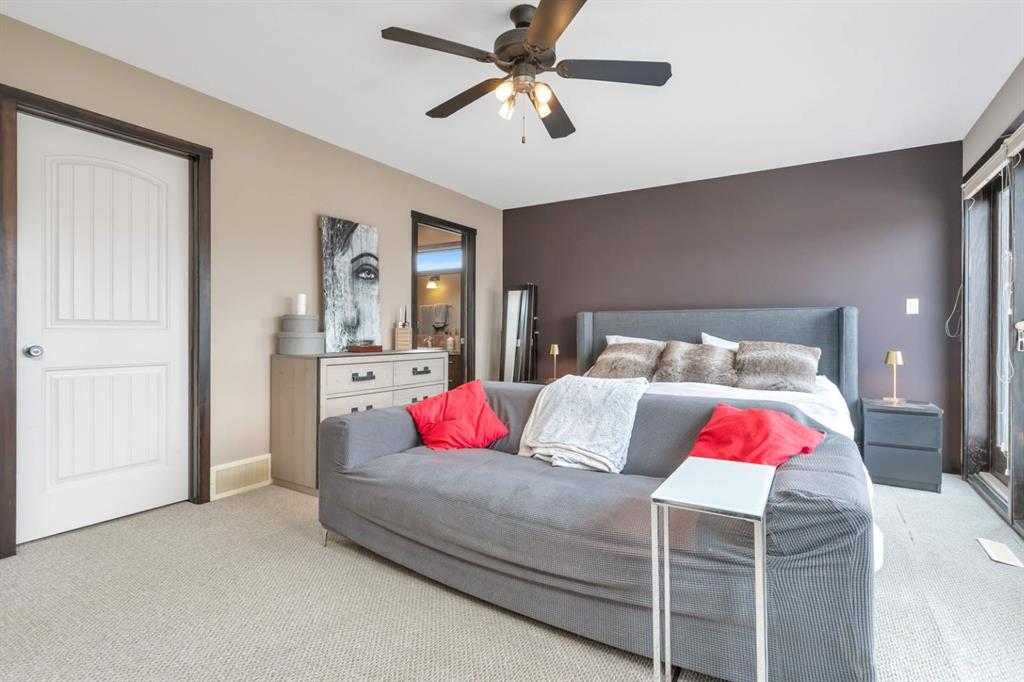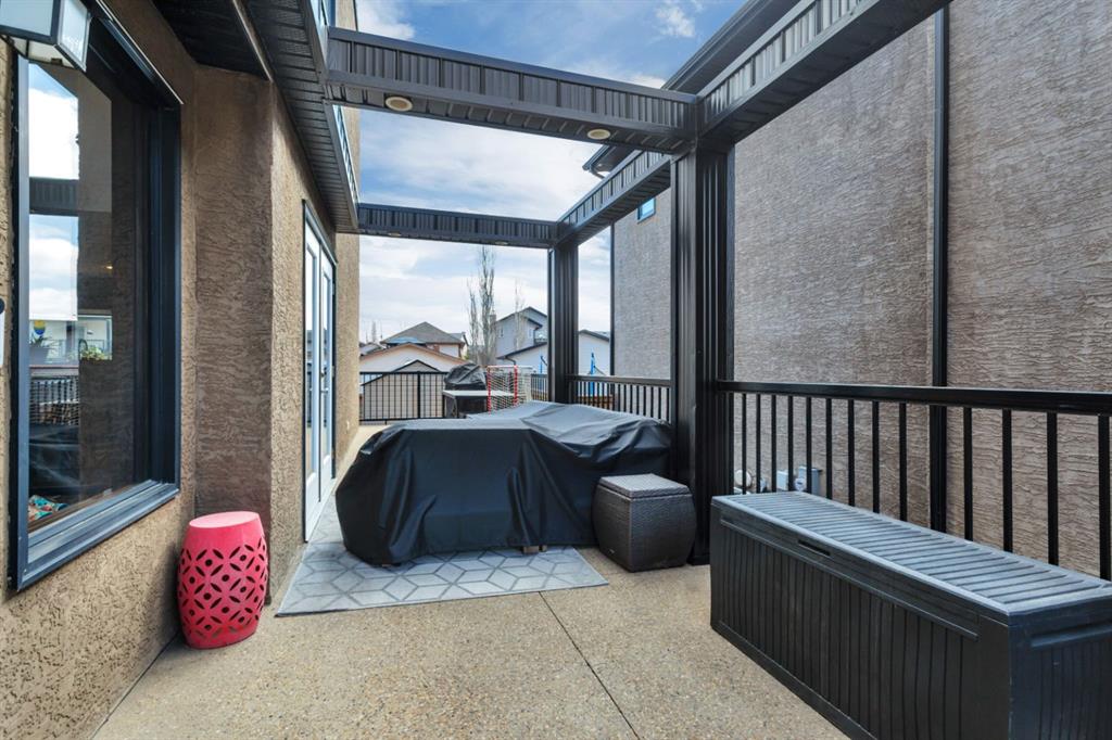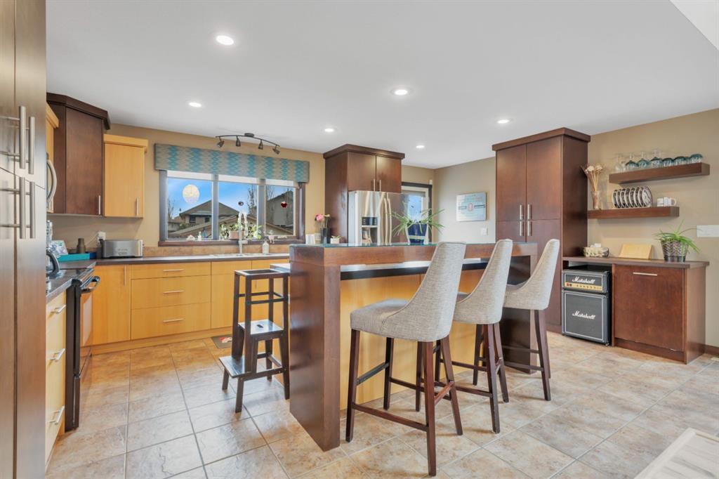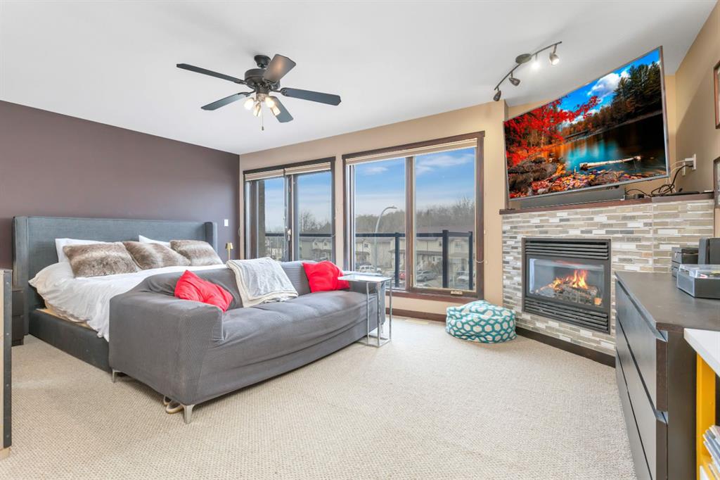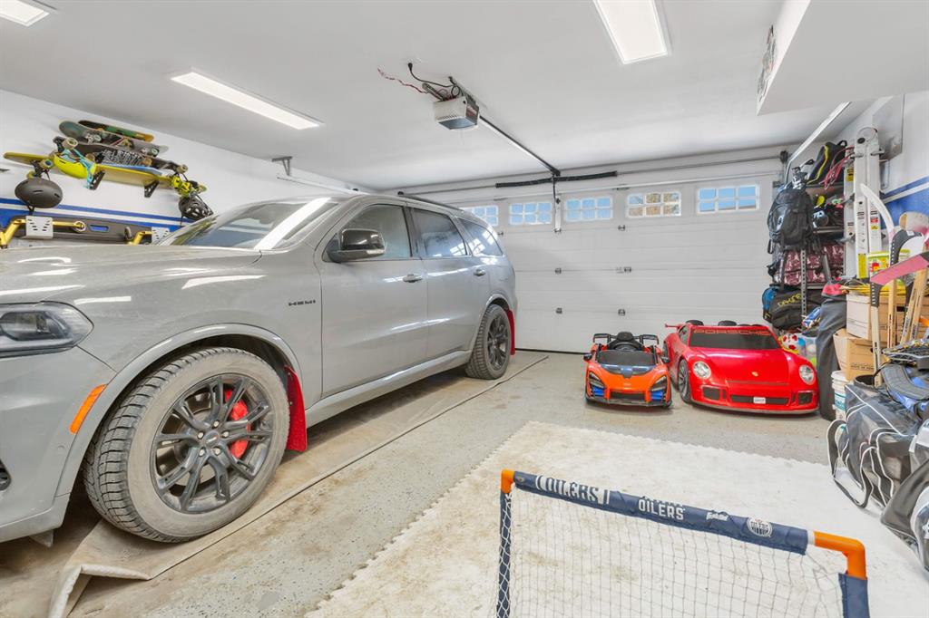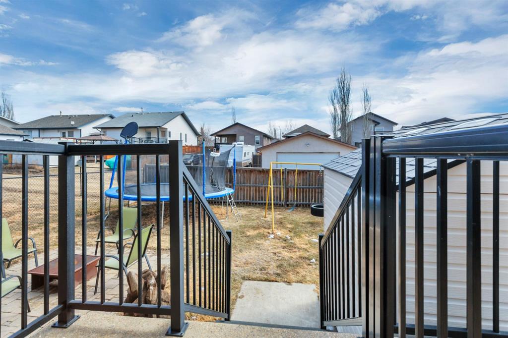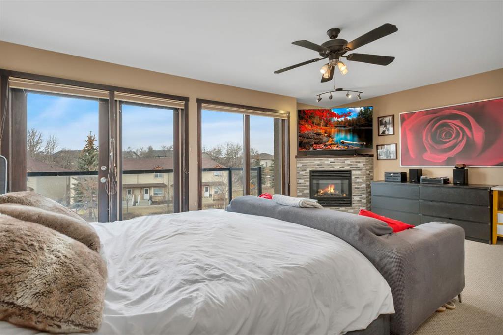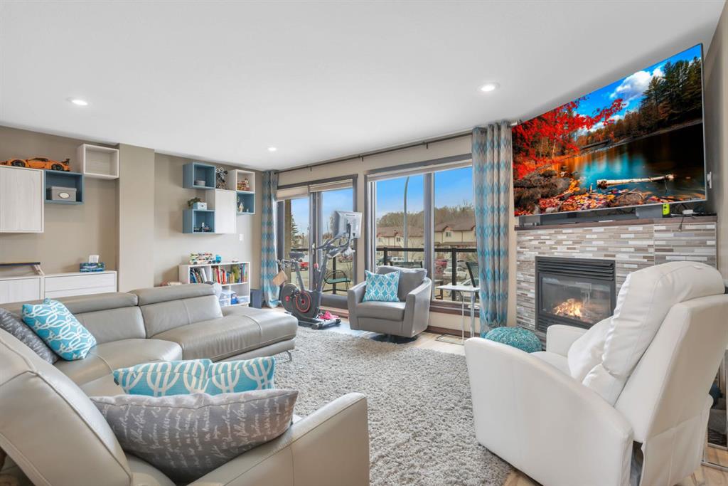 Welcome to this beautifully designed, fully finished two-storey home with an attached double garage. Thoughtfully located within walking distance to The Abbey Centre, walking paths, the library as well as both middle and high schools. Step into a bright and airy main floor where soaring vaulted ceilings and windows all around, create an inviting, open home flooded with natural light. The west-facing living room is warm and welcoming, featuring a gas fireplace and access to an open balcony with views of the nearby pond, green space, and walking trails. The kitchen is very spacious and equipped with stainless steel appliances, a large island with raised eating bar, a built-in wine rack, and easy access to the fully fenced backyard— with plenty of green space for the kids to play or the dog to run. Ideal for indoor-outdoor living are patio doors off the kitchen dining out to a spacious deck, making this home the go to for summer BBQing and hosting. Or relax with the AC going on those hot Alberta days! Upstairs, the primary bedroom offers a true retreat with a gas fireplace, walk-in closet, its own private balcony, and a luxurious 4-piece ensuite complete with a jetted tub. A second very generously sized bedroom and full bathroom are located just down the hall. The fully developed lower level with in-floor heat adds even more versatility, featuring a laundry area and a third bedroom or flex space with its own 3-piece bathroom across the hall. Direct entry to the heated double garage makes for easy, dry trips bringing in the groceries. Additionally the garage floor has been epoxied for added durability and easy cleaning. This beautiful home has been well cared for and is ready for a new family to grow and make memories!