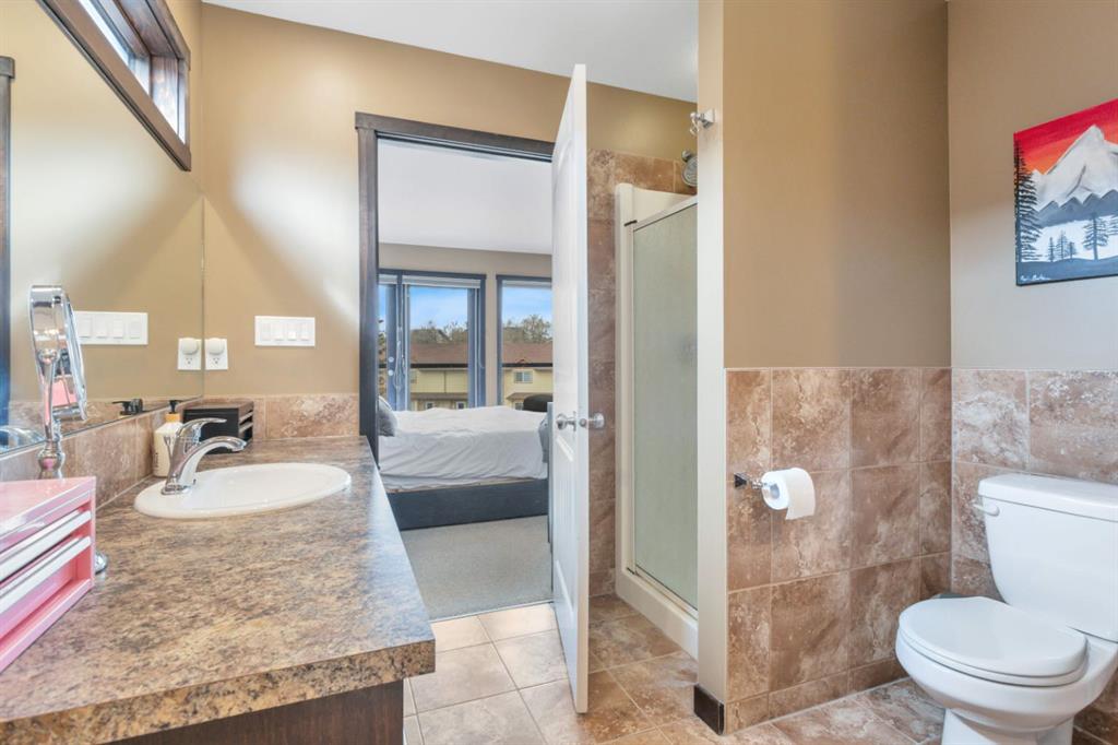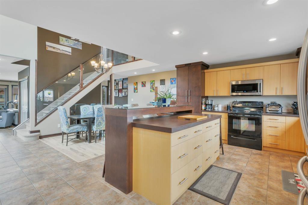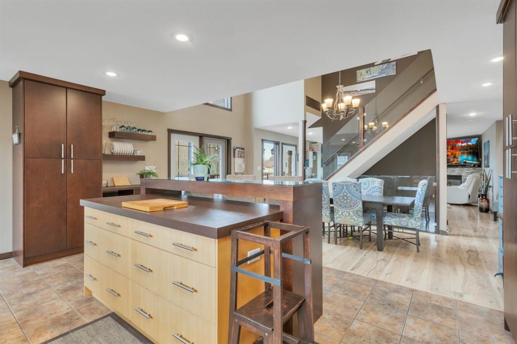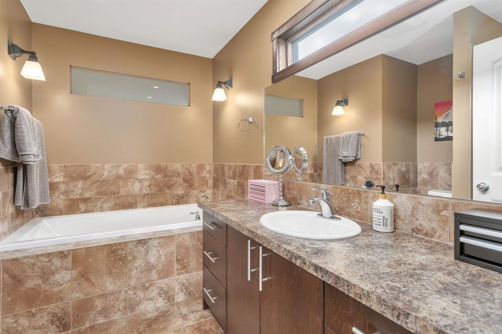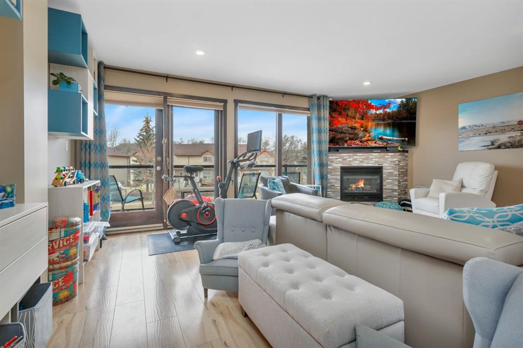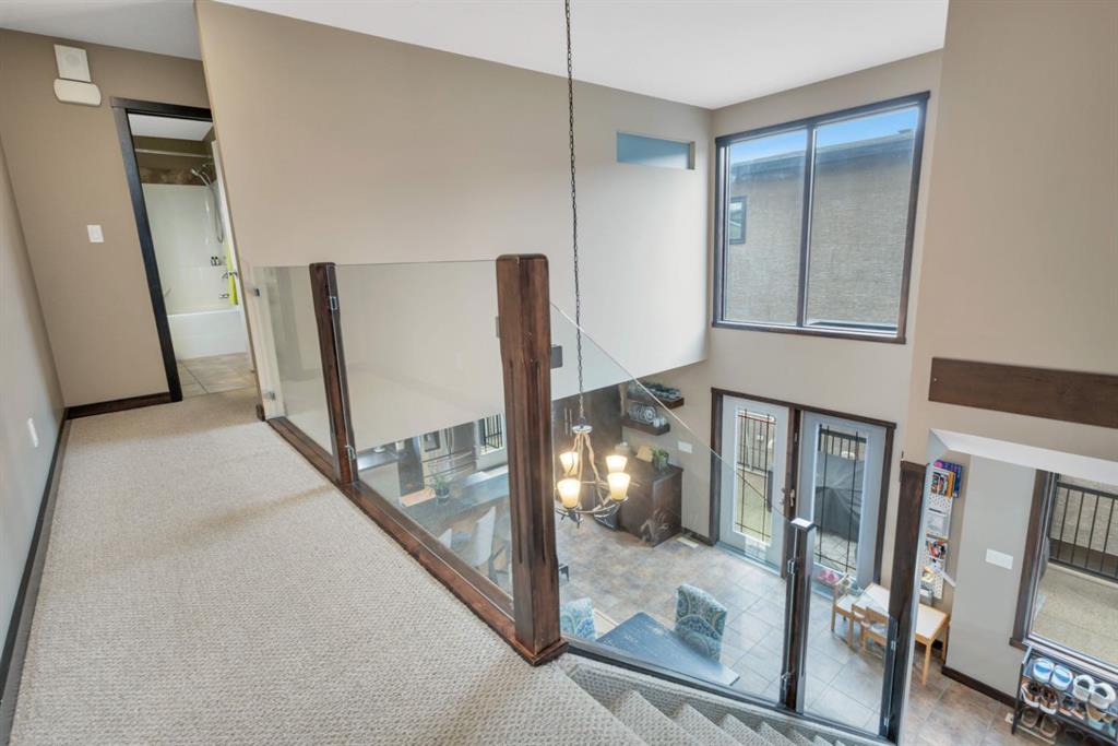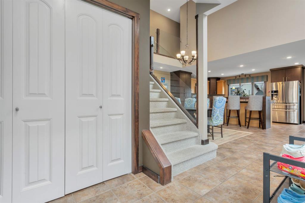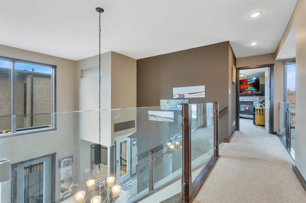 Welcome to this beautifully designed, fully finished two-storey home with an attached double garage. Thoughtfully located within walking distance to The Abbey Centre, walking paths, the library as well as both middle and high schools. Step into a bright and airy main floor where soaring vaulted ceilings and windows all around, create an inviting, open home flooded with natural light. The west-facing living room is warm and welcoming, featuring a gas fireplace and access to an open balcony with views of the nearby pond, green space, and walking trails. The kitchen is very spacious and equipped with stainless steel appliances, a large island with raised eating bar, a built-in wine rack, and easy access to the fully fenced backyard— with plenty of green space for the kids to play or the dog to run. Ideal for indoor-outdoor living are patio doors off the kitchen dining out to a spacious deck, making this home the go to for summer BBQing and hosting. Or relax with the AC going on those hot Alberta days! Upstairs, the primary bedroom offers a true retreat with a gas fireplace, walk-in closet, its own private balcony, and a luxurious 4-piece ensuite complete with a jetted tub. A second very generously sized bedroom and full bathroom are located just down the hall. The fully developed lower level with in-floor heat adds even more versatility, featuring a laundry area and a third bedroom or flex space with its own 3-piece bathroom across the hall. Direct entry to the heated double garage makes for easy, dry trips bringing in the groceries. Additionally the garage floor has been epoxied for added durability and easy cleaning. This beautiful home has been well cared for and is ready for a new family to grow and make memories!