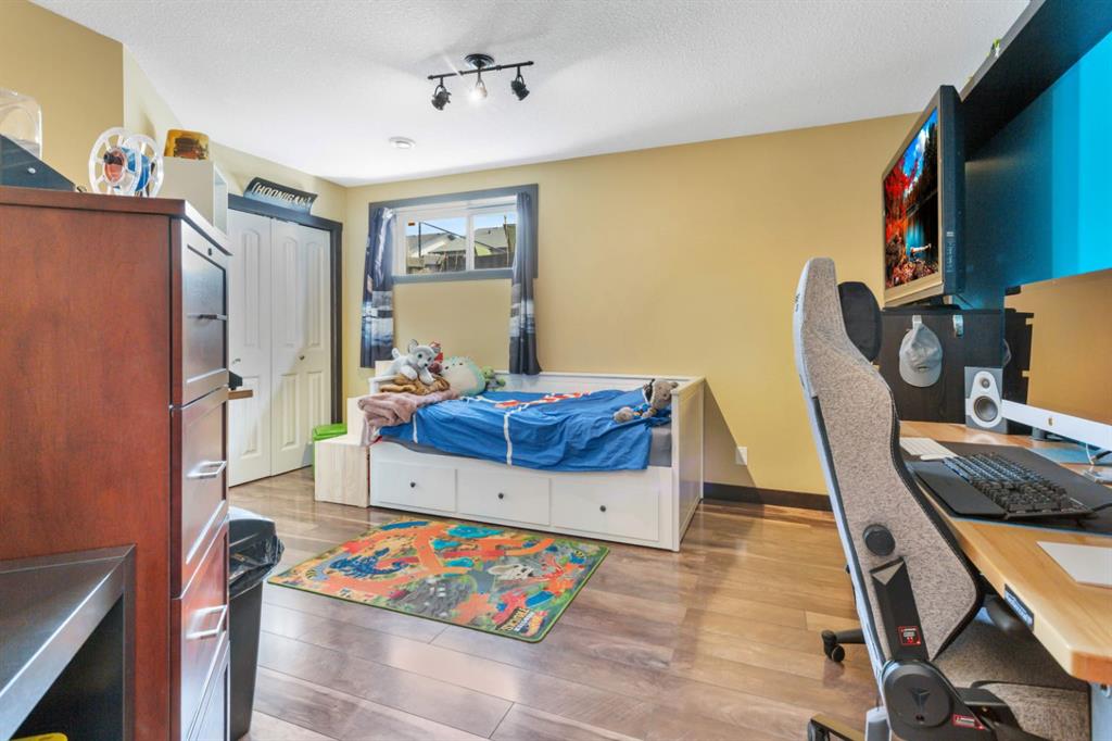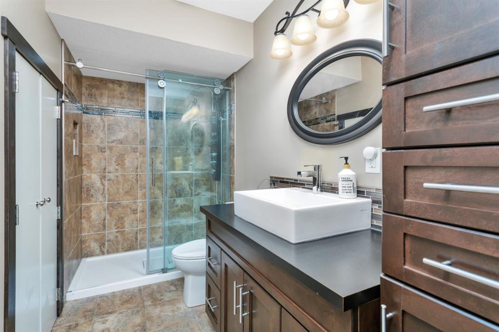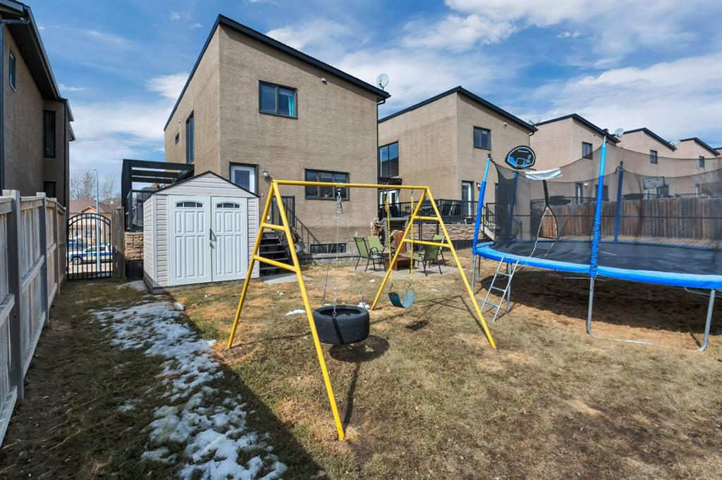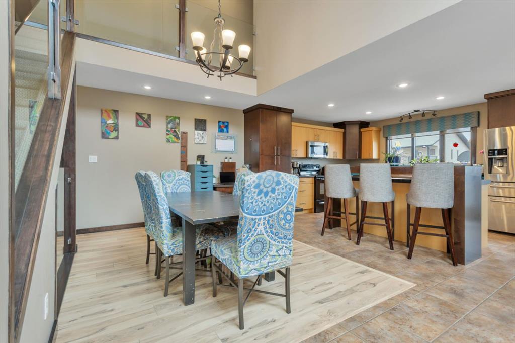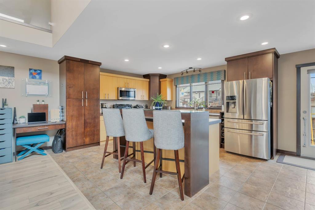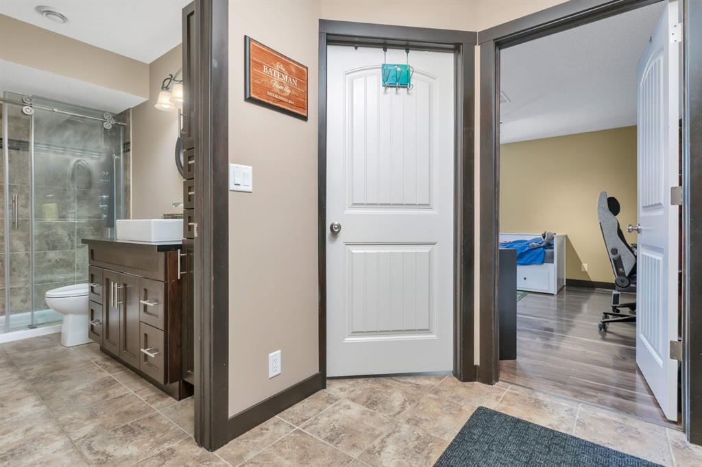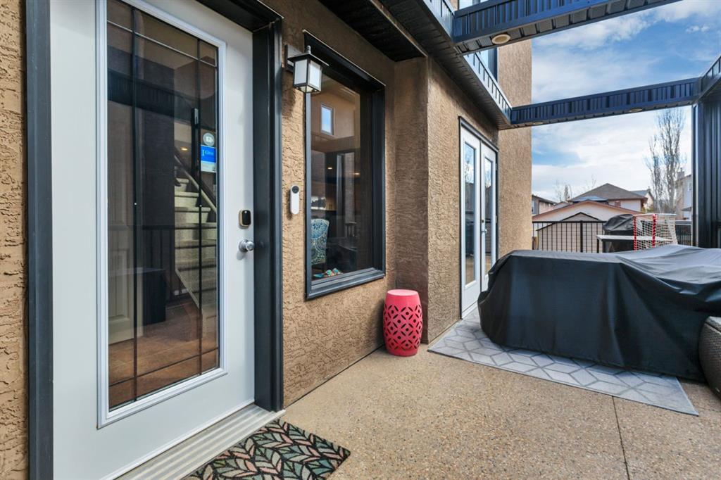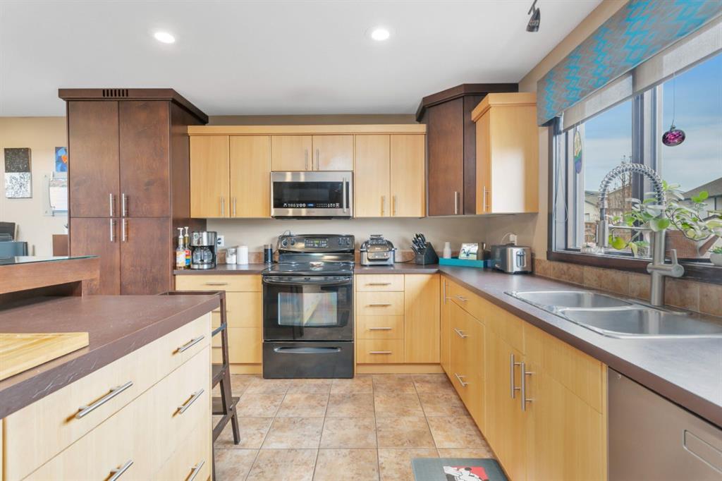 Welcome to this beautifully designed, fully finished two-storey home with an attached double garage. Thoughtfully located within walking distance to The Abbey Centre, walking paths, the library as well as both middle and high schools. Step into a bright and airy main floor where soaring vaulted ceilings and windows all around, create an inviting, open home flooded with natural light. The west-facing living room is warm and welcoming, featuring a gas fireplace and access to an open balcony with views of the nearby pond, green space, and walking trails. The kitchen is very spacious and equipped with stainless steel appliances, a large island with raised eating bar, a built-in wine rack, and easy access to the fully fenced backyard— with plenty of green space for the kids to play or the dog to run. Ideal for indoor-outdoor living are patio doors off the kitchen dining out to a spacious deck, making this home the go to for summer BBQing and hosting. Or relax with the AC going on those hot Alberta days! Upstairs, the primary bedroom offers a true retreat with a gas fireplace, walk-in closet, its own private balcony, and a luxurious 4-piece ensuite complete with a jetted tub. A second very generously sized bedroom and full bathroom are located just down the hall. The fully developed lower level with in-floor heat adds even more versatility, featuring a laundry area and a third bedroom or flex space with its own 3-piece bathroom across the hall. Direct entry to the heated double garage makes for easy, dry trips bringing in the groceries. Additionally the garage floor has been epoxied for added durability and easy cleaning. This beautiful home has been well cared for and is ready for a new family to grow and make memories!
