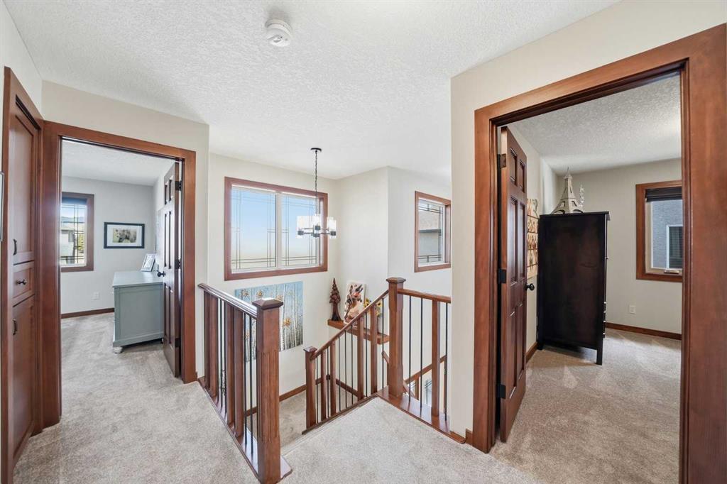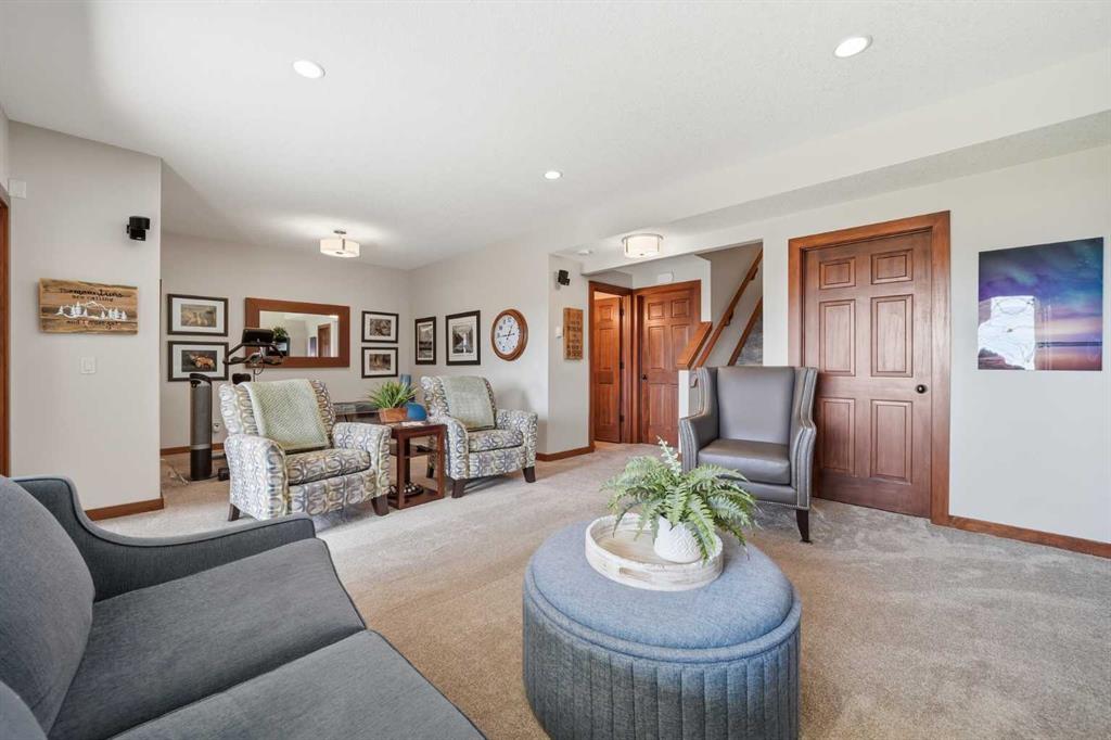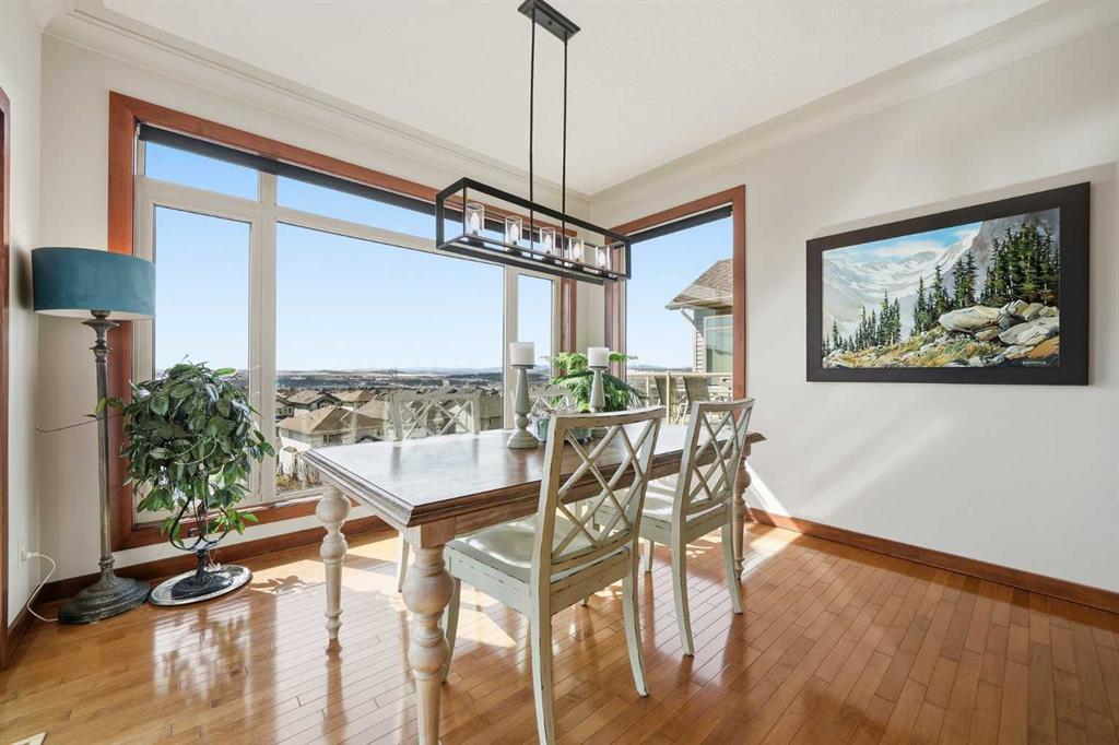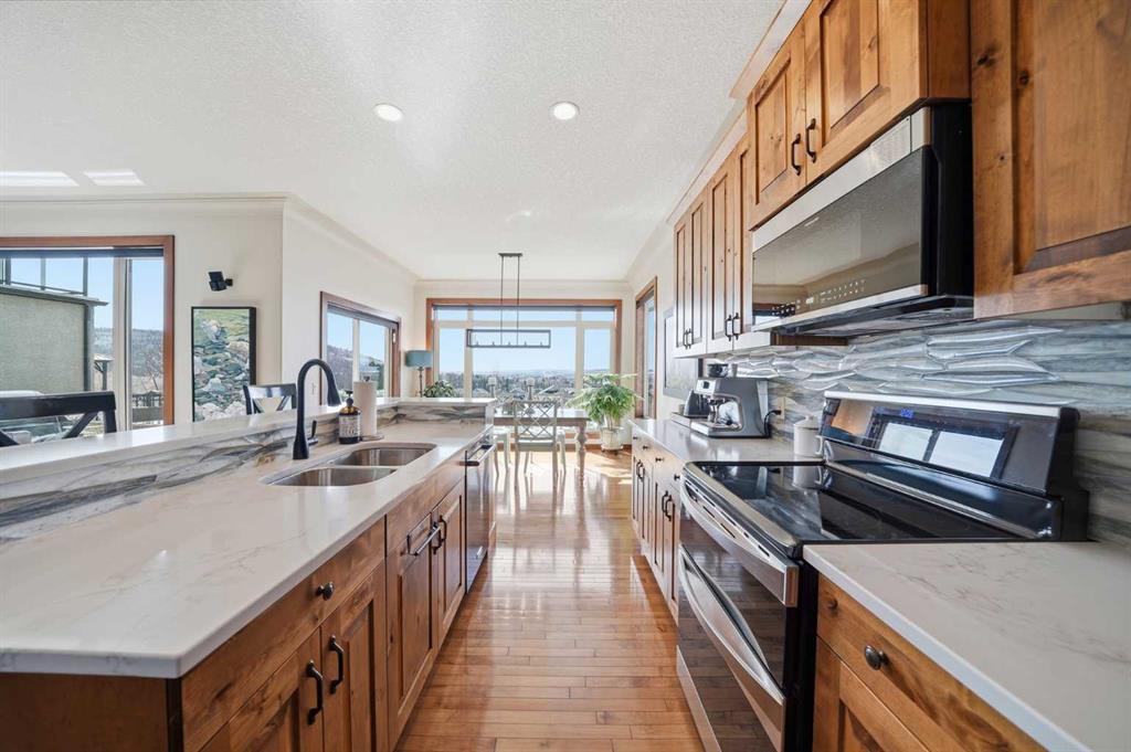 INCREDIBLE MOUNTAIN VIEWS! The coveted ridge location of 185 Sunset Circle will truly take your breath away, offering a daily panorama of the Rockies across all three levels of this exceptional 4 bedroom/3.5 bathroom WALKOUT home. Backing directly onto a walking path leading to Cochrane’s expansive trail system, this fully finished and AIR CONDITIONED two-storey residence sits on a QUIET, LOW TRAFFIC STREET just around the corner from a playground and with all levels of schools nearby. Immaculately clean and move-in ready - just bring your suitcases! The pride of ownership is evident in all of the upgrades and renovations, including FULLY PAID SOLAR PANELS that significantly reduce utility bills, TWO NEW HOT WATER TANKS installed in 2022, and PREMIUM SMART BLINDS with dual blackout and solar shades. Every detail has been meticulously updated, from the FRESH PAINT and NEW PREMIUM CARPETING to the replacement of every light fixture. The build quality is evident in the solid wood doors, refinished trim and banisters, and wood shelving in all the closets and pantry. With an open plan concept, the main floor offers 9-foot ceilings and beautiful HARDWOOD with inlay detailing, leading to a large KITCHEN RECENTLY RENOVATED with elegant QUARTZ COUNTERTOPS, a new tile backsplash, premium appliances including a double oven, a new KitchenAid dishwasher, and custom drawer pull-outs. Relax on the deck overlooking the backyard, BBQ and enjoy the mountain views and frequent wildlife sightings. There is also an awning for shelter on hot days! Completing the main floor is a laundry room/mud room with a utility sink and powder room - also renovated to match the kitchen. Upstairs, the primary retreat remains a standout, strategically positioned to capture the mountain view, complete with a spa-like ensuite and walk-in closet. Completing the upper level are two generously sized additional bedrooms. The bright walkout level features IN FLOOR HEATING, a fourth bedroom, family room, a storage/hobby room, and a radon mitigation system for total peace of mind. Outside, the professionally landscaped backyard with NEWLY INSTALLED TURF, connects you directly to recreation along the ravine pathways. Enjoy your private backyard space by the fire pit or barbecuing with friends on the patio. The cherry on top of this remarkable property is the FULLY INSULATED, HEATED, OVERSIZED GARAGE! This is truly a once in a lifetime home offering a laid-back Cochrane lifestyle with MILLION DOLLAR VIEWS for only $889,900. Call your Realtor for a private viewing!
