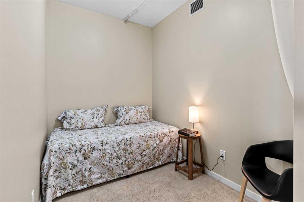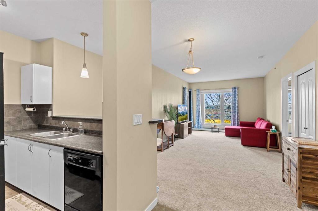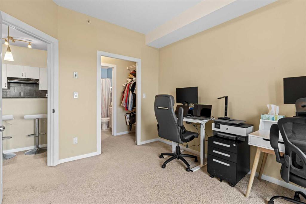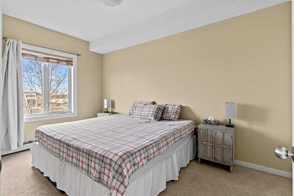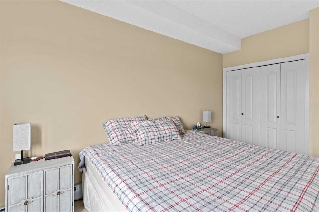 Top-floor 2 Bedroom + Den condo with 2 full bathrooms, heated underground parking, and west-facing mountain views. Enjoy a bright, open layout filled with natural light, large windows, and a private balcony surrounded by mature trees for added privacy. Sunlight pours through the west-facing windows, highlighting an open floor plan designed for comfort and everyday living. The kitchen anchors the space with a large eating bar — perfect for morning coffee or casual evenings with friends — flowing seamlessly into the inviting living area. Step out onto your private balcony and take in the unobstructed mountain views — your own peaceful escape at the end of the day. This home offers a versatile den ideal for a home office or guest room, along with two spacious bedrooms. The primary suite features a walk-through closet and private ensuite, while in-suite laundry adds everyday convenience. Additional highlights include titled heated underground parking, bike storage, a welcoming lobby, and ample visitor parking. Located steps from the Genesis Centre and East Lake, with easy access to shopping, dining, schools, transit, and Highway 2.