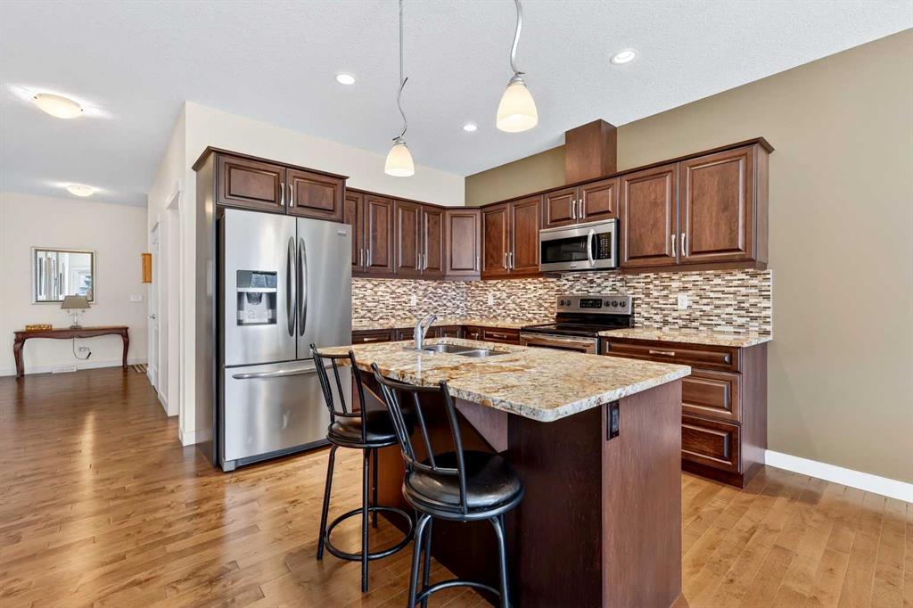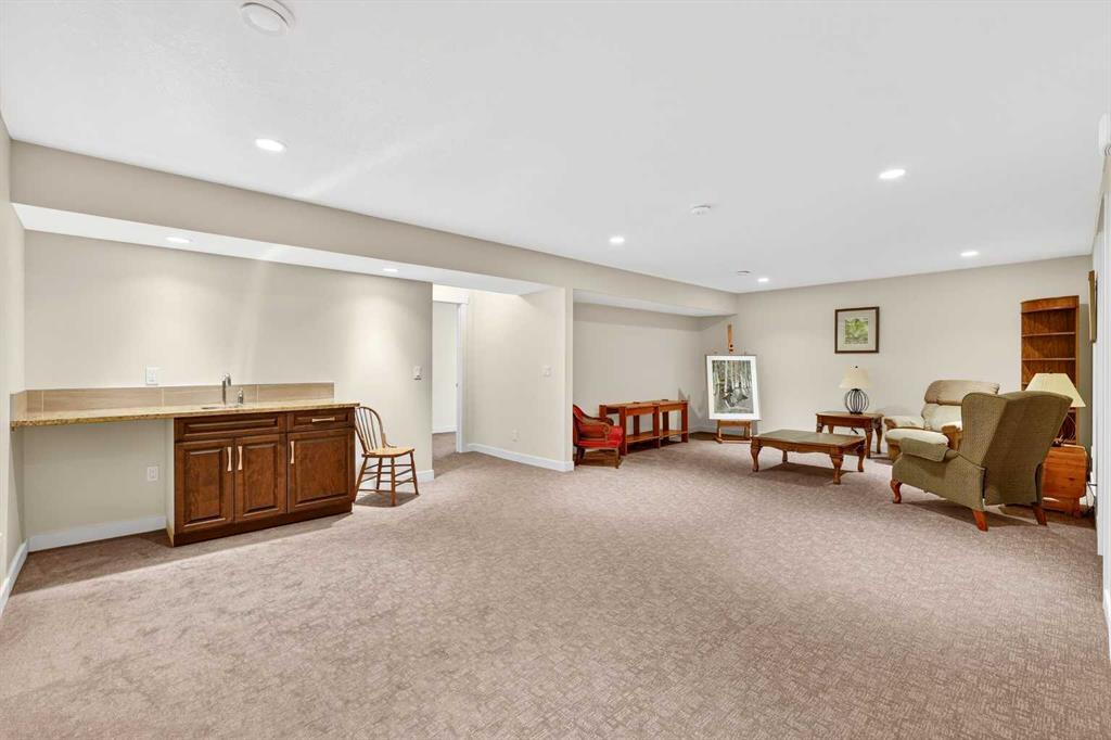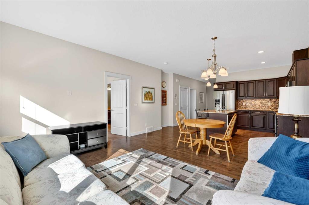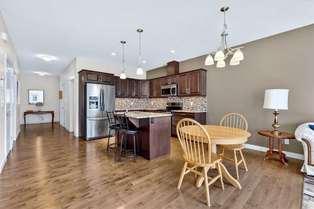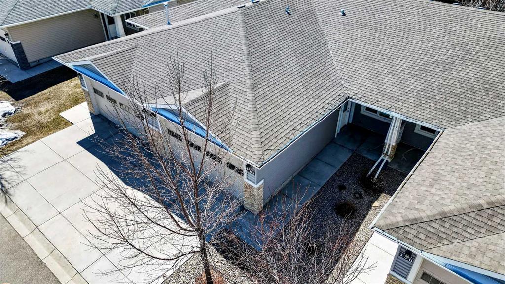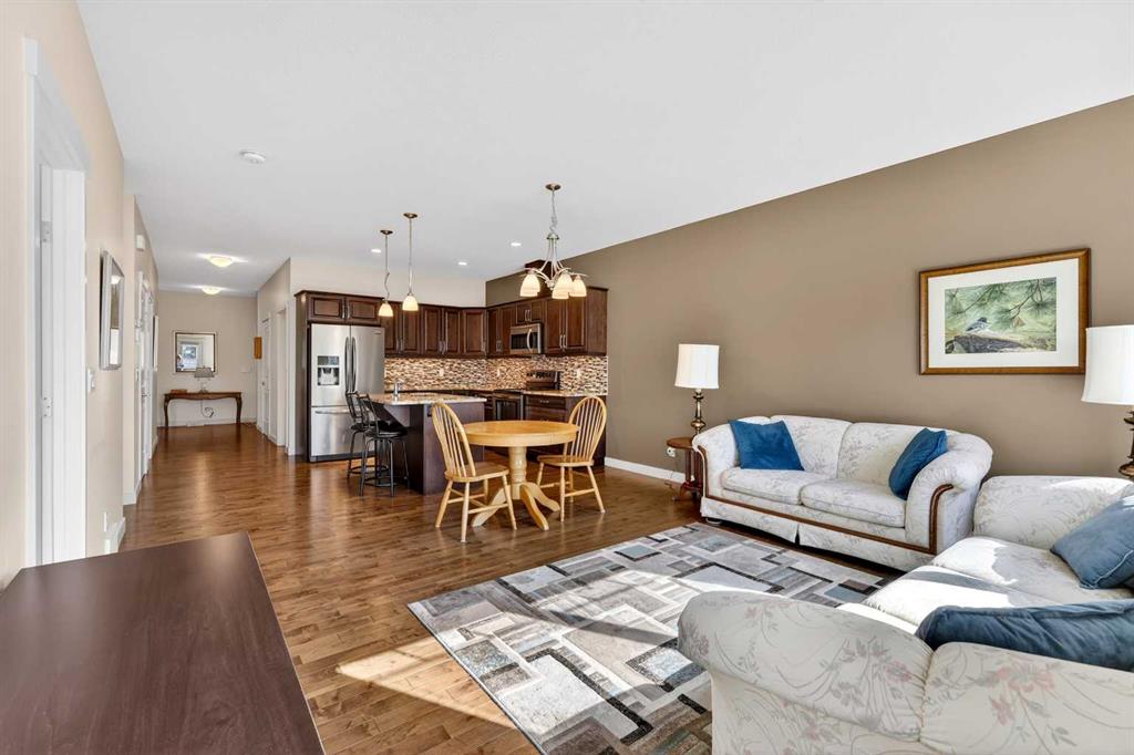You've earned the home that actually works for you. This former show home in Sagewood Villas — Strathmore's popular 55+ villa community — delivers single-level living with a finished lower level for the guests, the grandkids' sleepovers, and the hobbies that finally have their own room. The main floor was built with intention: 9' ceilings, an open-concept kitchen with granite counters, soft-close cabinetry, under-cabinet lighting, and a west-facing living area that fills with afternoon light. The primary suite fits a king and then some — walk-in closet with organizers, 4pc ensuite with his-and-her sinks. The second bedroom works equally well as a home office or a formal dining room. Laundry is on the main floor, and the double attached garage has a 10-foot ceiling. Downstairs: a full rec room with wet bar, a third bedroom with its own full bath, and serious storage with room to grow. Condo fees are $340/month — snow removal, grounds, and insurance handled. The Town of Strathmore delivers everything close: shopping, hospital, walking paths, and pickleball courts nearby. Quick possession available.
