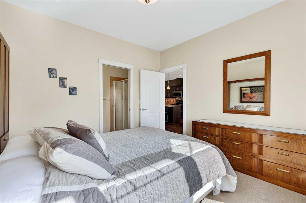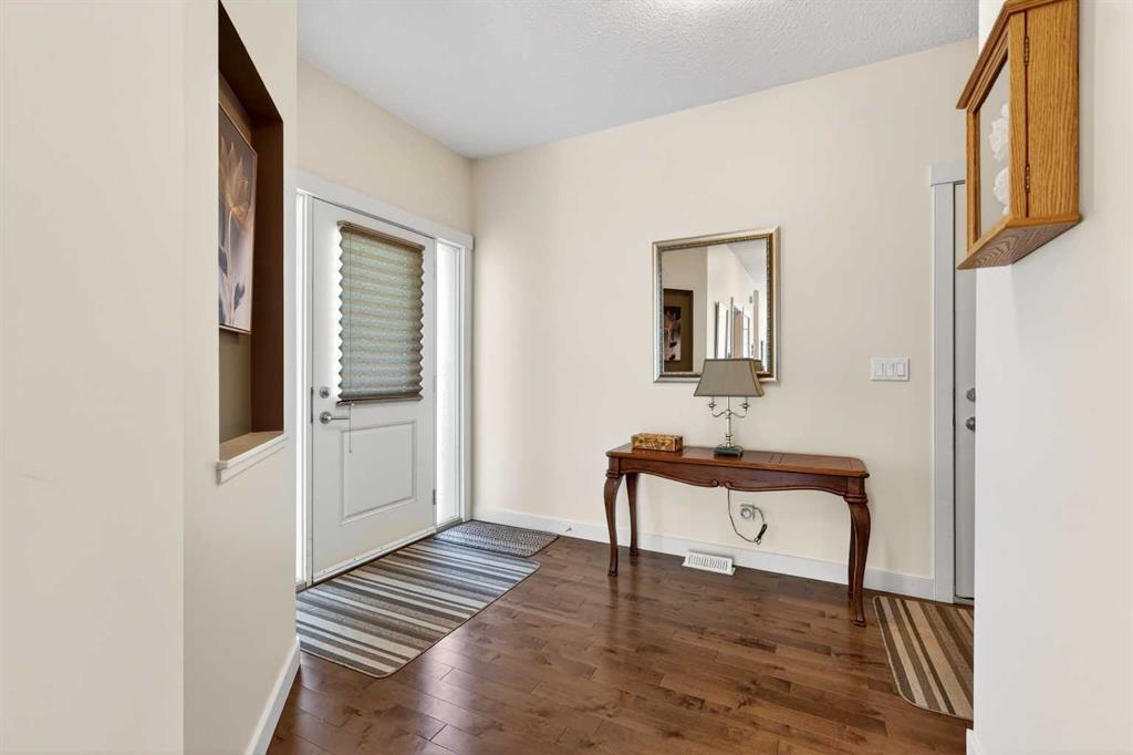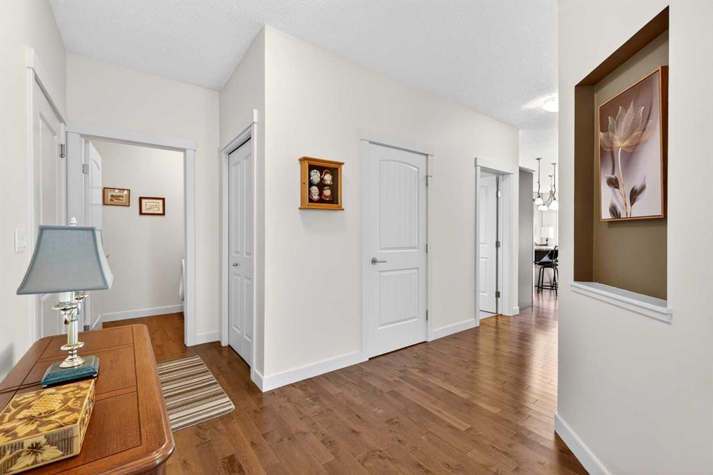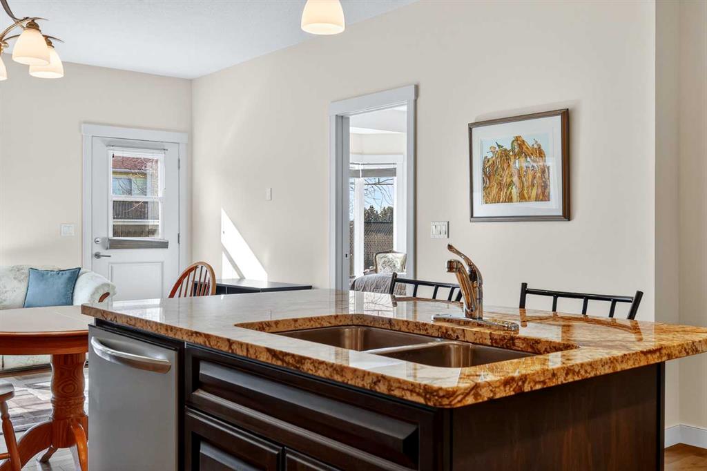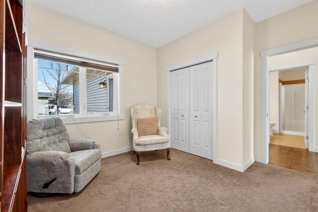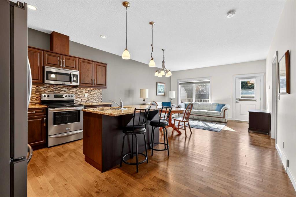 You've earned the home that actually works for you. This former show home in Sagewood Villas — Strathmore's popular 55+ villa community — delivers single-level living with a finished lower level for the guests, the grandkids' sleepovers, and the hobbies that finally have their own room. The main floor was built with intention: 9' ceilings, an open-concept kitchen with granite counters, soft-close cabinetry, under-cabinet lighting, and a west-facing living area that fills with afternoon light. The primary suite fits a king and then some — walk-in closet with organizers, 4pc ensuite with his-and-her sinks. The second bedroom works equally well as a home office or a formal dining room. Laundry is on the main floor, and the double attached garage has a 10-foot ceiling. Downstairs: a full rec room with wet bar, a third bedroom with its own full bath, and serious storage with room to grow. Condo fees are $340/month — snow removal, grounds, and insurance handled. The Town of Strathmore delivers everything close: shopping, hospital, walking paths, and pickleball courts nearby. Quick possession available.