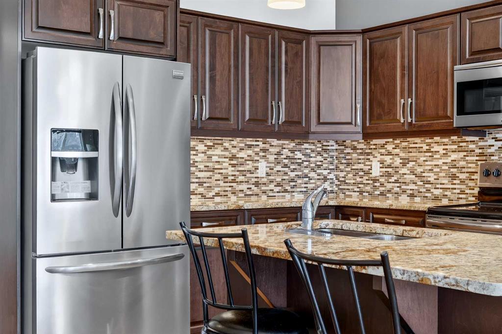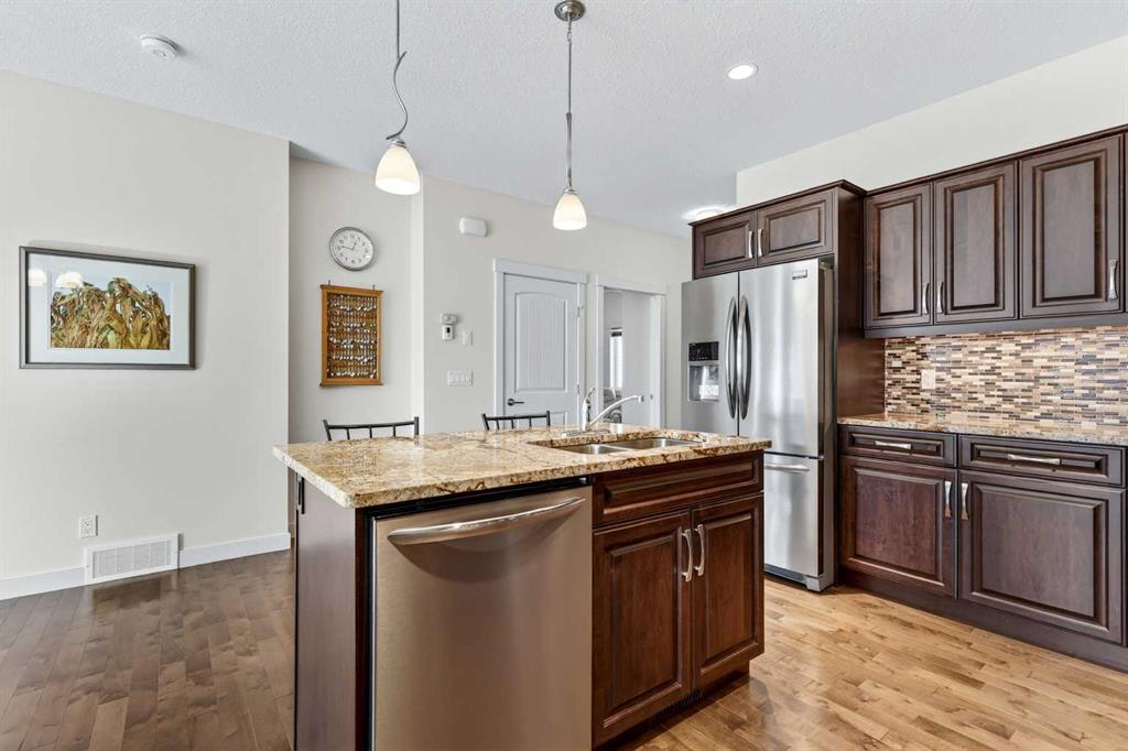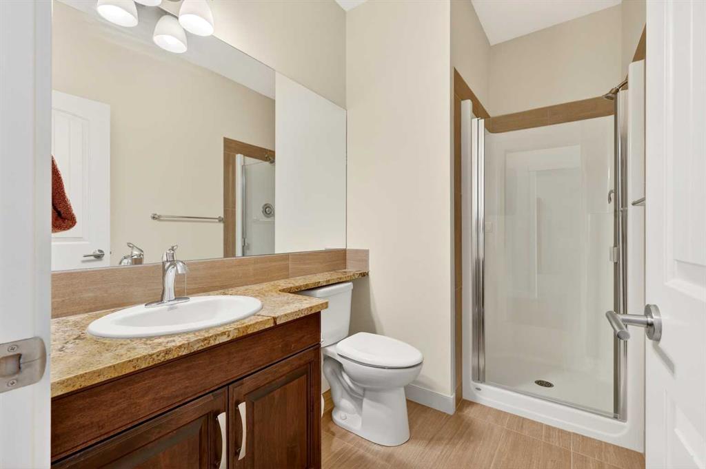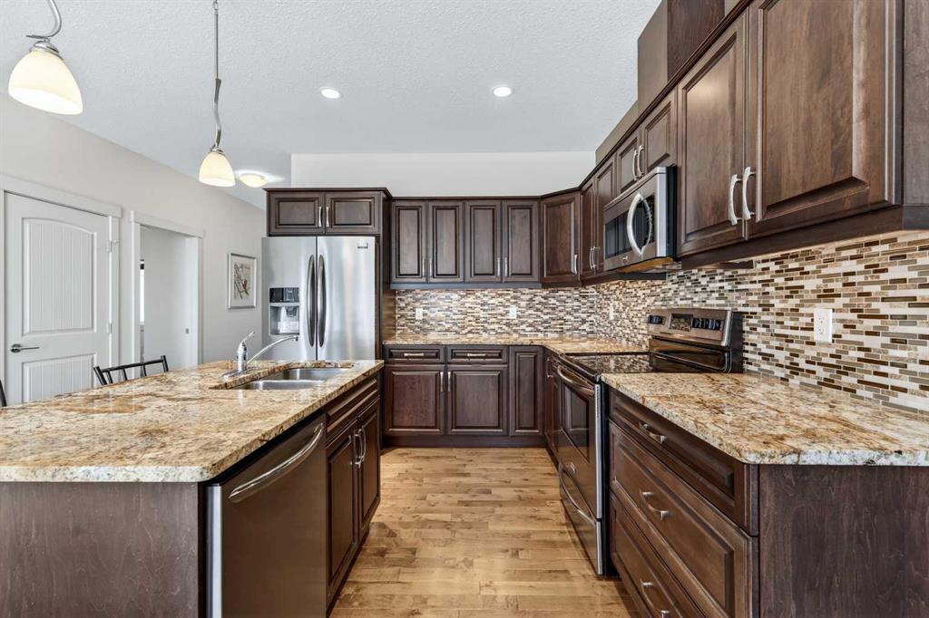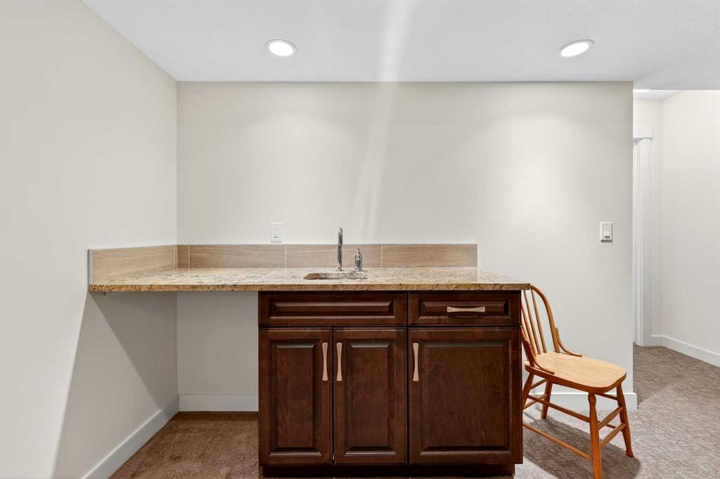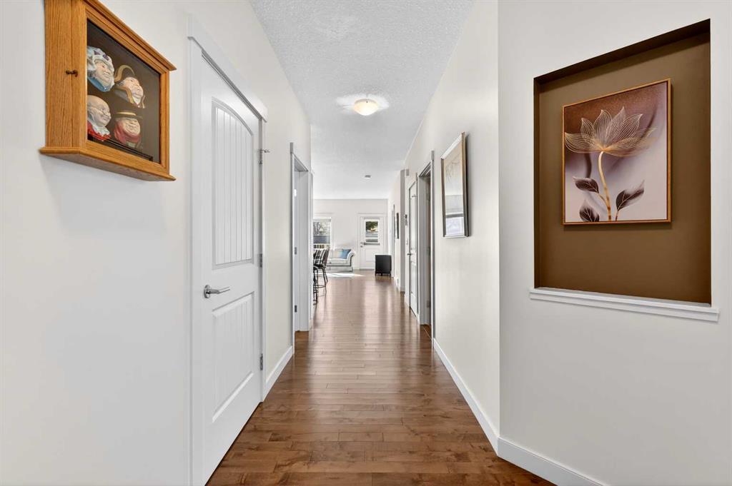 You've earned the home that actually works for you. This former show home in Sagewood Villas — Strathmore's popular 55+ villa community — delivers single-level living with a finished lower level for the guests, the grandkids' sleepovers, and the hobbies that finally have their own room. The main floor was built with intention: 9' ceilings, an open-concept kitchen with granite counters, soft-close cabinetry, under-cabinet lighting, and a west-facing living area that fills with afternoon light. The primary suite fits a king and then some — walk-in closet with organizers, 4pc ensuite with his-and-her sinks. The second bedroom works equally well as a home office or a formal dining room. Laundry is on the main floor, and the double attached garage has a 10-foot ceiling. Downstairs: a full rec room with wet bar, a third bedroom with its own full bath, and serious storage with room to grow. Condo fees are $340/month — snow removal, grounds, and insurance handled. The Town of Strathmore delivers everything close: shopping, hospital, walking paths, and pickleball courts nearby. Quick possession available.