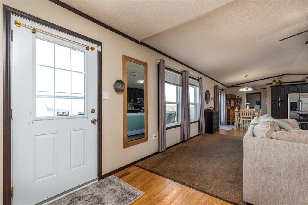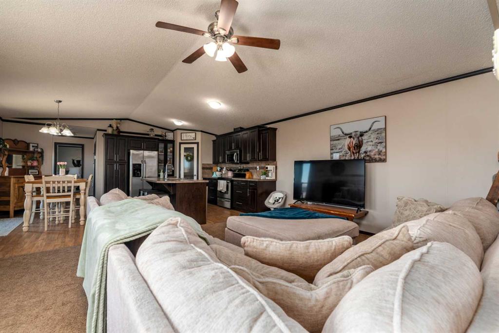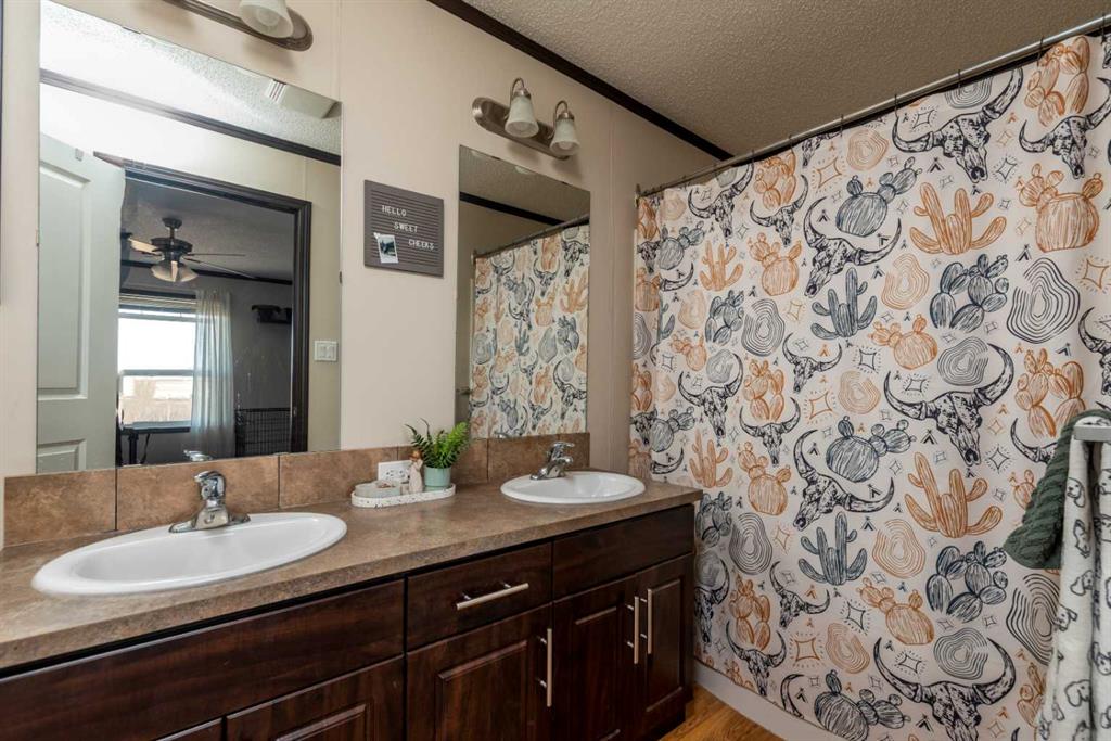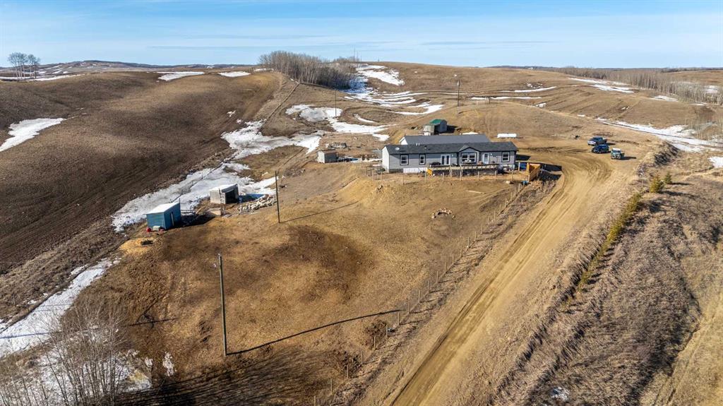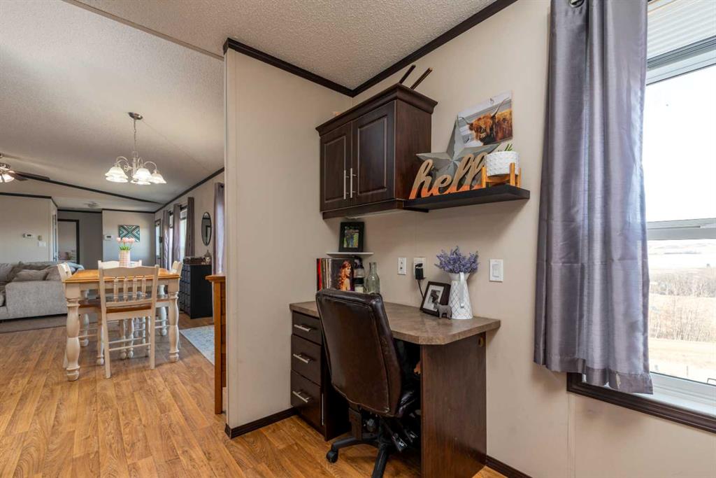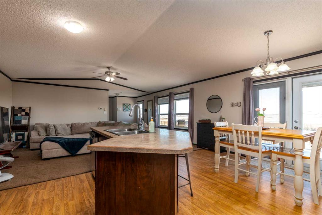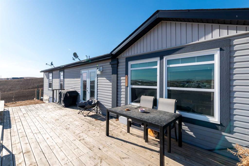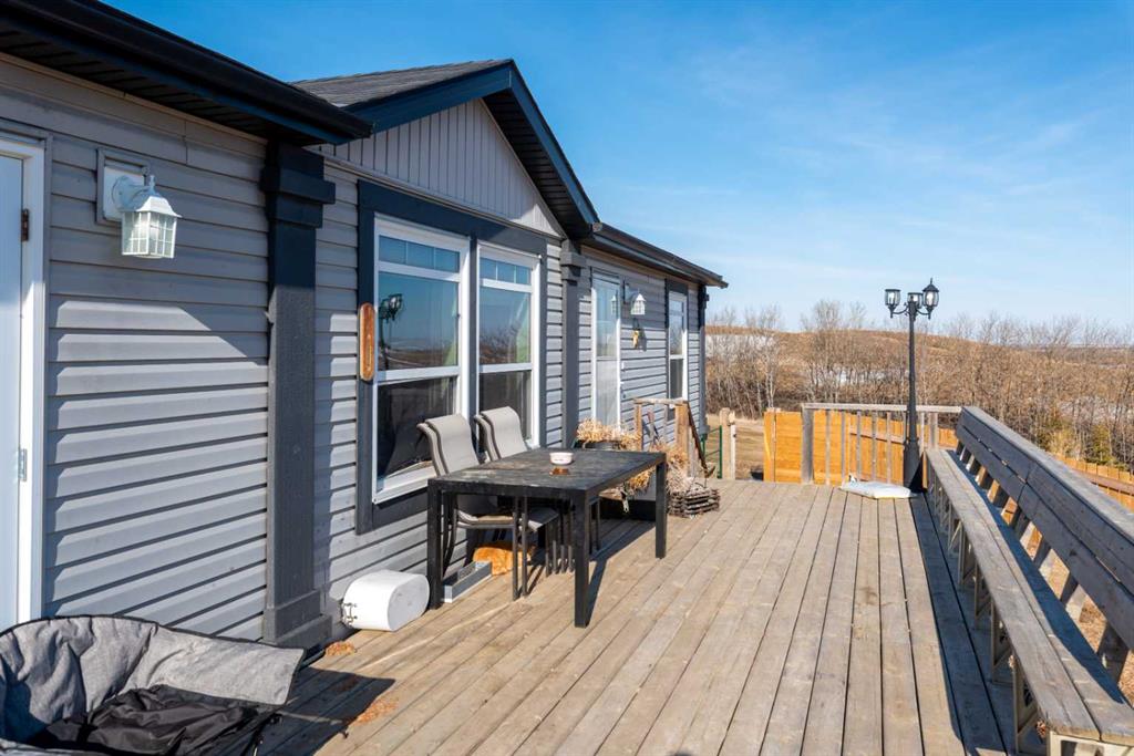 Peaceful, easy feeling! Step out onto the deck and enjoy the view! If you have been waiting for an affordable acreage this one is for you! This 6.97 acre acre property is located a short 20 km from Lloydminster, has a double detached garage with space for vehicles and toys, with a partially finished living area at the back. There is a ICF basement below the living area of the garage with walkout access to the back yard. The home itself has an open concept living area, an island with a breakfast bar, ample cabinetry and a corner pantry so there is no shortage of storage. Just off the kitchen you will find a built in office, the laundry area and the Primary bedroom complete with a walk in closet and ensuite with double sinks and a large tub. There is also 2 additional bedrooms and a bathroom on the other end of the mobile. Check out the 3D tour!