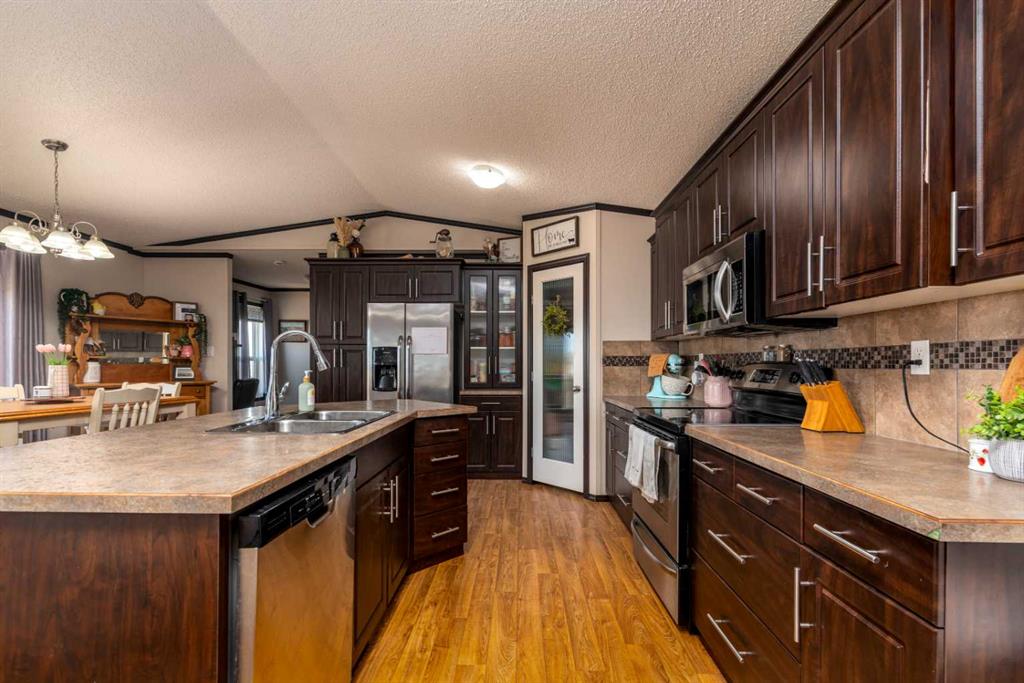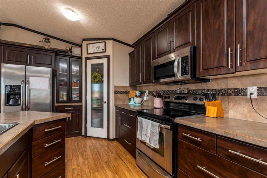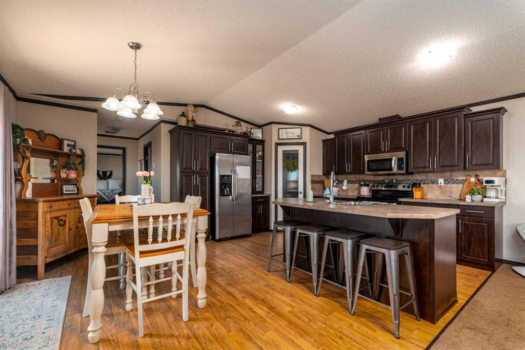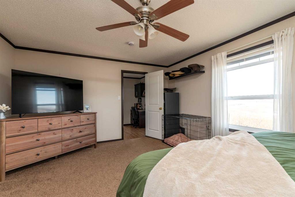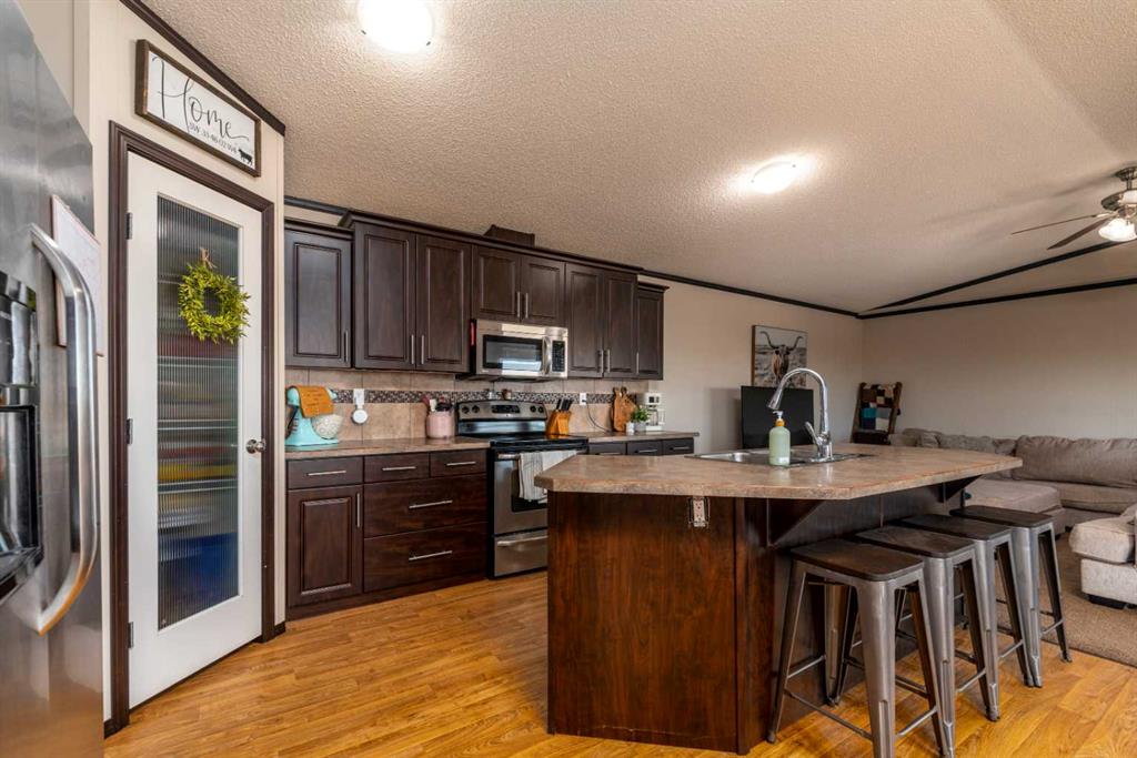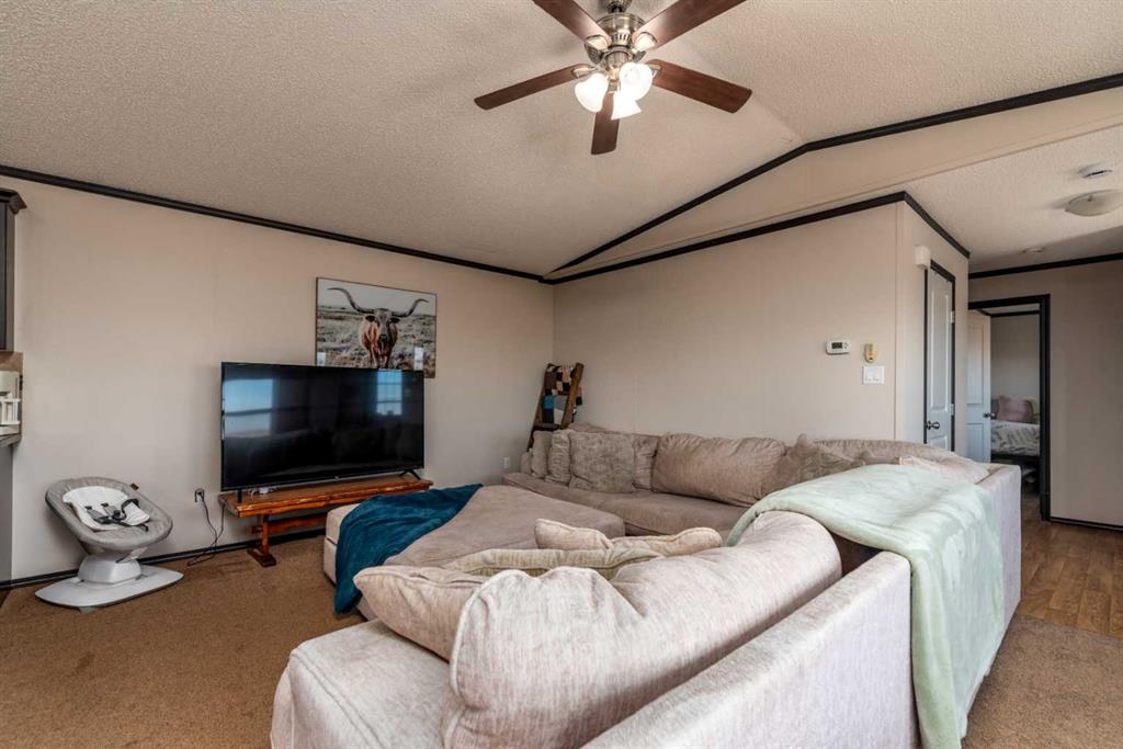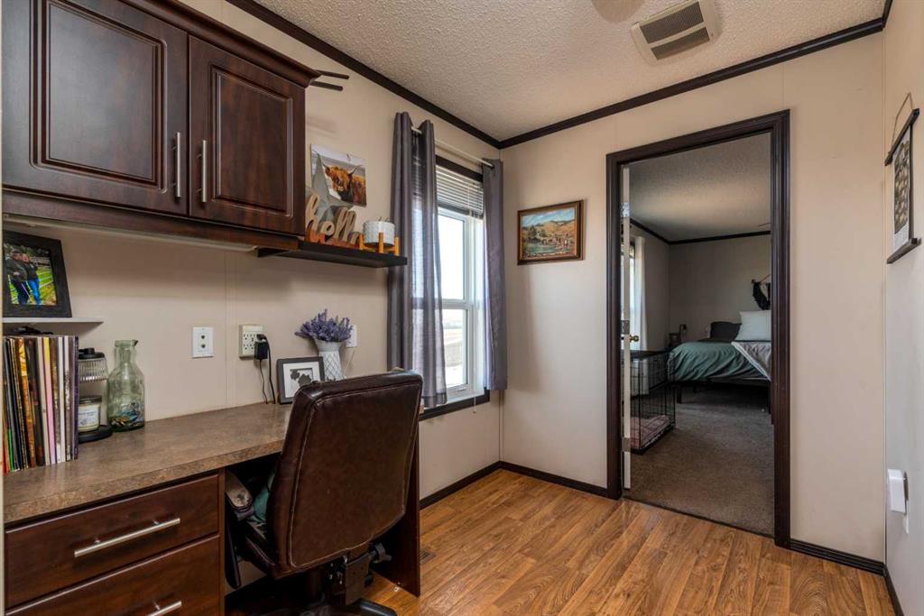 Peaceful, easy feeling! Step out onto the deck and enjoy the view! If you have been waiting for an affordable acreage this one is for you! This 6.97 acre acre property is located a short 20 km from Lloydminster, has a double detached garage with space for vehicles and toys, with a partially finished living area at the back. There is a ICF basement below the living area of the garage with walkout access to the back yard. The home itself has an open concept living area, an island with a breakfast bar, ample cabinetry and a corner pantry so there is no shortage of storage. Just off the kitchen you will find a built in office, the laundry area and the Primary bedroom complete with a walk in closet and ensuite with double sinks and a large tub. There is also 2 additional bedrooms and a bathroom on the other end of the mobile. Check out the 3D tour!