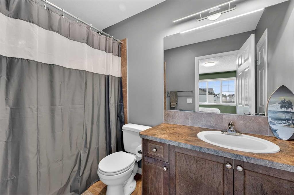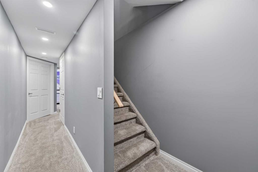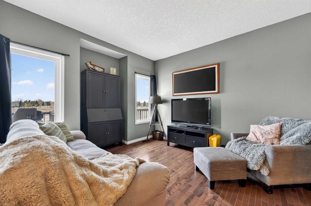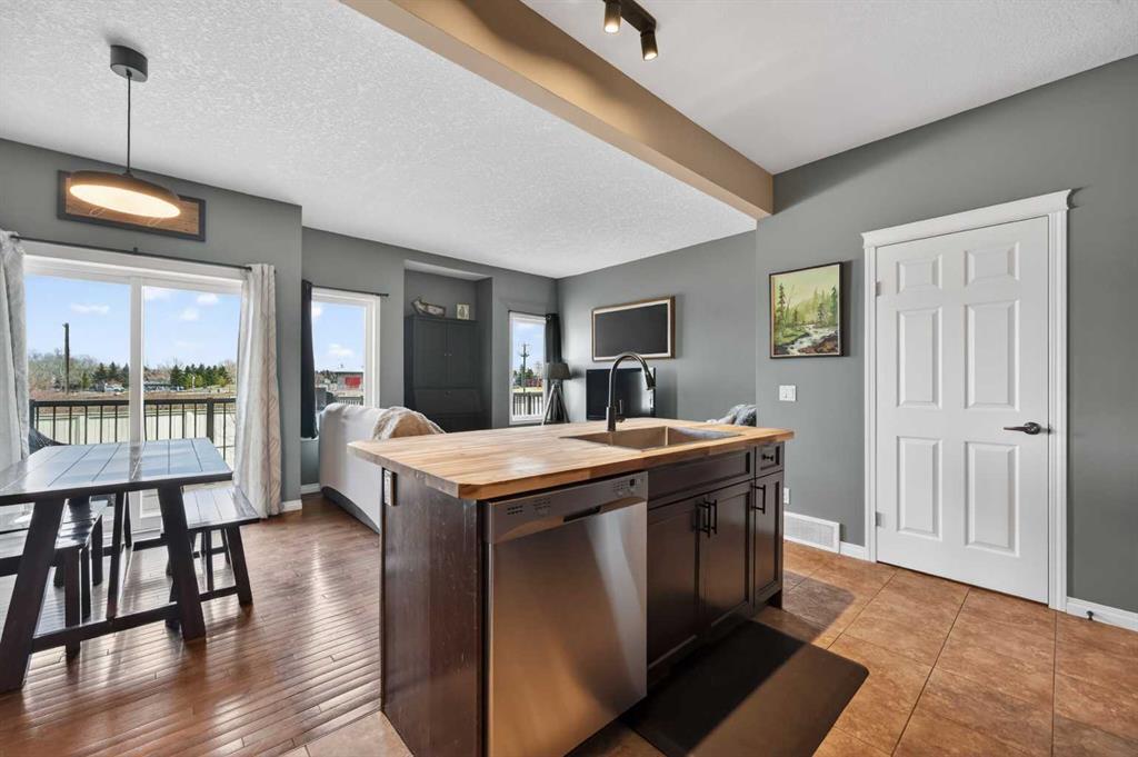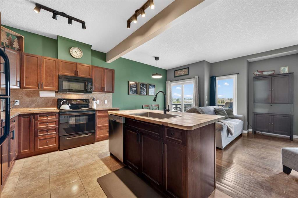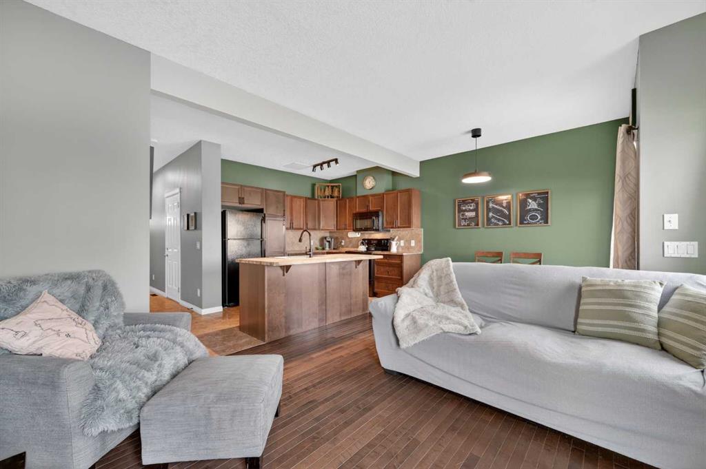Welcome to this beautifully maintained townhouse in the sought-after community of Luxstone! This rare and highly functional layout features 3 spacious bedrooms—EACH with its own private 4-piece ENSUITE and WALK-IN closet, making it an exceptional opportunity for investors, first-time buyers, or down-sizers seeking comfort and flexibility. The main floor offers a bright, open-concept design highlighted by 9’ knockdown ceilings and rich hardwood flooring throughout the living space. The kitchen is both stylish and functional, featuring warm wood cabinetry, black appliances, tile backsplash, and a large central island with butcher block countertop and a stainless steel farm house sink, perfect for meal prep and entertaining alike. The adjacent dining and living areas are filled with natural light and flow seamlessly to the east-facing balcony, where you can enjoy peaceful views of Nose Creek Park and morning sun with added privacy and no rear neighbours. A convenient 2-piece powder room on the main level adds everyday functionality for guests. Upstairs, you’ll appreciate the upper-level laundry room and the generously sized bedrooms, each offering their own ensuite—ideal for roommates, guests, or multi-generational living. Basement is finished with another bedroom offering its own 4pc ensuite and walk-in closet as well. Mechanical room and under the stairs offer great storage. Additional features include an attached garage, modern lighting, newer dishwasher, washer/dryer, carpets, basement development and pride of ownership throughout. Located close to parks, schools, walking paths, and a playground, this home delivers the perfect blend of lifestyle, location, and value.