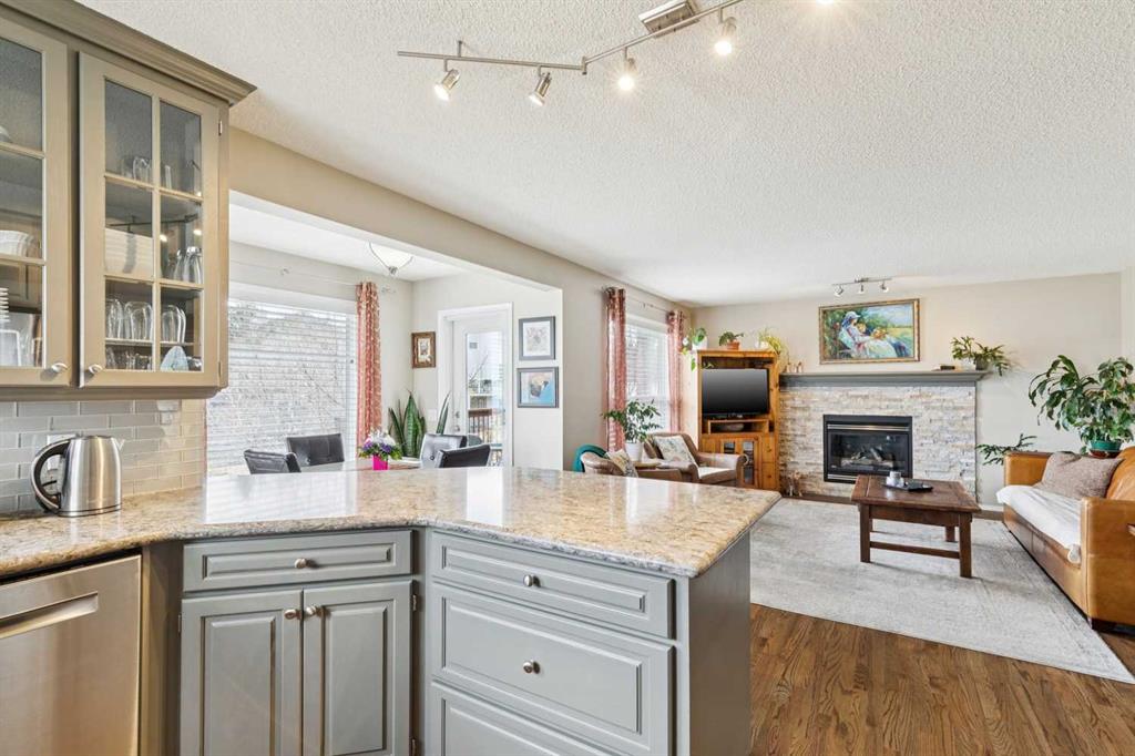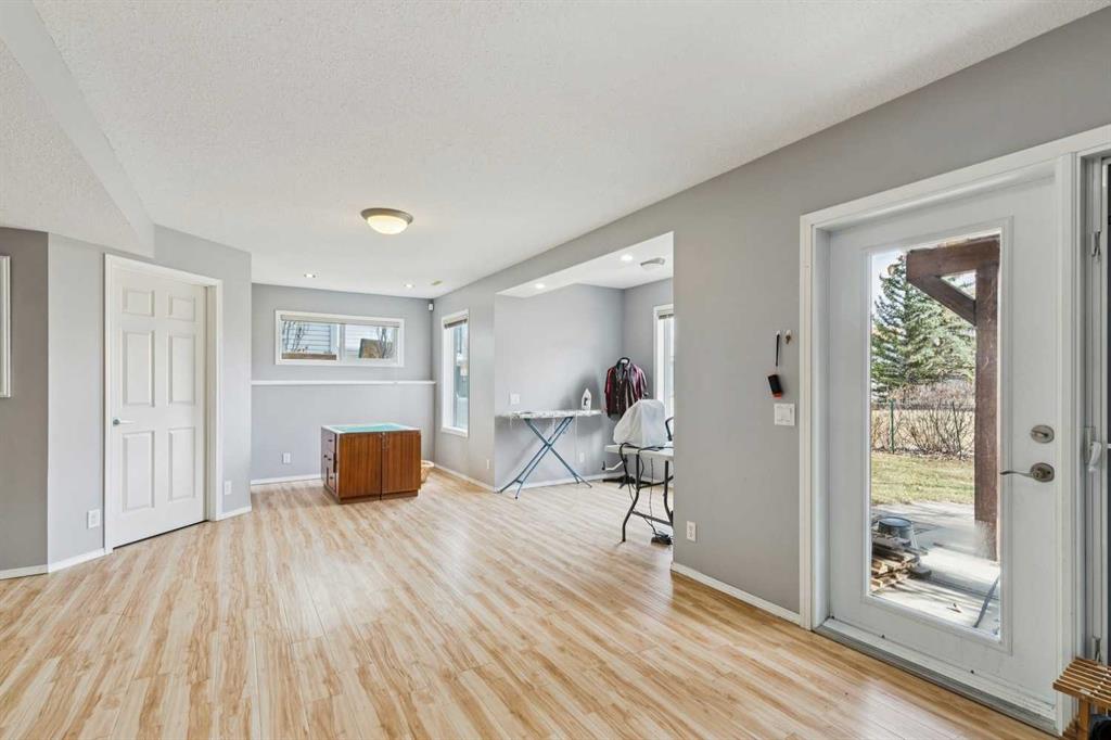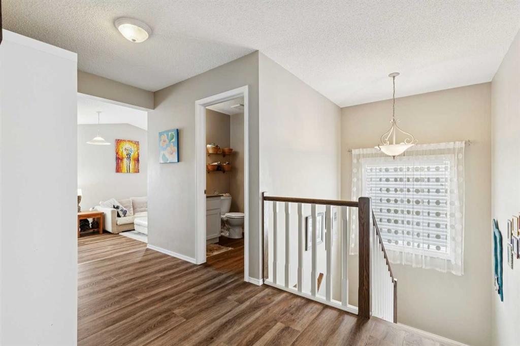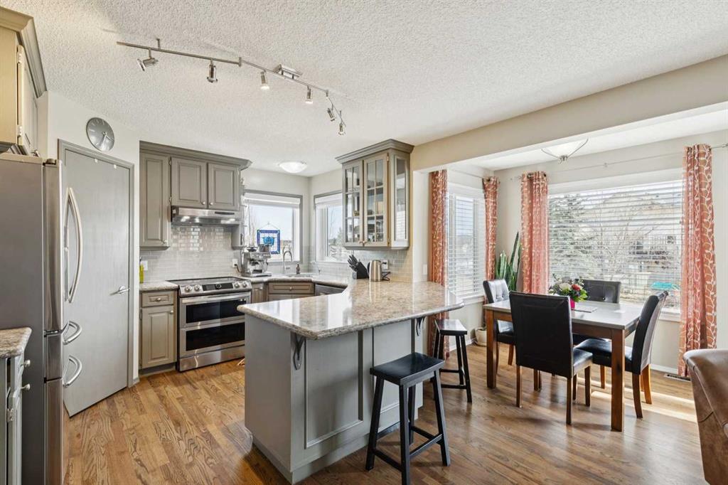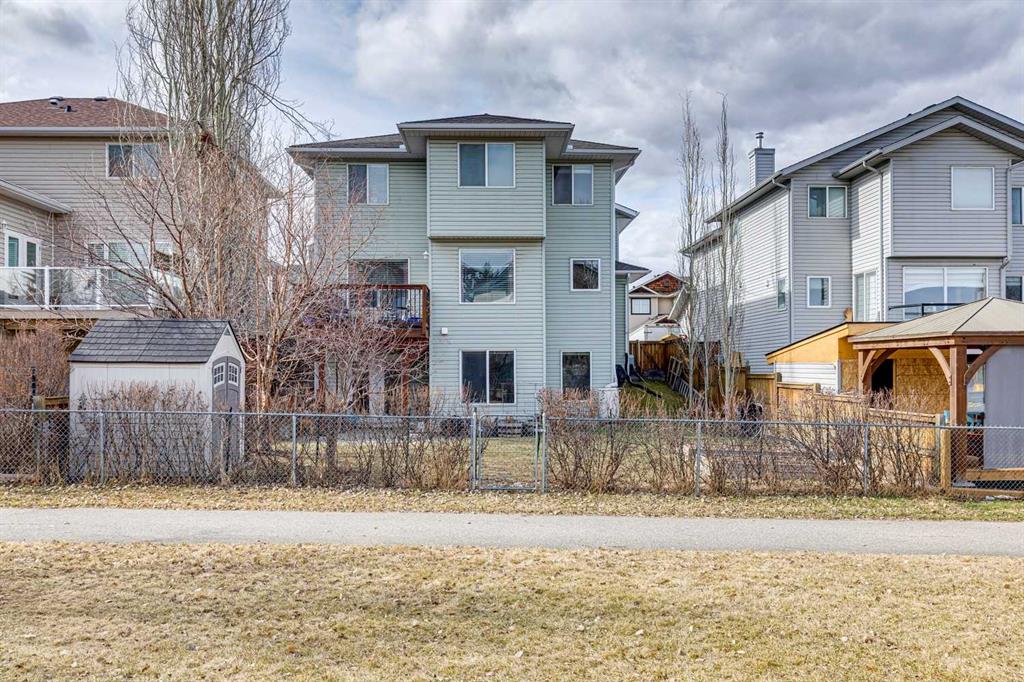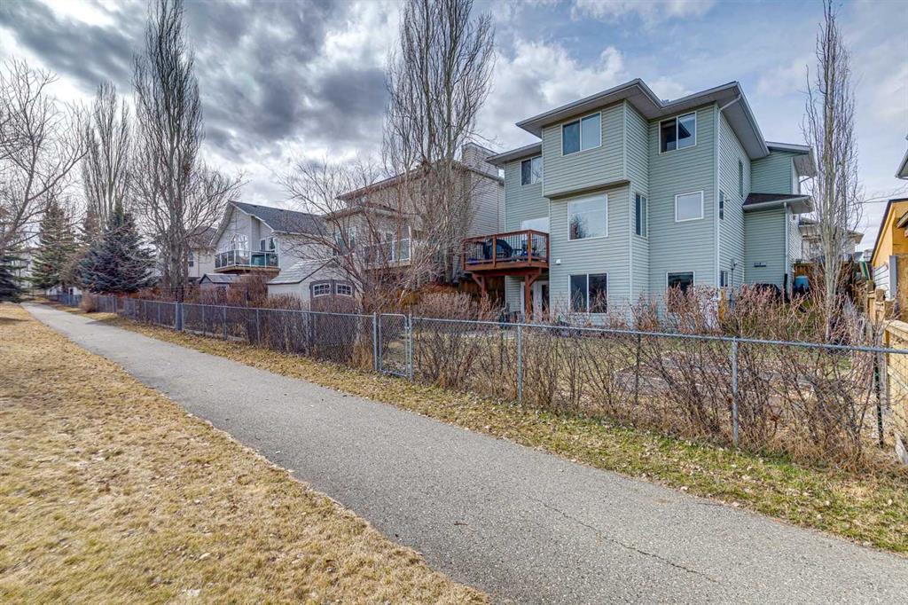 This well-located home backs onto a playground and greenspace with walking paths that connect to the river valley. You can get right downtown on the pathway system without ever crossing a major road. The southeast-facing backyard enjoys great natural light and features a large deck overlooking the green space. Inside the home has been lovingly updated with refinished hardwood floors, painted cabinets, newer stainless appliances, and new quartz counters. The comfortable main floor layout features an open concept living, dining and, kitchen space with tons of windows. The living room is centered around a gas fireplace, while the nook is surrounded by windows. There is a flex space at the front of the home that’s currently used as a formal dining area, and the laundry room is also on this level. Upstairs offers new vinyl plank floors, three bedrooms, plus a spacious bonus room with high ceilings. The finished walkout basement has a 4th bedroom and another full bathroom. The house also has A/C, a water softener, and a water filtration system. The fully fenced yard, nearby Sheep River pathway system, and convenient access to schools and shopping make this a solid choice in a family-friendly setting.