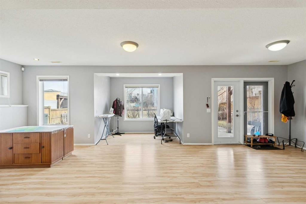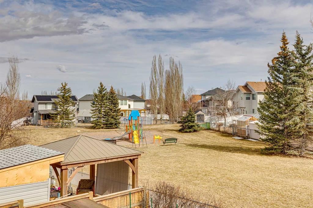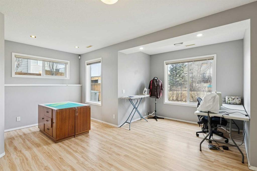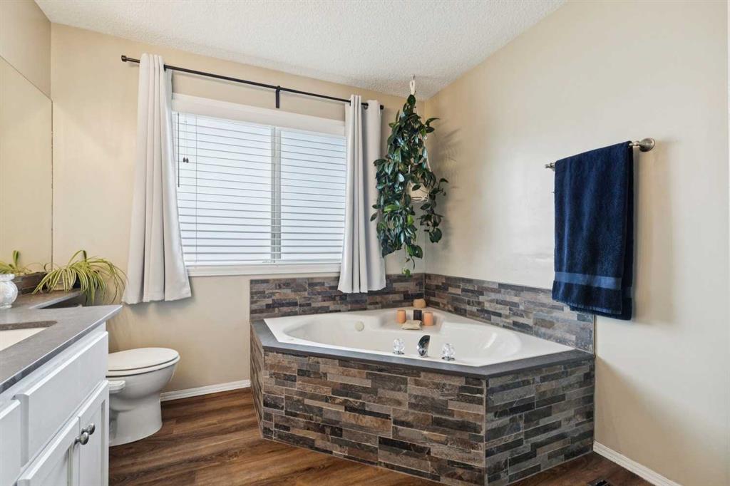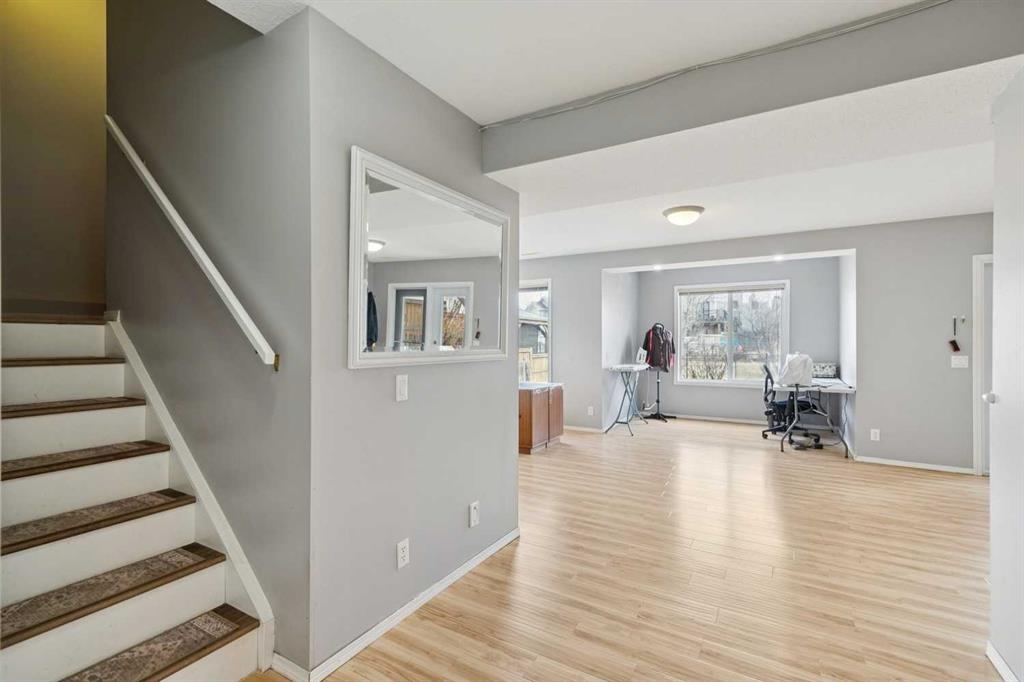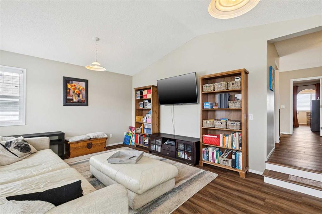 This well-located home backs onto a playground and greenspace with walking paths that connect to the river valley. You can get right downtown on the pathway system without ever crossing a major road. The southeast-facing backyard enjoys great natural light and features a large deck overlooking the green space. Inside the home has been lovingly updated with refinished hardwood floors, painted cabinets, newer stainless appliances, and new quartz counters. The comfortable main floor layout features an open concept living, dining and, kitchen space with tons of windows. The living room is centered around a gas fireplace, while the nook is surrounded by windows. There is a flex space at the front of the home that’s currently used as a formal dining area, and the laundry room is also on this level. Upstairs offers new vinyl plank floors, three bedrooms, plus a spacious bonus room with high ceilings. The finished walkout basement has a 4th bedroom and another full bathroom. The house also has A/C, a water softener, and a water filtration system. The fully fenced yard, nearby Sheep River pathway system, and convenient access to schools and shopping make this a solid choice in a family-friendly setting.