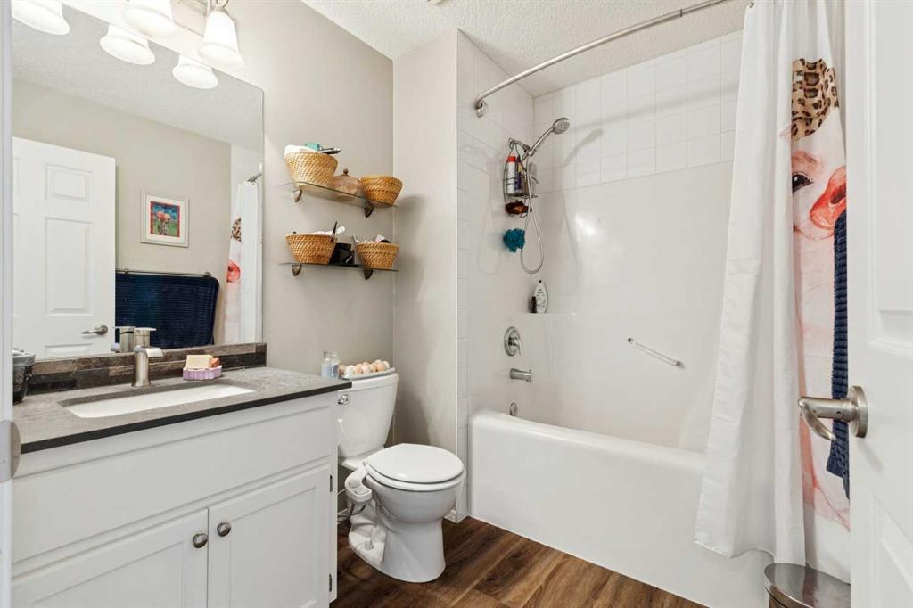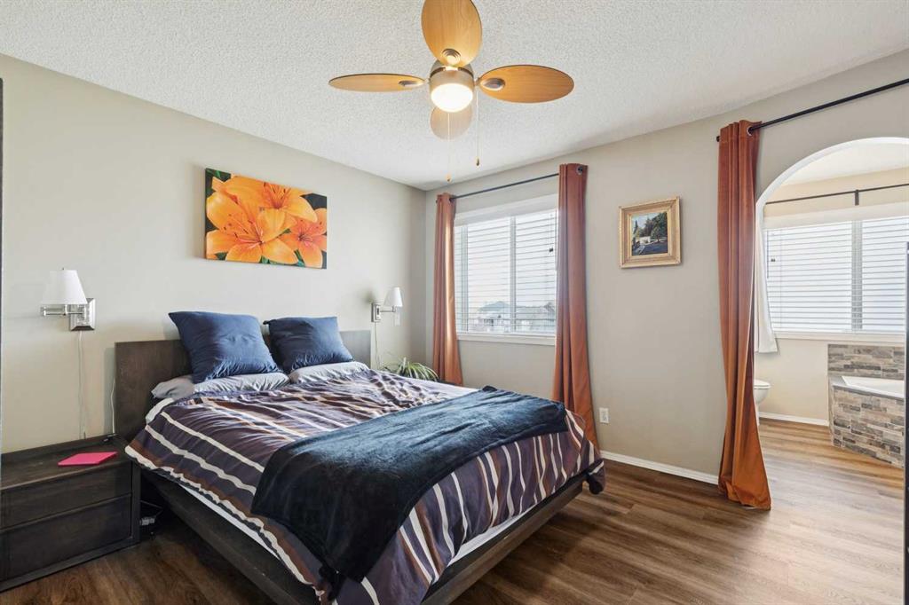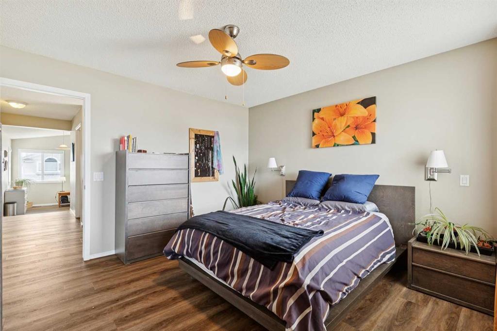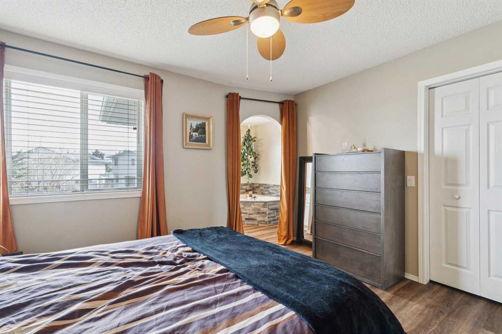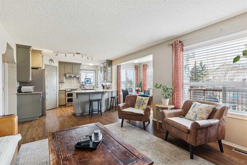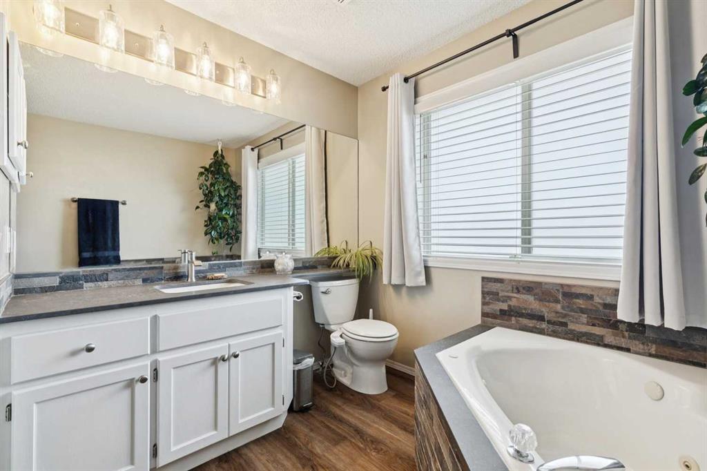 This well-located home backs onto a playground and greenspace with walking paths that connect to the river valley. You can get right downtown on the pathway system without ever crossing a major road. The southeast-facing backyard enjoys great natural light and features a large deck overlooking the green space. Inside the home has been lovingly updated with refinished hardwood floors, painted cabinets, newer stainless appliances, and new quartz counters. The comfortable main floor layout features an open concept living, dining and, kitchen space with tons of windows. The living room is centered around a gas fireplace, while the nook is surrounded by windows. There is a flex space at the front of the home that’s currently used as a formal dining area, and the laundry room is also on this level. Upstairs offers new vinyl plank floors, three bedrooms, plus a spacious bonus room with high ceilings. The finished walkout basement has a 4th bedroom and another full bathroom. The house also has A/C, a water softener, and a water filtration system. The fully fenced yard, nearby Sheep River pathway system, and convenient access to schools and shopping make this a solid choice in a family-friendly setting.
