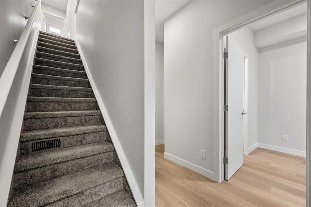 Welcome to #124, 285 Chelsea Court, a stylish brand-new 3-storey townhouse offering over 1,437 sq. ft. of thoughtfully designed living space in the vibrant and growing community of Chelsea in Chestermere. With modern finishes, a functional layout, and immediate possession available, this home is ideal for first-time buyers, professionals, or investors seeking low-maintenance living just minutes from Calgary. The entry level features a versatile bedroom and full bathroom, providing excellent flexibility for guests, a home office, or private workspace. This level also offers convenient access to the single attached garage, adding everyday practicality. The main living level showcases a bright and open-concept layout enhanced by luxury vinyl plank flooring and large windows that fill the space with natural light. The modern kitchen is finished with quartz countertops, sleek cabinetry, and ample workspace, seamlessly connecting to the dining area and spacious living room—perfect for both everyday living and entertaining. A convenient 2-piece powder room completes this level. Step outside to enjoy your private balcony/deck, ideal for relaxing or enjoying fresh air. Upstairs, the home features two well-appointed bedrooms, including a comfortable primary retreat with a walk-in closet and private 4-piece ensuite. An additional bedroom and full bathroom provide flexibility for family, guests, or roommates. The upper level also includes laundry for added convenience. Additional highlights include Hardie board siding for enhanced durability and curb appeal, modern finishes throughout, in-unit storage, and an attached garage. The property has low condo fees that cover common area maintenance, snow removal, and more, offering a low-maintenance lifestyle. Located in Chelsea, residents enjoy access to parks, playgrounds, walking paths, nearby schools, and local amenities, all within a welcoming and growing community. With easy access to Calgary and major routes, commuting is simple and convenient. Combining modern design, functional living spaces, and excellent value, 285 Chelsea Court #124 is a fantastic opportunity to own a new home in a thriving neighbourhood.