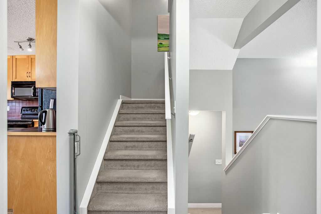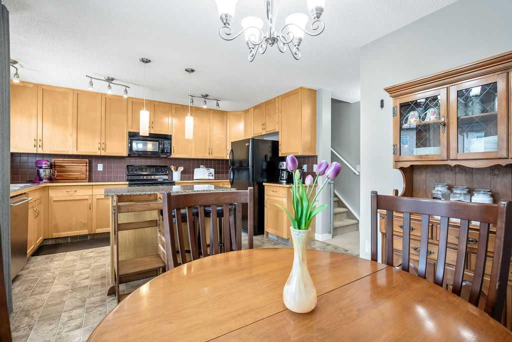 You pull into your double attached garage, the day winding down as you step inside and leave the world at the door. Upstairs, the heart of the home is waiting—sunlight pouring into the south-facing kitchen, warming the space and making it feel instantly welcoming. There’s room to spread out here, whether you’re prepping dinner with ease thanks to generous counter and cabinet space, or gathering around the central island. Just off the kitchen, the balcony calls for an easy summer BBQ, doors open to let the evening air drift in. This level is designed for real life, with a convenient 2-piece powder room and laundry close at hand—everything exactly where you need it. Dinner flows into the dining area, and before long you find yourselves unwinding in the bright living room below. The vaulted ceilings create a sense of openness, while the large window frames a view of the playground just steps away. It doesn’t take much convincing before your little one is asking to head out to play—shoes on, laughter echoing as the last of the daylight fades. When it’s time to come in, the routine feels effortless. Upstairs, bath time in the main 4-piece bathroom, then into one of the cozy secondary bedrooms where stories are read and goodnights are said. The house settles into a quieter rhythm. Maybe you spend a bit of time in the third bedroom turned office—catching up on work or finally picking up a paintbrush again—while downstairs the garage becomes a place to tinker and unwind. Later, you both retreat to your own private level—the primary suite. It’s a true escape, complete with a walk-in closet and a 4-piece ensuite where the day can fully melt away. Weekends bring a different pace. Friends drop by easily, with plenty of guest parking just steps away. If they stay the night, the finished basement—with its comfortable fourth bedroom and warm cork flooring—offers a welcoming, private space. And in between it all, life here is about ease and connection. You can walk to GoodLife Fitness for a workout, grab a quick bite at McDonald's, or run errands at Home Depot, Save-On-Foods, and Costco just across the street. When you’re craving fresh air, nearby walks along Sheep River or around Cimarron Pond offer a peaceful escape close to home. This is more than a home—it’s a place where your everyday feels easy, connected, and just right.