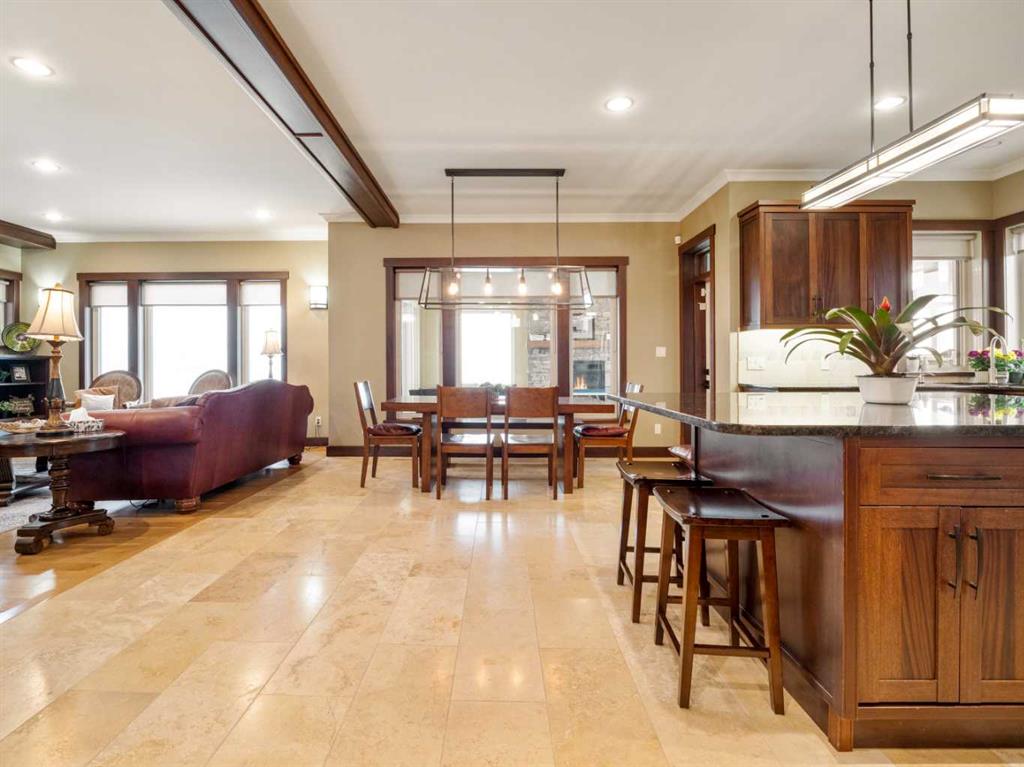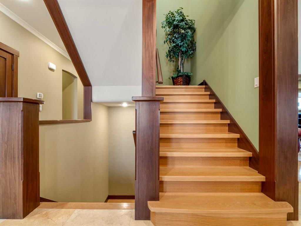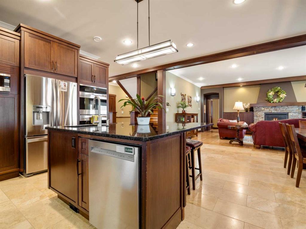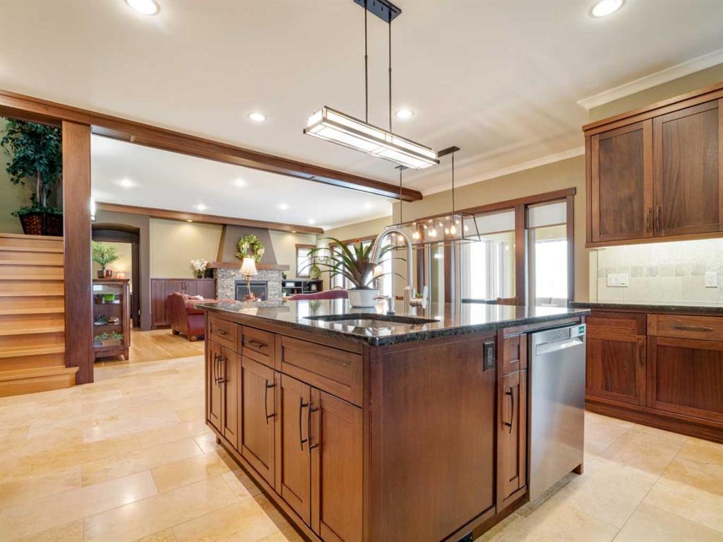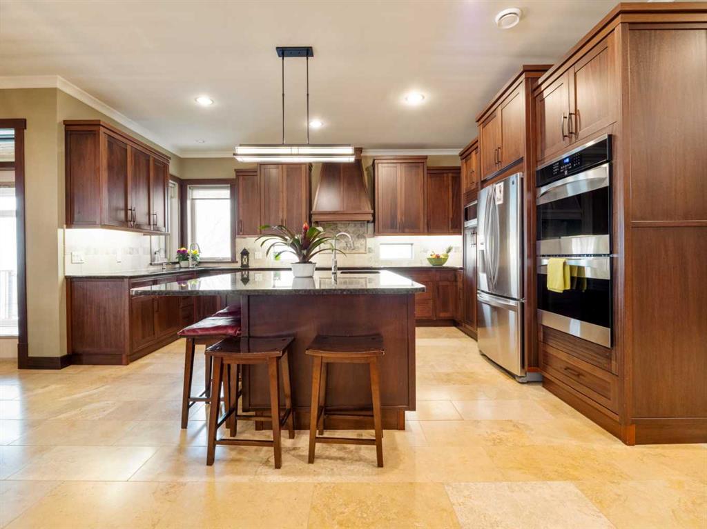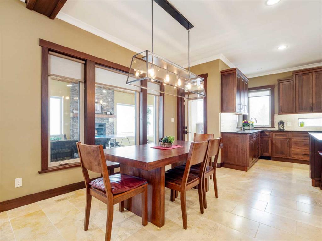 Experience exceptional craftsmanship, space, and comfort in this stunning custom-built estate on a beautifully landscaped 1-acre parcel in desirable Mountain Meadows. Custom designed by California Homes Ltd., this remarkable residence was built with a high degree of workmanship, premium materials, and attention to detail throughout. From the moment you arrive, the expansive concrete driveway, striking stone exterior, and impressive detached shop set the tone for this one-of-a-kind property. Engineered soil bearing tests were completed prior to excavation, and the home was constructed with extra footings for lasting strength and peace of mind. Inside, you’ll be welcomed by soaring ceilings, rich finishes, and timeless materials including Peruvian travertine tile floors and walls tiles , Rift & Quarter-sawn white oak hardwood flooring, and extraordinary Honduran mahogany cabinetry, woodwork, and doors. The custom mahogany interior finish was completed on site over the course of a year by aMaster Craftsman , creating a level of warmth and detail rarely found in today’s homes. The chef-inspired kitchen is the heart of the home, featuring an induction cooktop, dual wall ovens, oversized island, granite countertops, custom cabinetry, and exceptional workspace. Spacious living areas include two gorgeous real-stone fireplaces, elegant entertaining spaces, and a bright 4-season sunroom perfect for year-round enjoyment. Retreat to beautifully appointed bedrooms, luxurious bathrooms, and a fully developed lower level complete with games and recreation space. Built-in benches, custom storage, and thoughtful design details can be found throughout.• In-floor radiant heat in basement, most of main floor, attached garage, and detached shop • High-efficiency furnace (2023) • Wall-mounted water heater (2024) • Smart Home Control4 system • 1,860 sq. ft. detached shop with in-floor heat, full bathroom, laundry, and theatre setup potential • Professionally designed landscaping with underground sprinklers A truly outstanding property where luxury meets practicality—homes like this rarely come available.