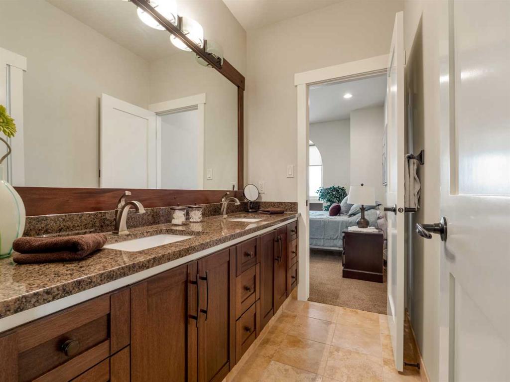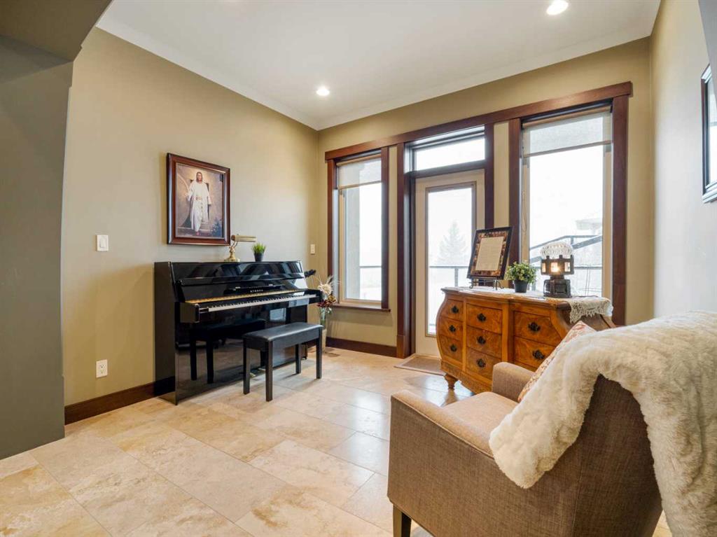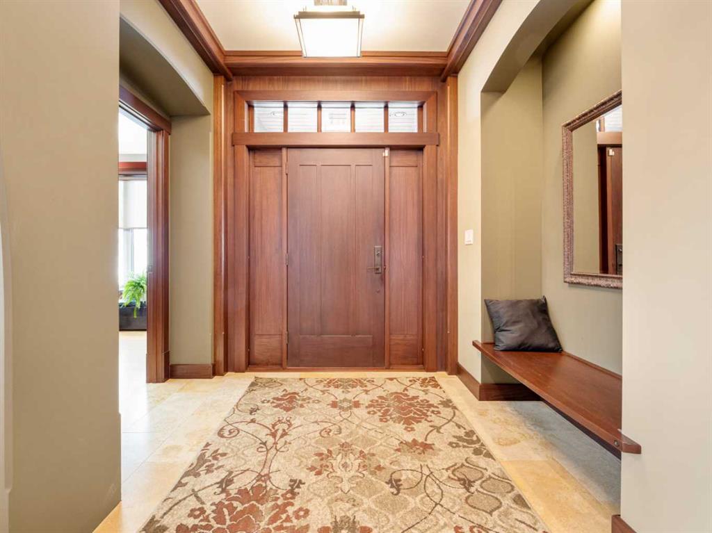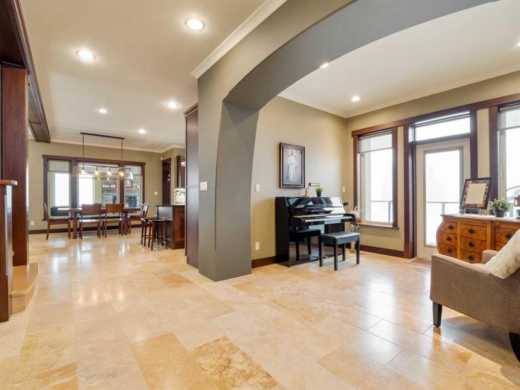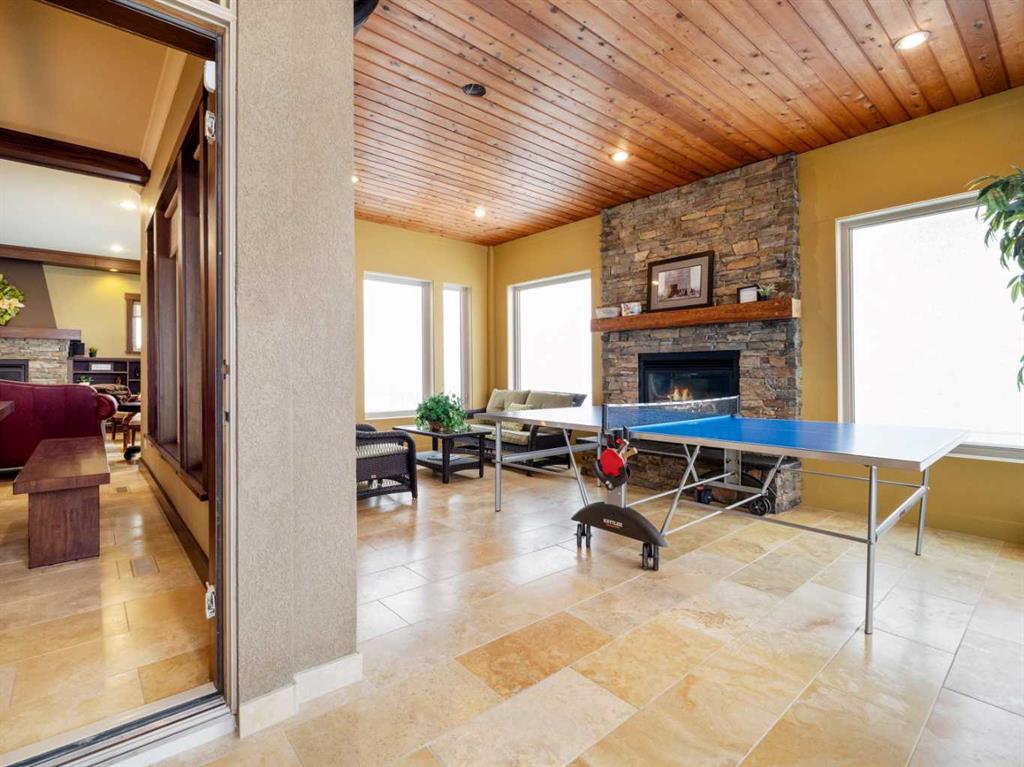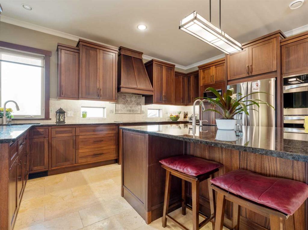 Experience exceptional craftsmanship, space, and comfort in this stunning custom-built estate on a beautifully landscaped 1-acre parcel in desirable Mountain Meadows. Custom designed by California Homes Ltd., this remarkable residence was built with a high degree of workmanship, premium materials, and attention to detail throughout. From the moment you arrive, the expansive concrete driveway, striking stone exterior, and impressive detached shop set the tone for this one-of-a-kind property. Engineered soil bearing tests were completed prior to excavation, and the home was constructed with extra footings for lasting strength and peace of mind. Inside, you’ll be welcomed by soaring ceilings, rich finishes, and timeless materials including Peruvian travertine tile floors and walls tiles , Rift & Quarter-sawn white oak hardwood flooring, and extraordinary Honduran mahogany cabinetry, woodwork, and doors. The custom mahogany interior finish was completed on site over the course of a year by aMaster Craftsman , creating a level of warmth and detail rarely found in today’s homes. The chef-inspired kitchen is the heart of the home, featuring an induction cooktop, dual wall ovens, oversized island, granite countertops, custom cabinetry, and exceptional workspace. Spacious living areas include two gorgeous real-stone fireplaces, elegant entertaining spaces, and a bright 4-season sunroom perfect for year-round enjoyment. Retreat to beautifully appointed bedrooms, luxurious bathrooms, and a fully developed lower level complete with games and recreation space. Built-in benches, custom storage, and thoughtful design details can be found throughout.• In-floor radiant heat in basement, most of main floor, attached garage, and detached shop • High-efficiency furnace (2023) • Wall-mounted water heater (2024) • Smart Home Control4 system • 1,860 sq. ft. detached shop with in-floor heat, full bathroom, laundry, and theatre setup potential • Professionally designed landscaping with underground sprinklers A truly outstanding property where luxury meets practicality—homes like this rarely come available.