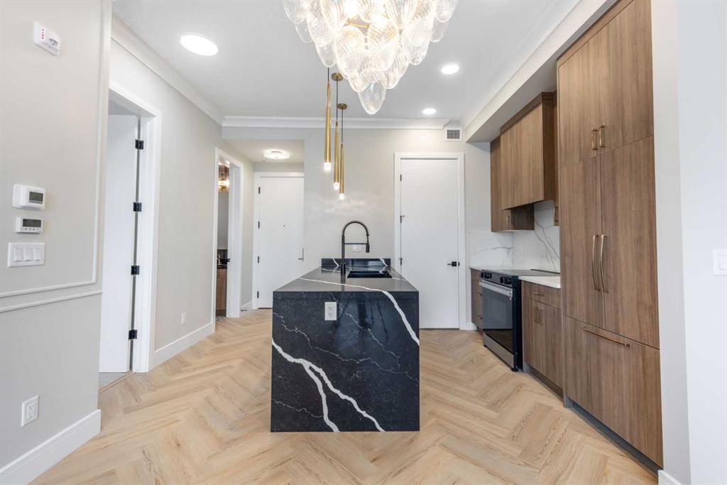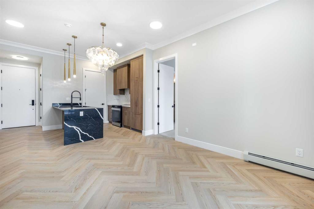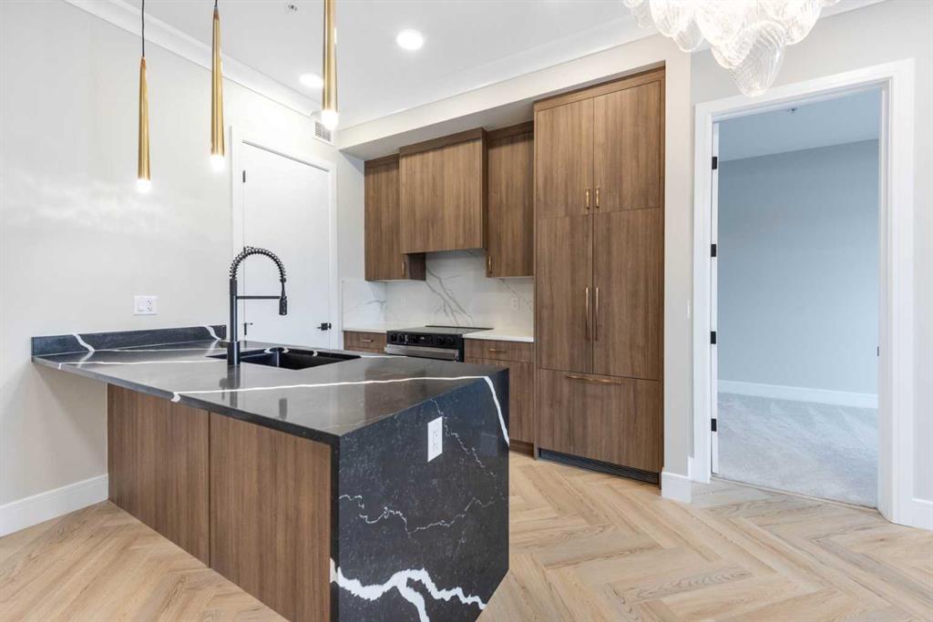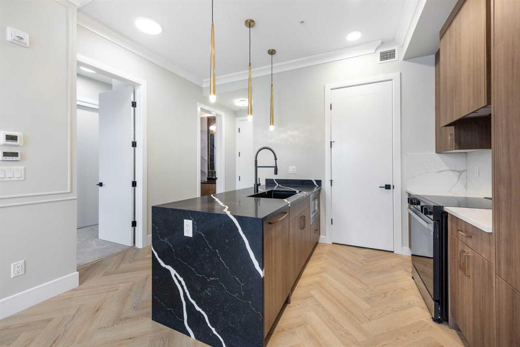 Welcome to The ORO, in Dean's Landing that redefines modern living. This brand-new, never-occupied residence features 824 sq ft of thoughtfully designed space, boasting lofty 9' to 10' ceilings and an abundance of natural light from large windows. Step outside to your own private 248 sq ft balcony, perfect for hosting summer barbecues or enjoying a serene morning coffee. The chef-inspired kitchen offers ample countertops and a dedicated pantry, while the spacious bedroom accommodates a queen-size bed with ease, complemented by a large closet. Convenience is key with in-suite laundry facilities discreetly placed away from the living areas. The unit includes a titled parking stall, and the building is secured with heated underground parking, bicycle storage, and an electric charging stations. Nestled in Rohit's Deans Landing., The unit is just moments away from shopping and dining in the award-winning University District, as well as the University of Calgary, Market Mall, Children’s and Foothills Hospitals. Enjoy nearby parks, scenic pathways, schools, and recreation centers, making this the perfect home for students, professionals, and families alike. Experience the ultimate blend of style, comfort, and convenience in University District —your new place to call home awaits! Book to view!