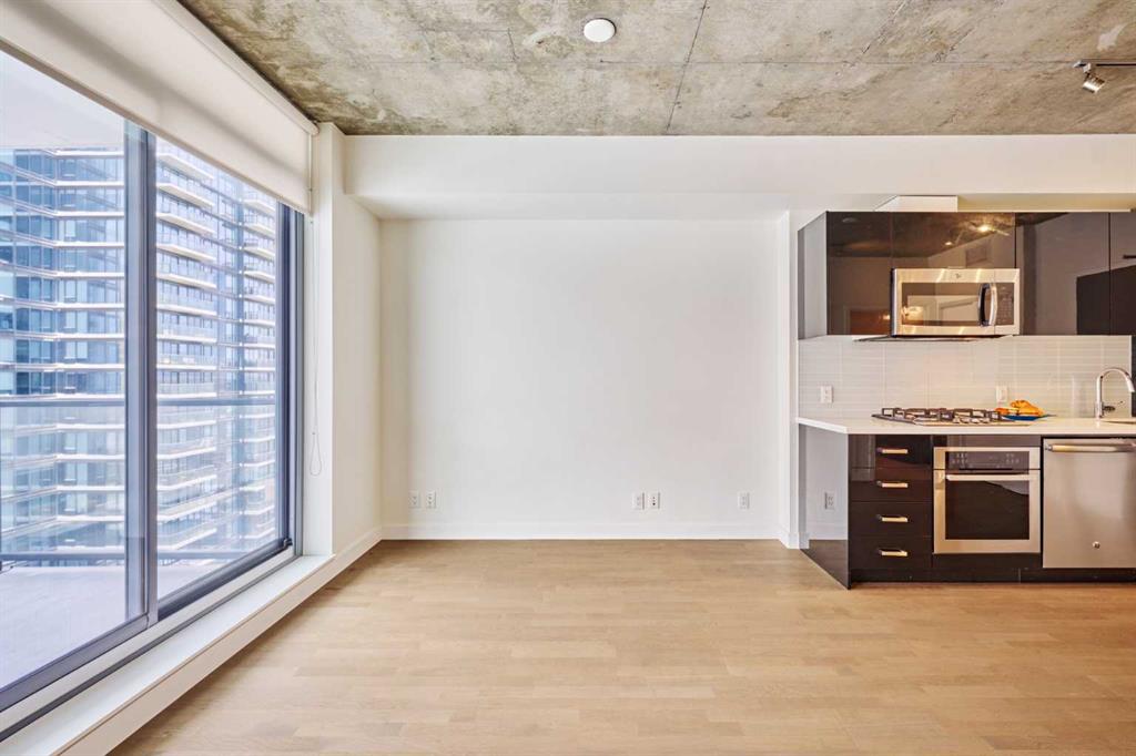 Welcome to 6th and Tenth, a modern high-rise ideally located in Calgary’s sought-after Beltline district. Combining contemporary architecture with an unbeatable central location, this property presents an exceptional opportunity for both homeowners and investors. Situated on the 12th floor, this thoughtfully designed one-bedroom unit offers an efficient layout that maximizes every square foot. Floor-to-ceiling windows fill the space with natural light and showcase impressive city views, including a clear sightline to the iconic Calgary Tower. The 9-foot exposed concrete ceilings add a stylish urban touch to the interior. Step out onto your private balcony, complete with a gas BBQ hookup—perfect for relaxing or entertaining while enjoying the vibrant city skyline. The sleek kitchen is both functional and elegant, featuring quartz countertops, stainless steel appliances, and a gas cooktop. In-suite laundry adds everyday convenience, making this home ideal for professionals, investors, or anyone seeking a low-maintenance downtown lifestyle. Residents enjoy access to outstanding amenities, including a Sky Garden Lounge with an outdoor pool, a fully equipped fitness centre, a landscaped terrace, secure bike storage, and 24-hour concierge and security services. Located just steps from the CORE Shopping Centre and surrounded by popular restaurants and cafés, this home also offers easy access to Prince’s Island Park and the Bow River pathway system—perfect for walking, running, or cycling. Public transit is conveniently nearby, with bus stops and LRT stations just minutes away, making commuting effortless. This is a rare opportunity to own in one of Calgary’s most vibrant and desirable downtown communities.