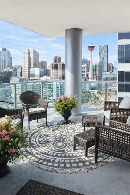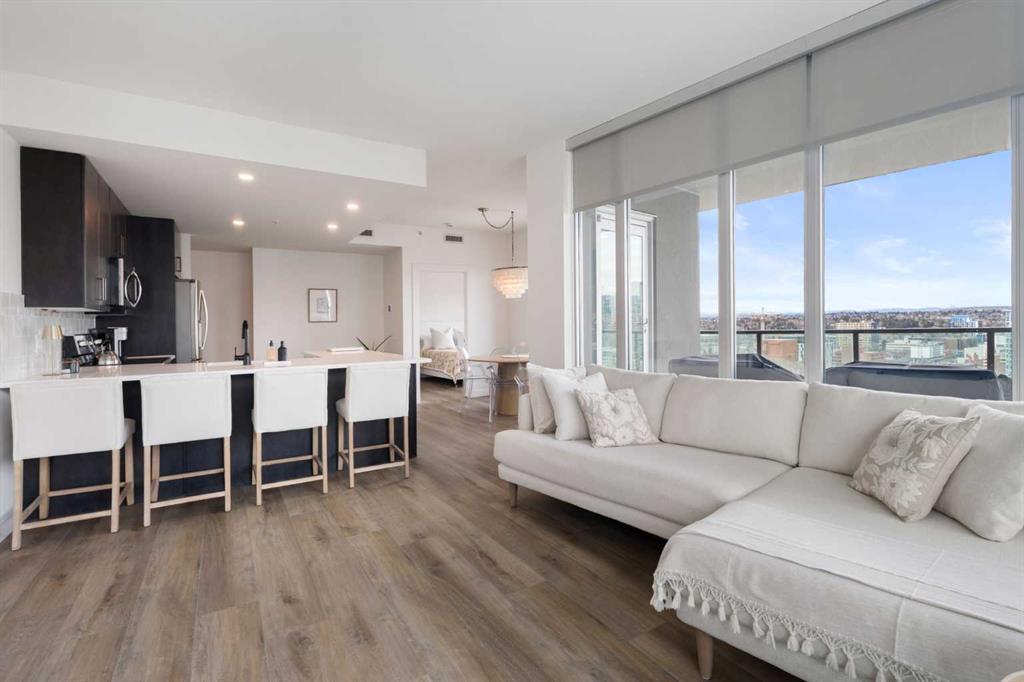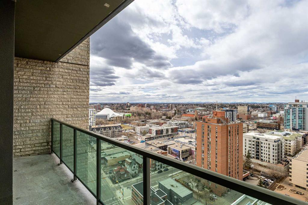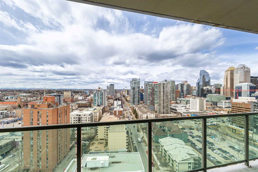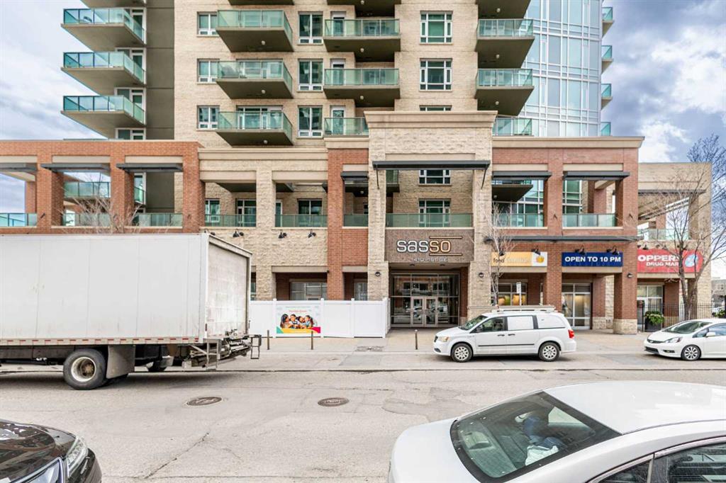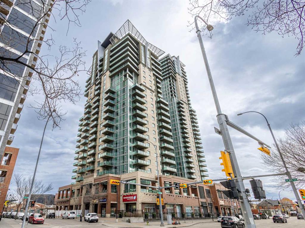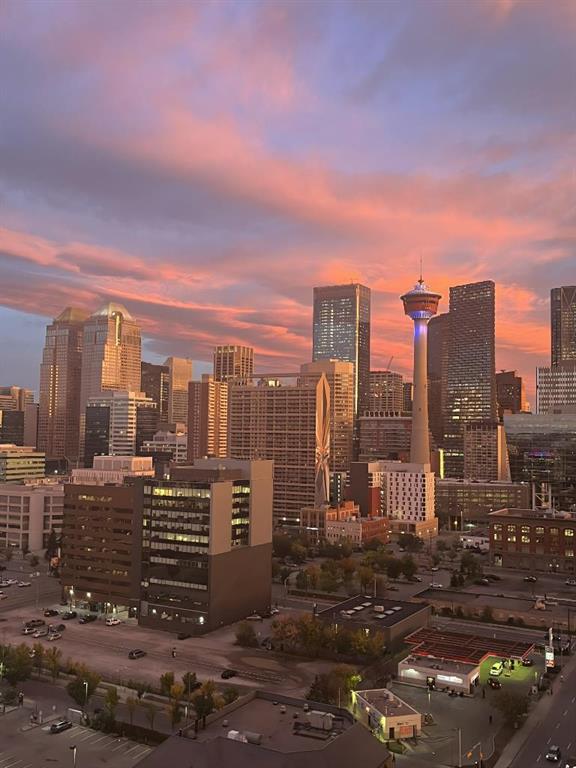 Welcome to this stunning 18th-floor sky suite offering breathtaking panoramic views of the city skyline and Rocky Mountains. Located in Sasso, a 18+ concrete building in the heart of Calgary’s vibrant Beltline, this home combines lifestyle, location, and flexibility. Recently updated throughout, this unit features new luxury vinyl plank flooring, fresh paint, new bathroom tile, and quartz countertops in both the kitchen and bathrooms, giving the home a clean, modern feel. The open-concept layout is designed for both everyday living and entertaining, with floor-to-ceiling windows that flood the space with natural light and showcase the incredible views. The modern kitchen is both stylish and functional, complete with quartz countertops, sleek tile backsplash, stainless steel appliances, double sink, and a breakfast bar. This unit offers two generously sized bedrooms, each with ample closet space, along with two full bathrooms. The primary ensuite features a relaxing jetted tub, perfect for unwinding at the end of the day. A dedicated desk area near the entrance provides the ideal setup for working from home. Step outside to your large private balcony with a gas hookup, ideal for summer BBQs while enjoying the city and mountain backdrop. Additional features include in-suite laundry with washer and dryer, a titled underground parking stall, and a storage locker. Residents of Sasso enjoy a full range of amenities including a fitness centre, sauna, hot tub, games room, lounge, private theatre, outdoor patio, visitor parking, and part-time concierge and security. Unbeatable location just steps to the Scotiabank Saddledome, Stampede Park, and Victoria Park/Stampede Station, plus all the dining, shopping, and nightlife along 17 Avenue SW.